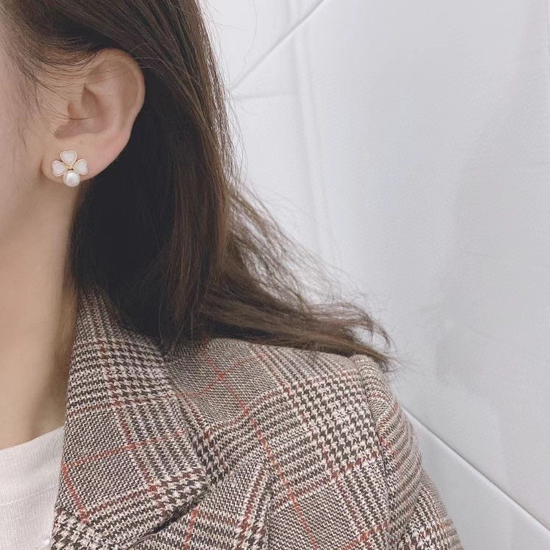 Серьги-гвоздики Love Clover с жемчугом (белые бусины); Серьги-гвоздики Love Clover с жемчугом (светло-фиолетовые бусины); Серьги-гвоздики Love Clover с жемчугом (оранжево-розовые)
