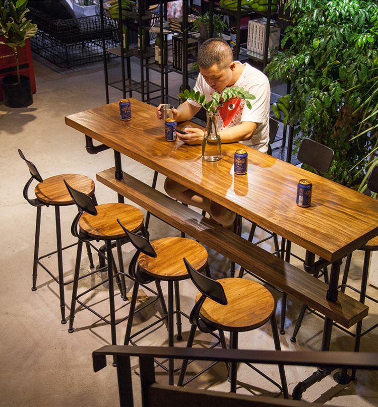 Американский промышленный стиль ретро водопроводная труба из массива дерева бар стол, стул, кафе, чай с молоком, ресторан бар, железный стол
