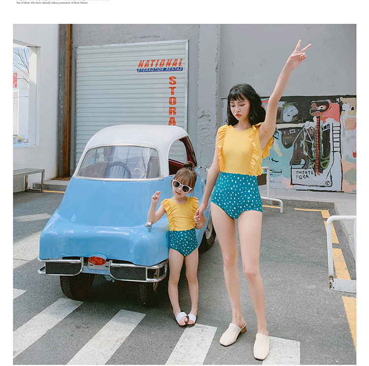 S родитель-ребенок купальник с треугольным рюшом