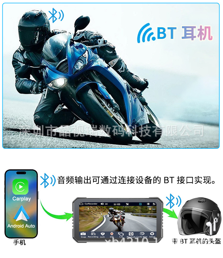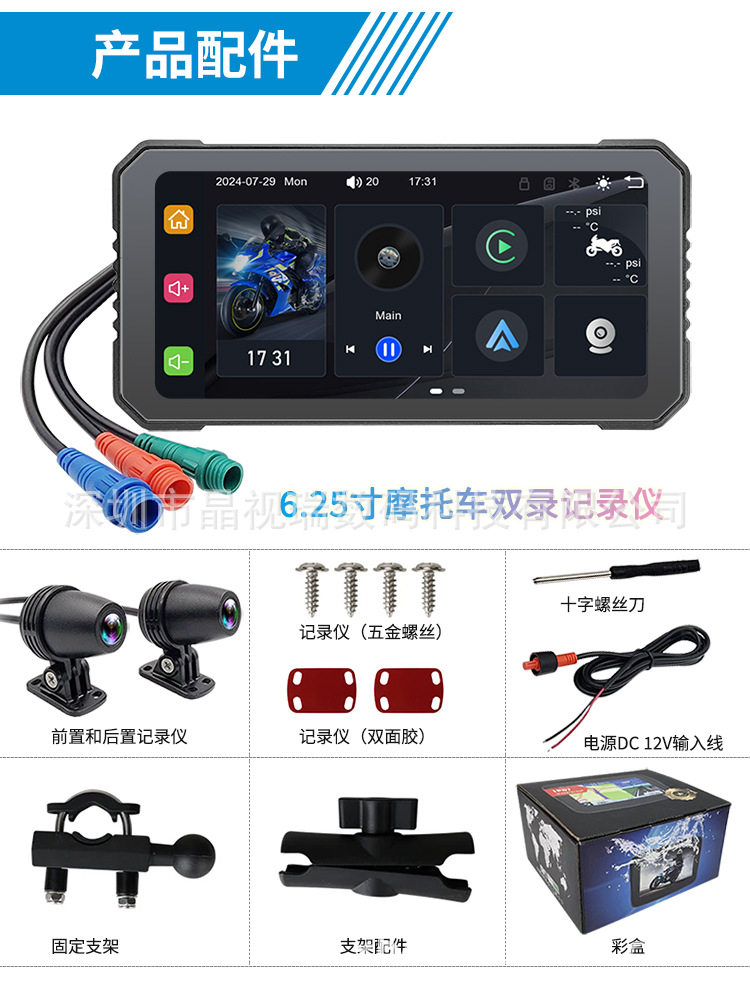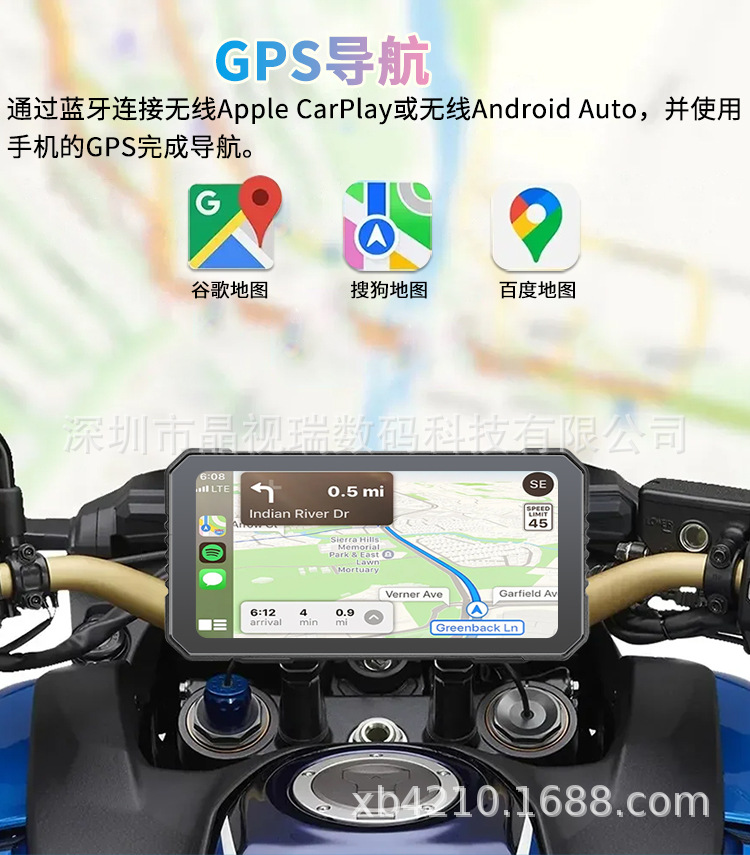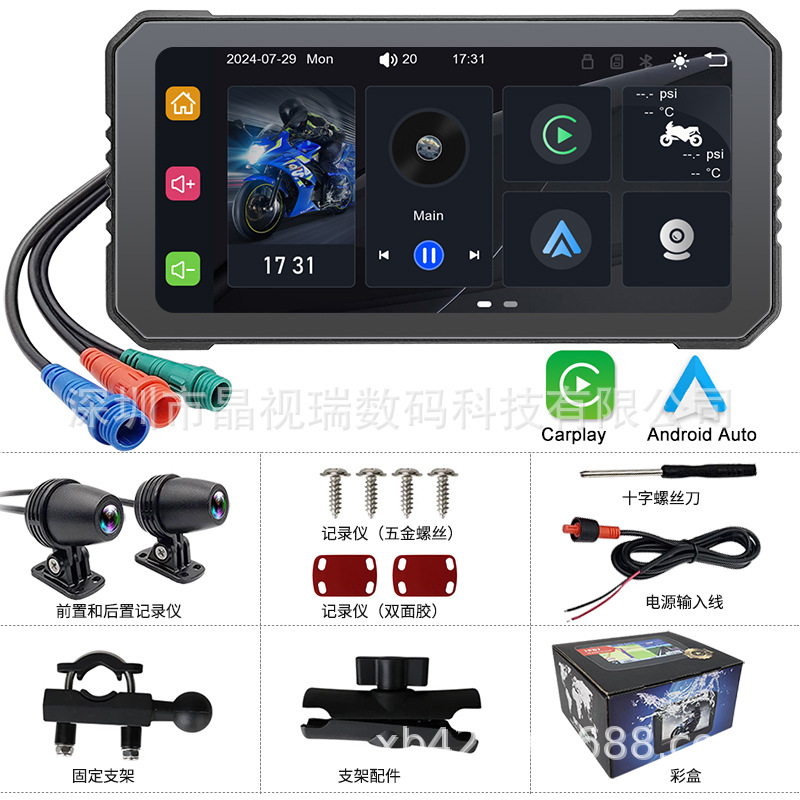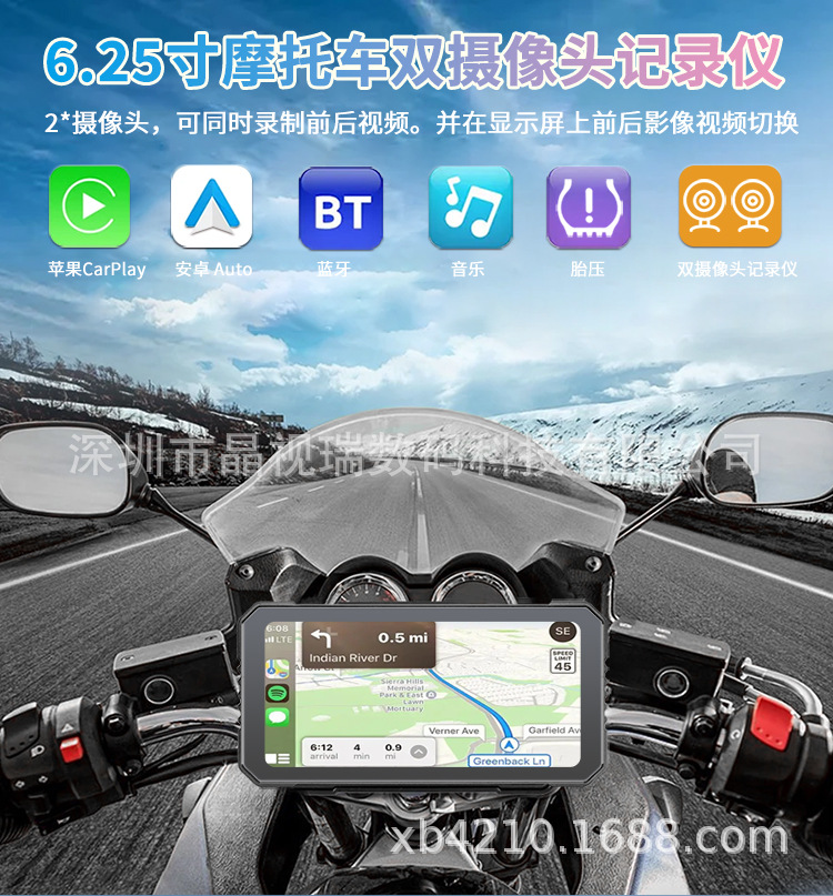 Беспроводной навигатор Carplay 6.25inch с водонепроницаемым корпусом и функцией записи, специально разработанный для езды на мотоцикле.