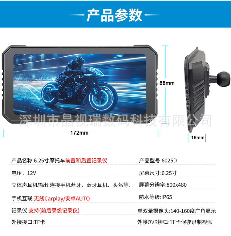 6.25inch Передний и задний рекордер мотоцикла 6025D; 6.25inch Мотоцикл без рекордера 6025D