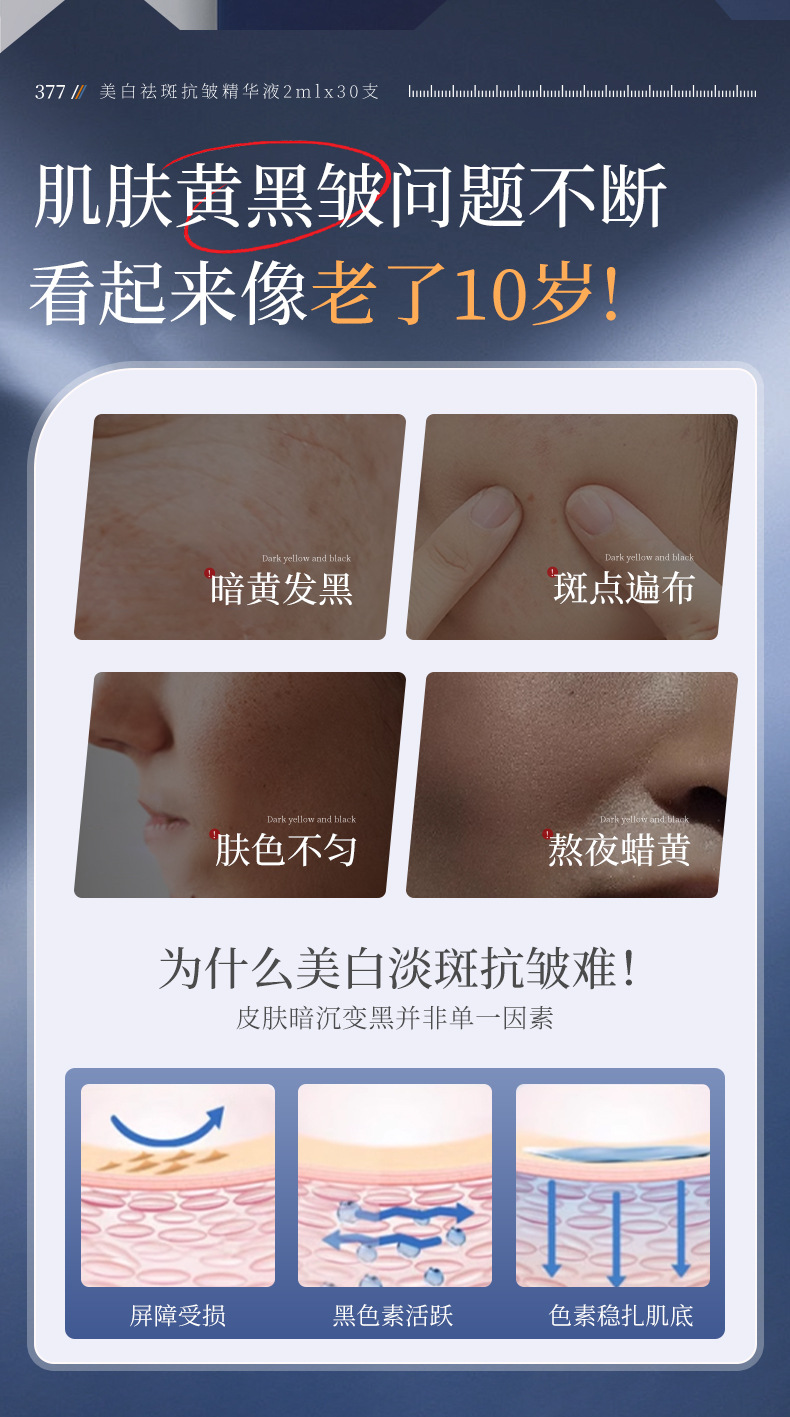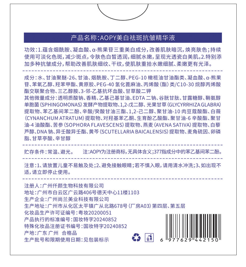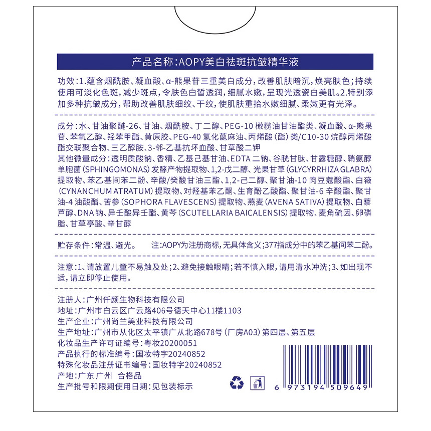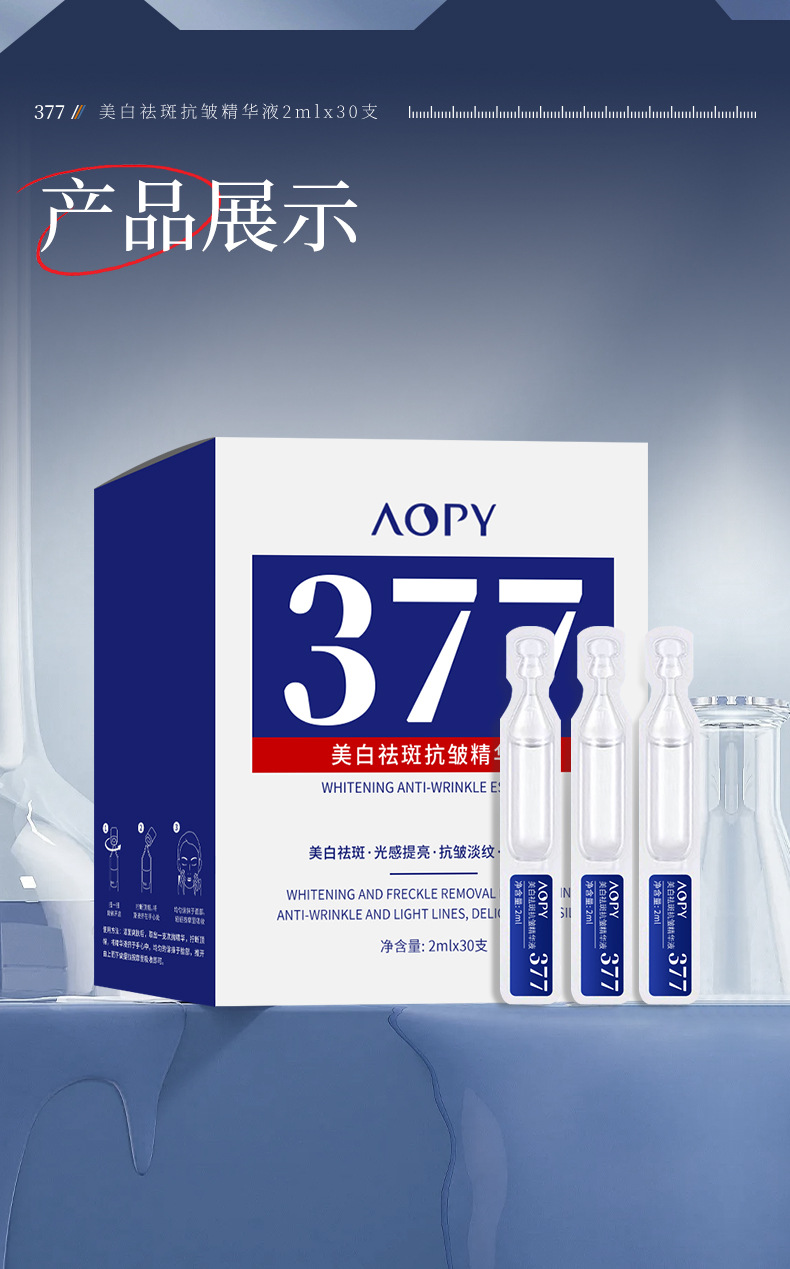 AOPY отбеливающий и веснушчатый эссенция против морщин, бросьте 30 гидратающих и увлажняющих эссенций против морщин 377 маленьких белых протоков