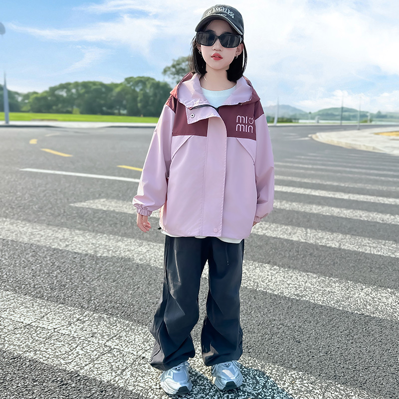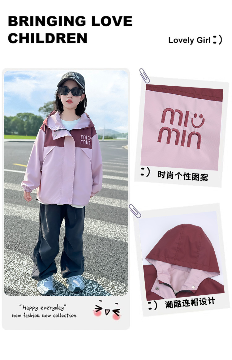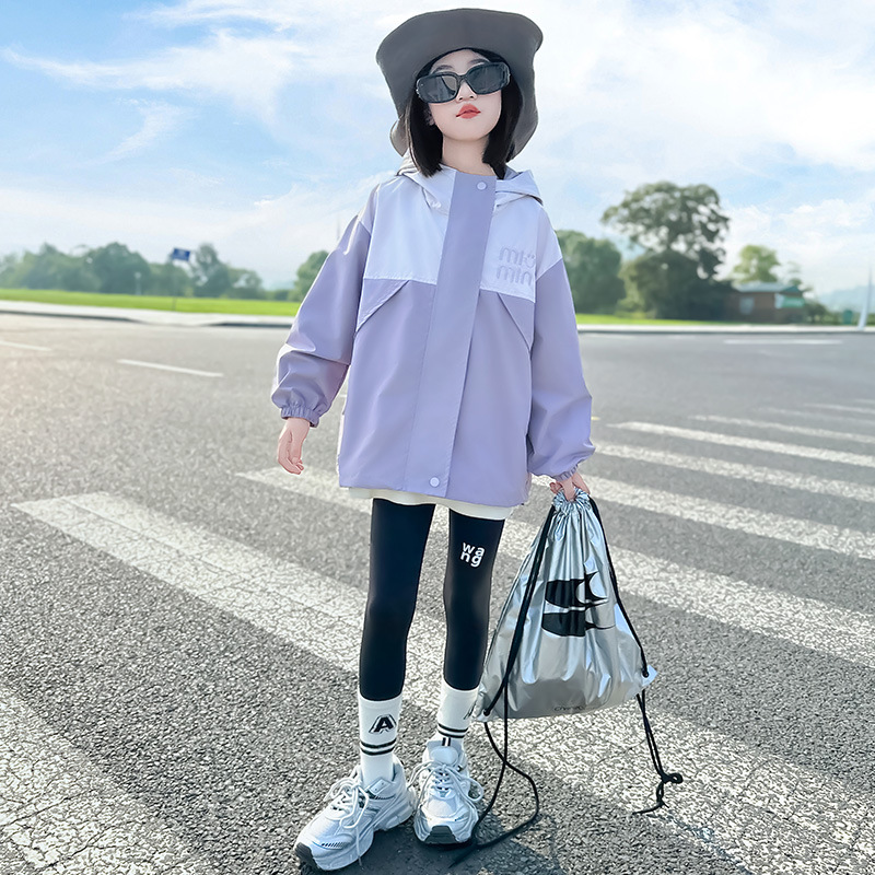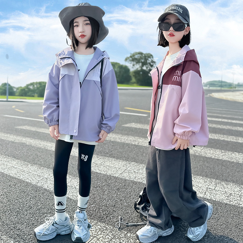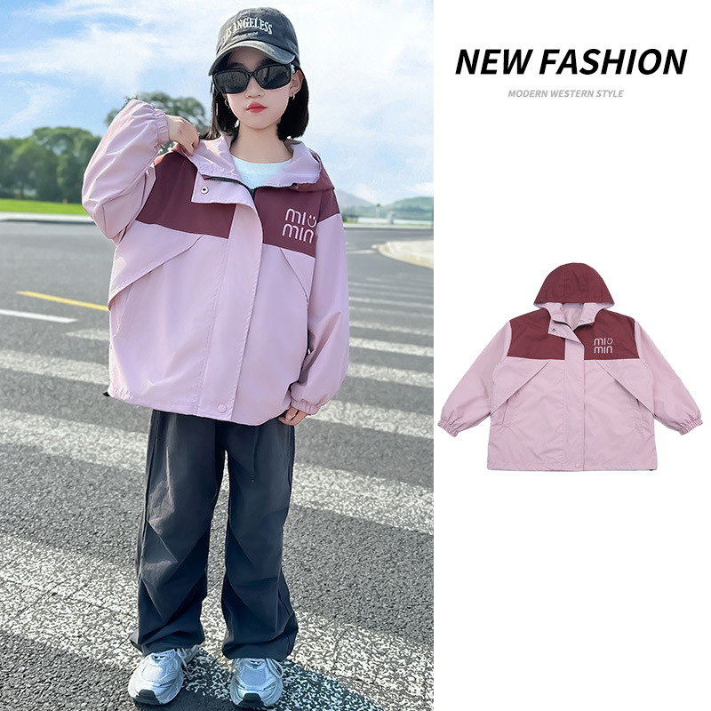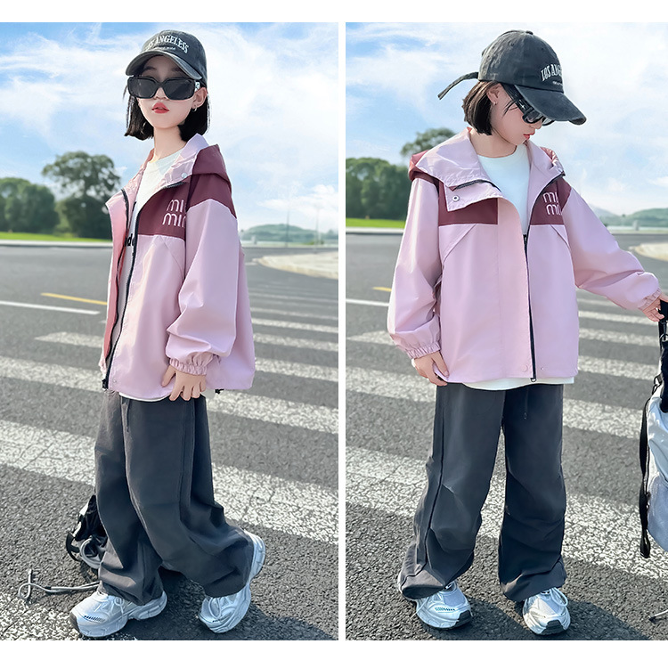 Подростковые куртки весна-осень 2025, новый корейский стиль, повседневная осенняя одежда для детей среднего и старшего возраста, ветровки с капюшоном для девочек