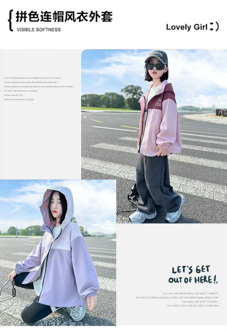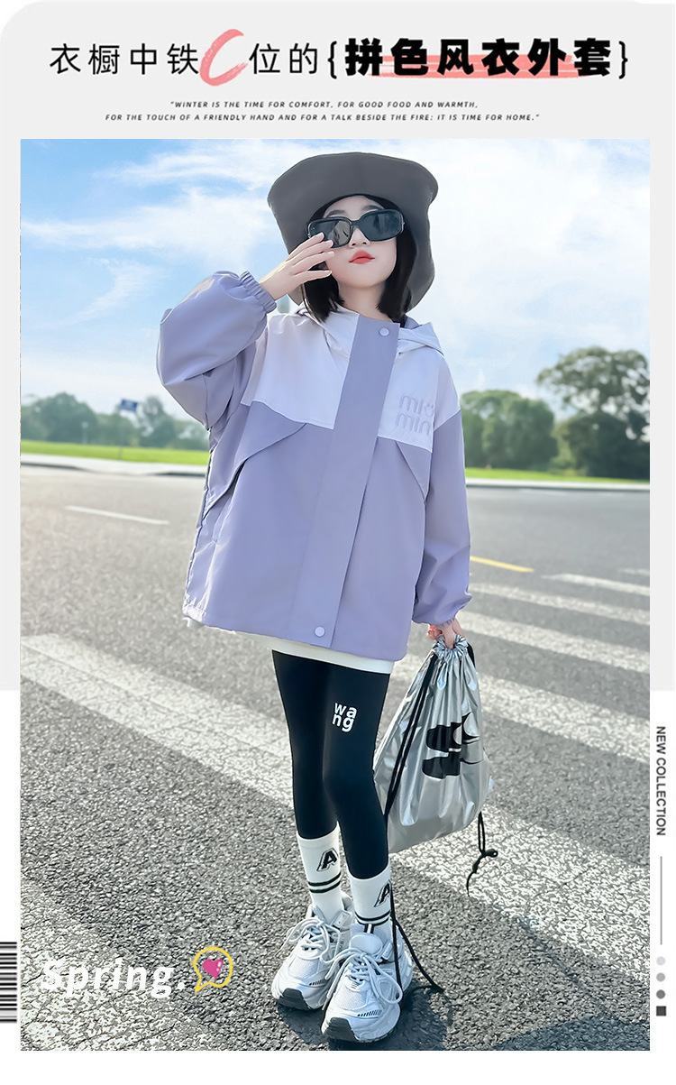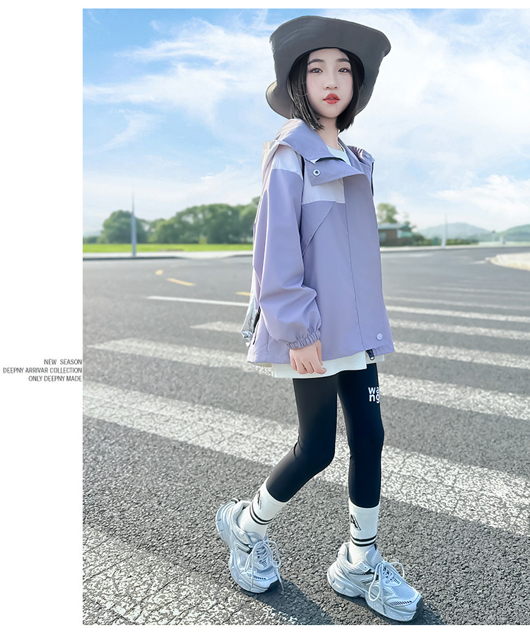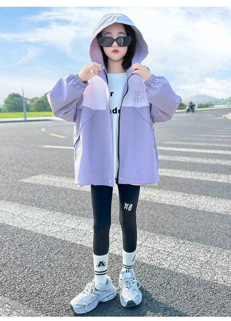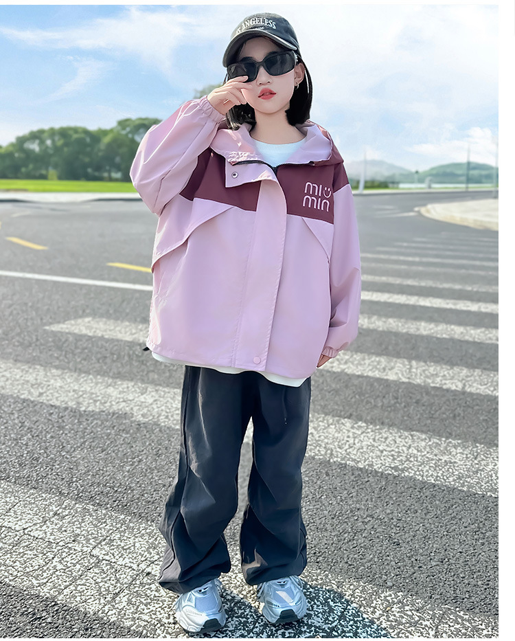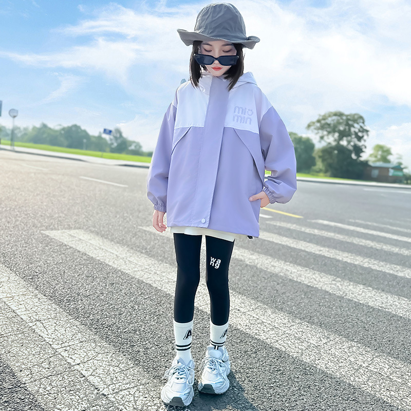 Подростковые куртки весна-осень 2025, новый корейский стиль, повседневная осенняя одежда для детей среднего и старшего возраста, ветровки с капюшоном для девочек