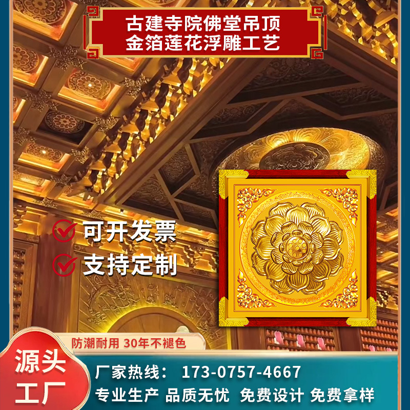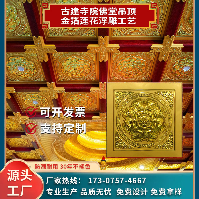 Алюминиевые потолочные панели в античном стиле для буддийских храмов и монастырей, потолочные панели с рельефным изображением лотоса для подземных храмовых комплексов, производитель традиционных строительных материалов.