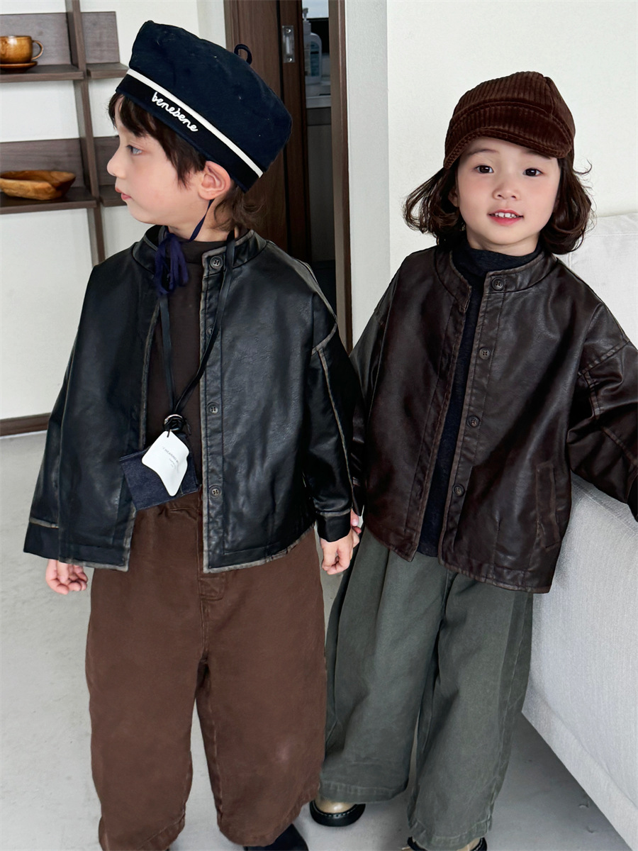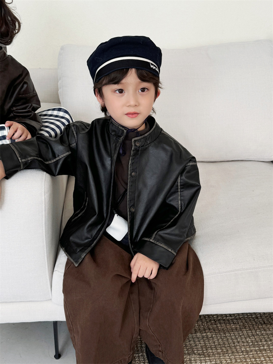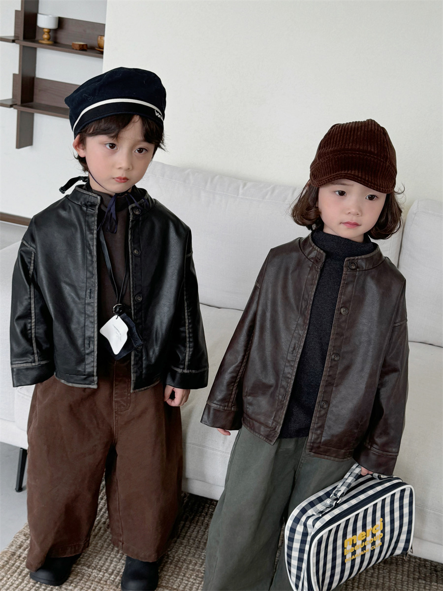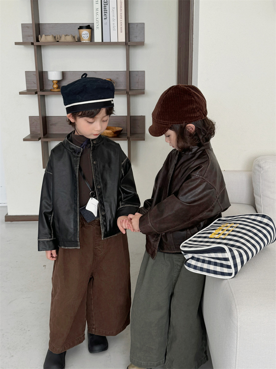 Детская одежда Jiaye 2025, новая осенняя кожаная куртка для детей, мужская и женская, детская лесная куртка, мотоциклетный костюм