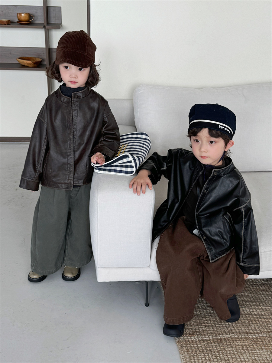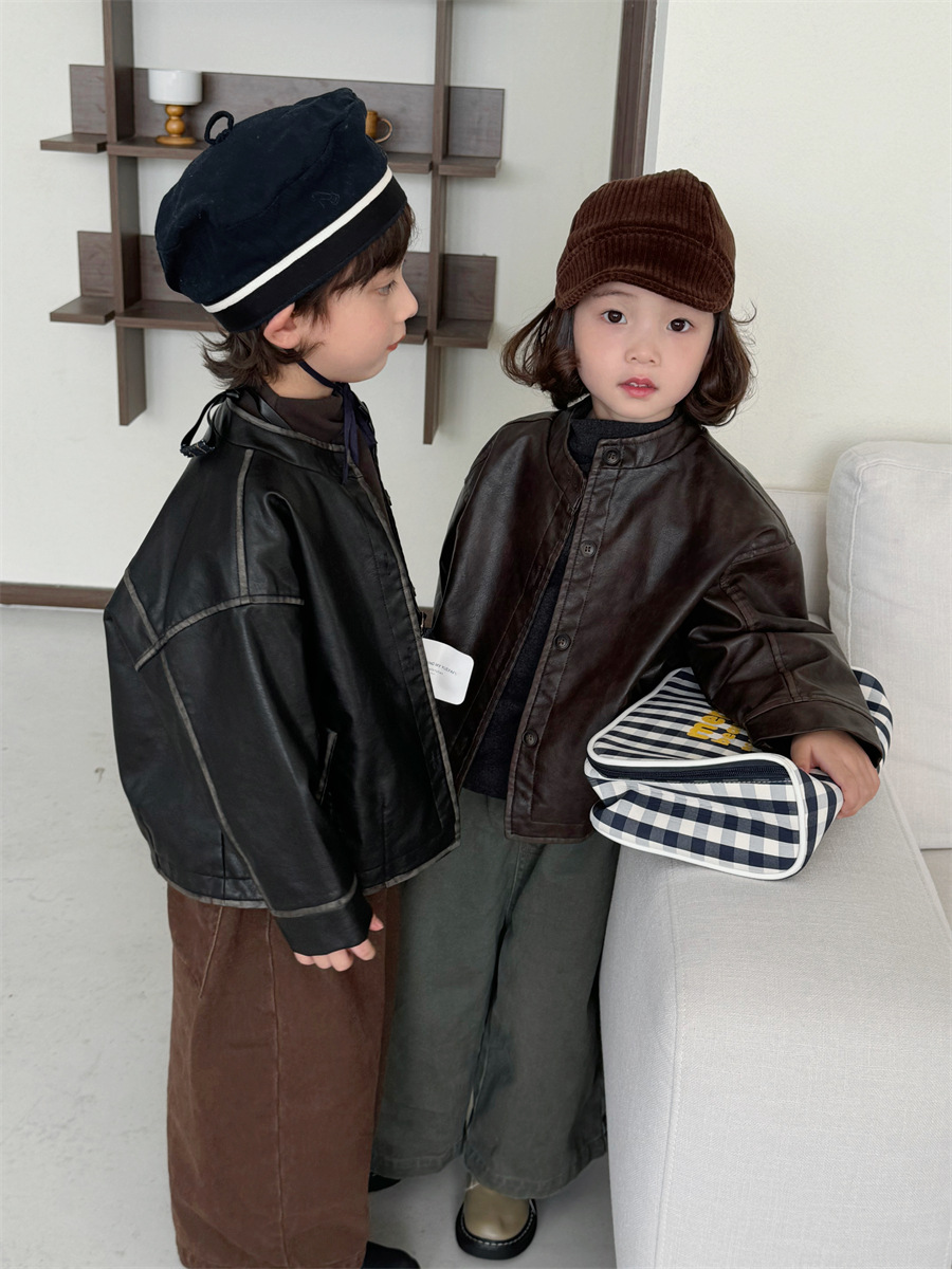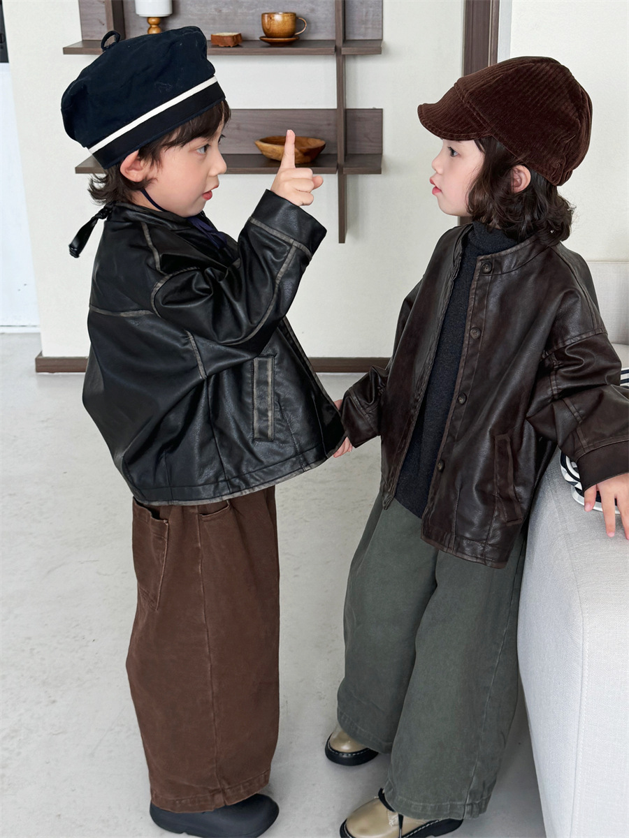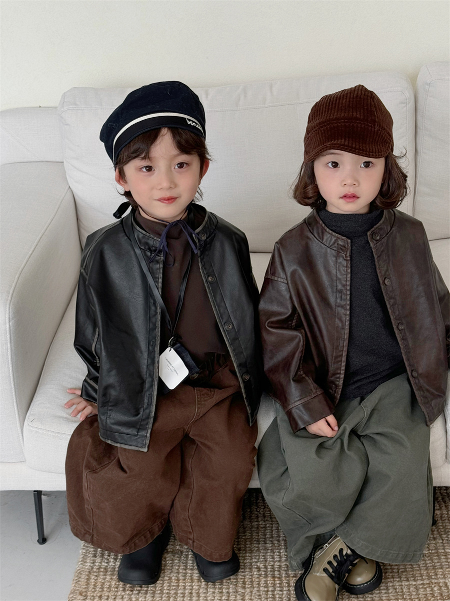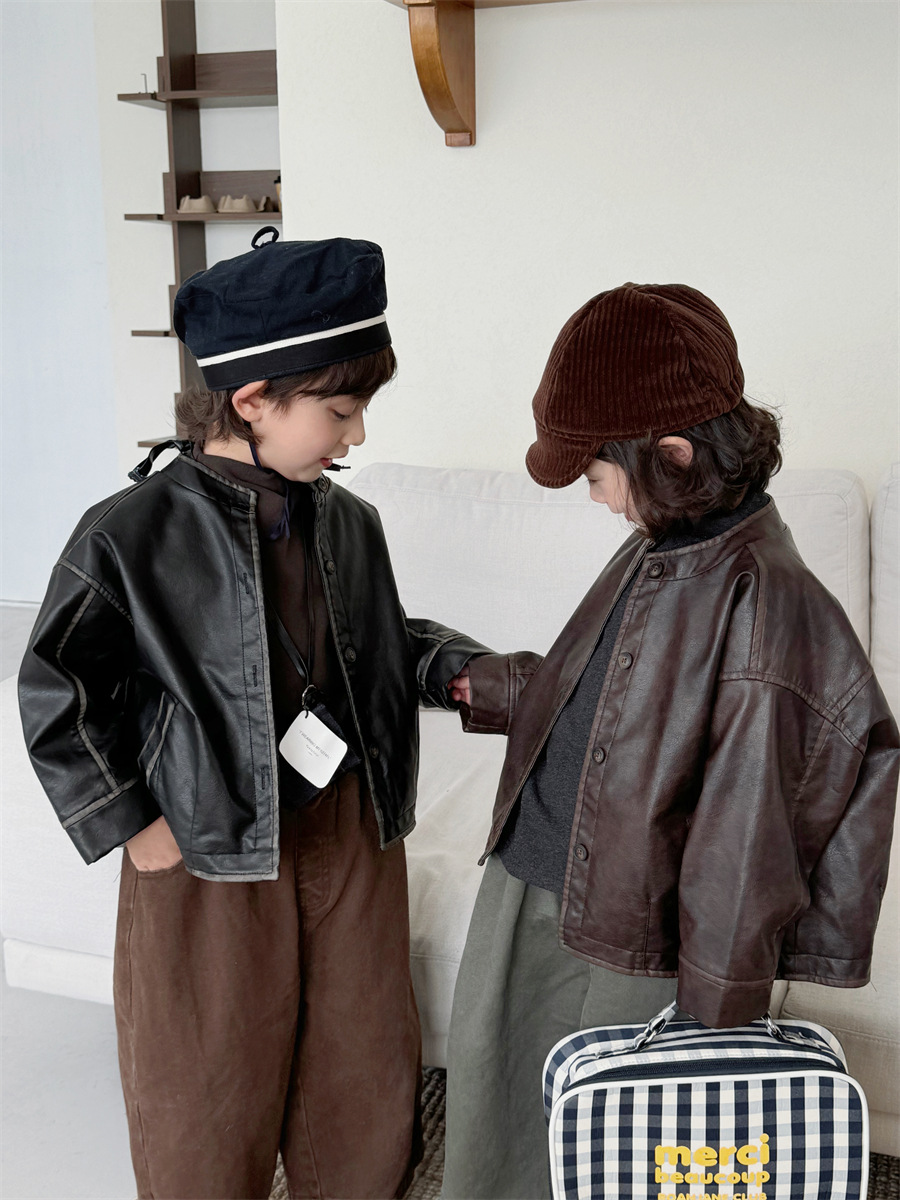 Детская одежда Jiaye 2025, новая осенняя кожаная куртка для детей, мужская и женская, детская лесная куртка, мотоциклетный костюм