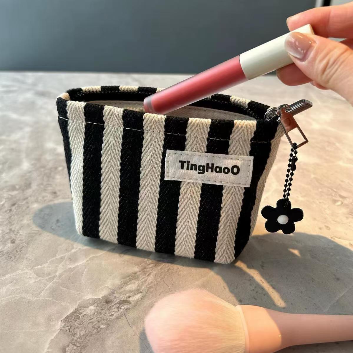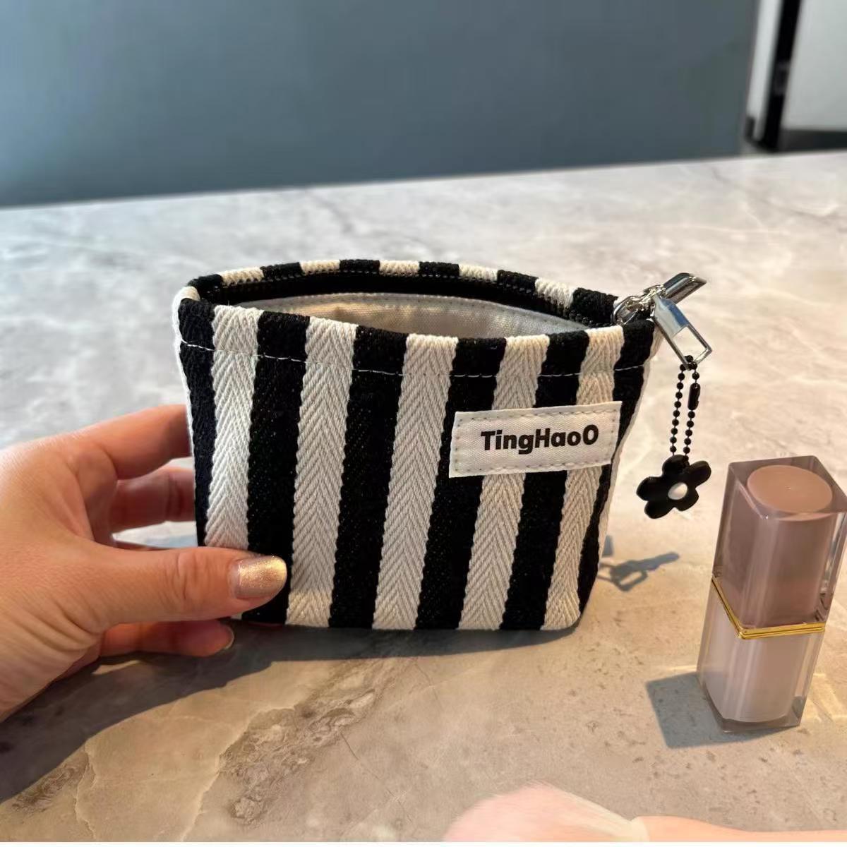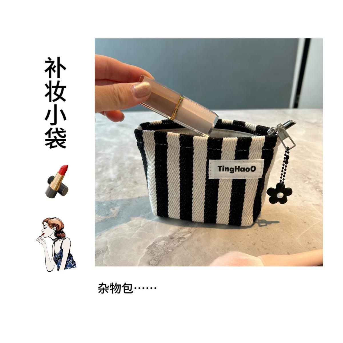Оригинальная нишевые тканевые косметички маленькая полосатая помада сумка для хранения портативная маленькая квадратная сумка простой внутренний желчный мешок
