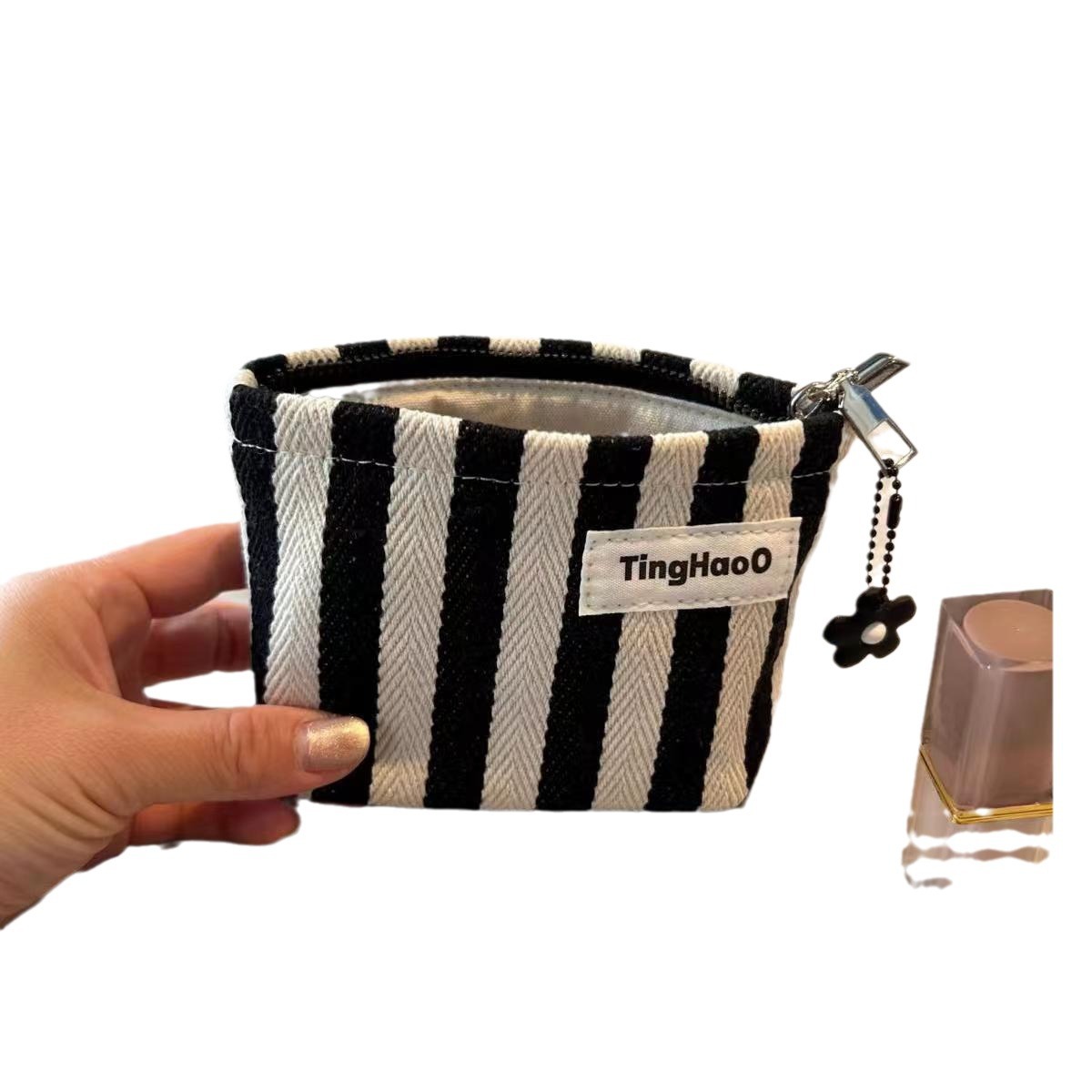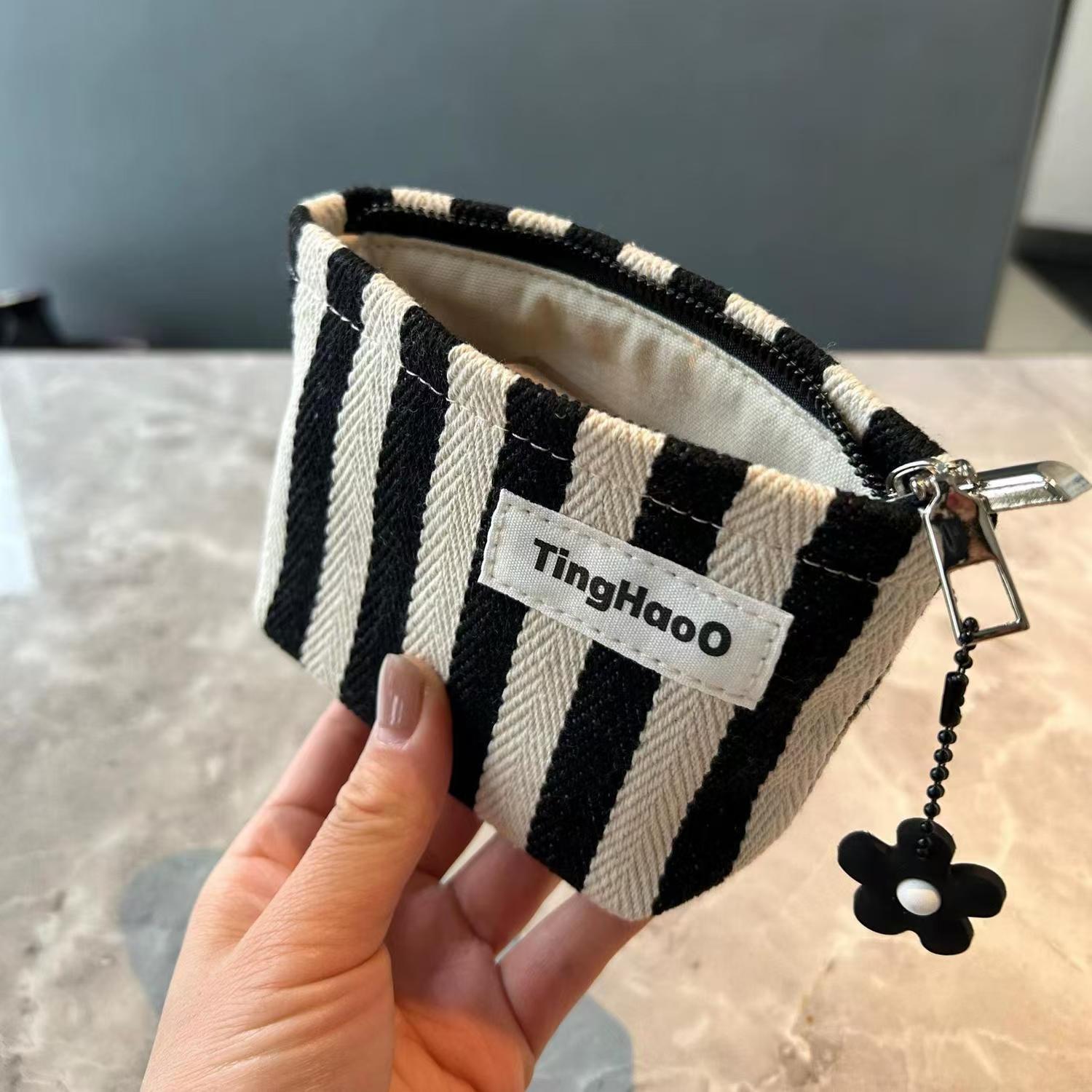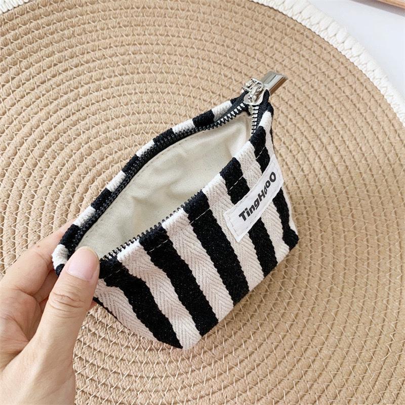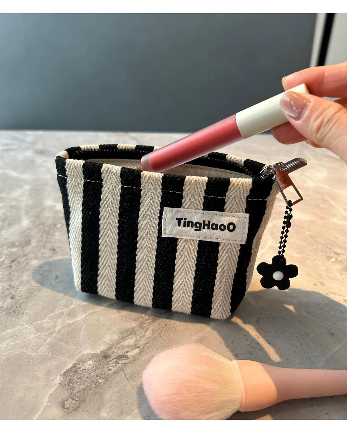 Оригинальная нишевые тканевые косметички маленькая полосатая помада сумка для хранения портативная маленькая квадратная сумка простой внутренний желчный мешок