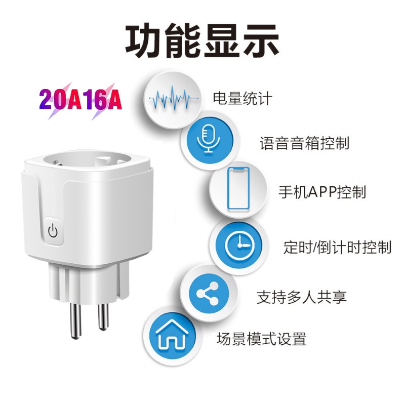Европейский стандарт - Умная розетка Tuya 16A с функцией мониторинга энергопотребления; Европейский стандарт - Умная розетка Tuya 20A с функцией мониторинга энергопотребления