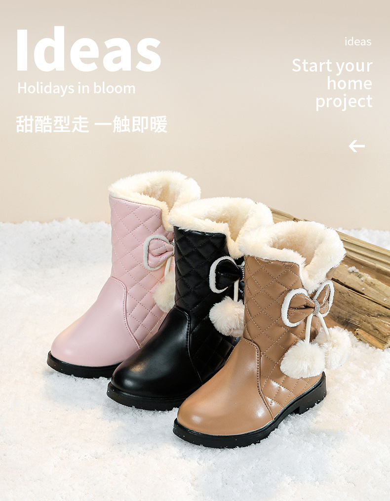 Сапоги для девочек, зима 2024, новые утолщенные и теплые детские зимние сапоги, детские сапоги принцессы для девочек среднего и большого размера, сапоги до середины икры