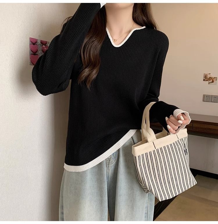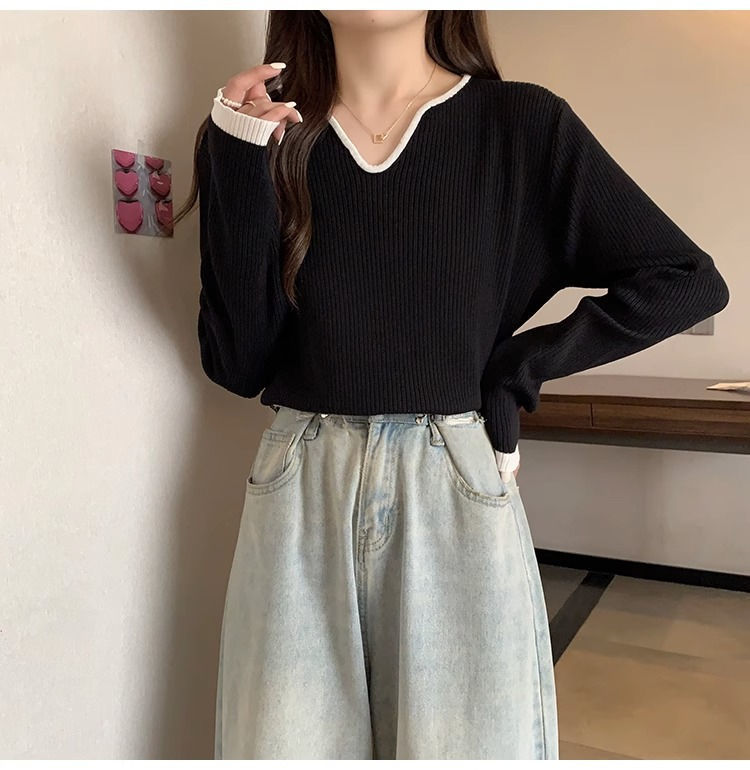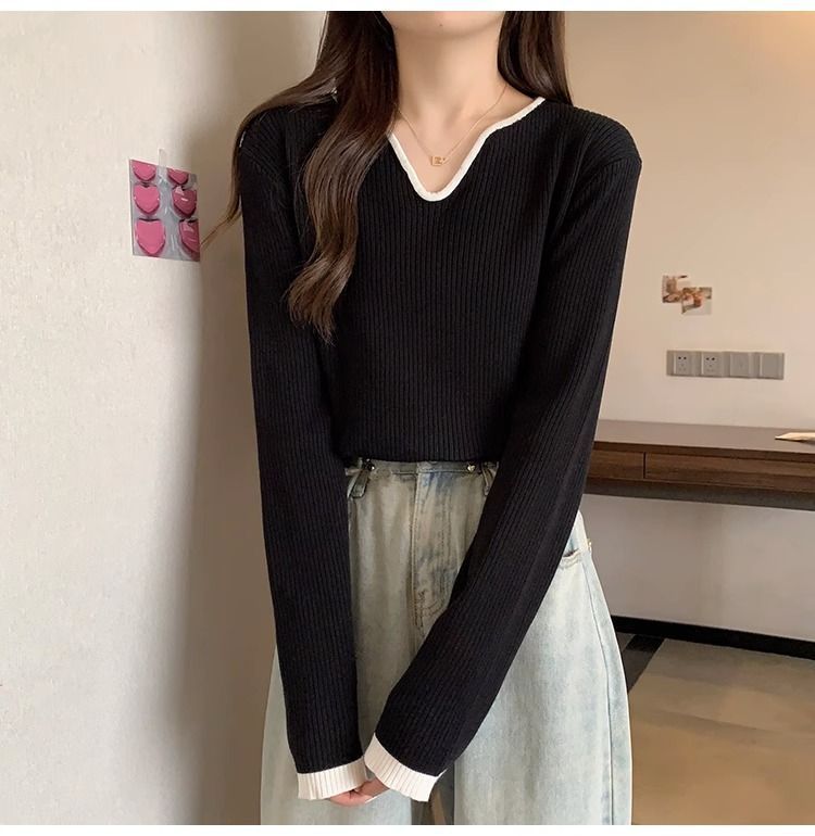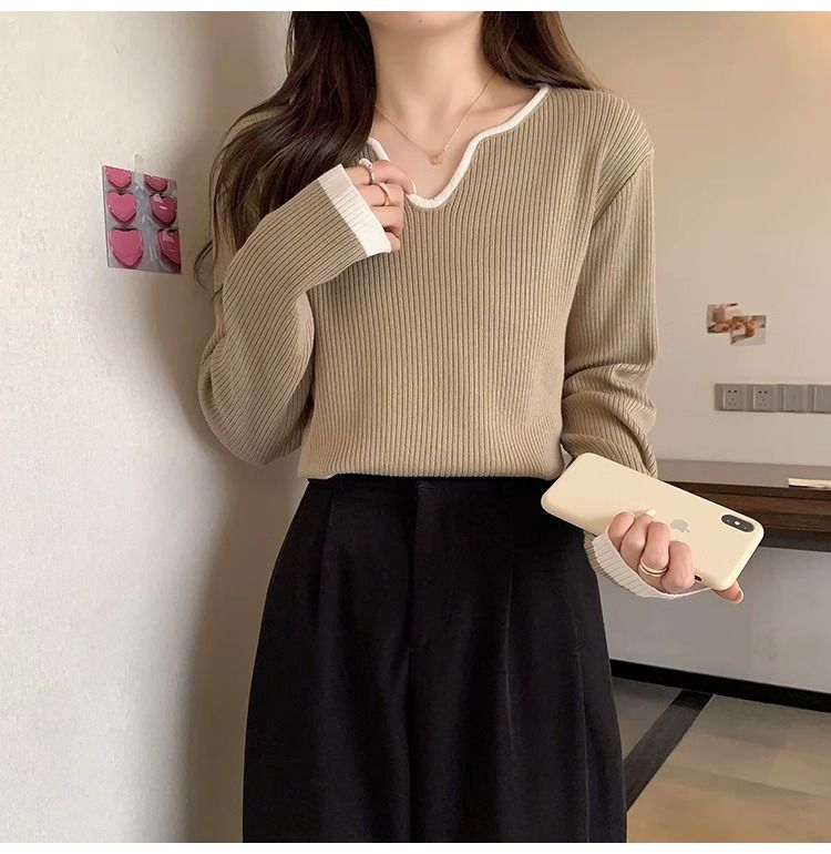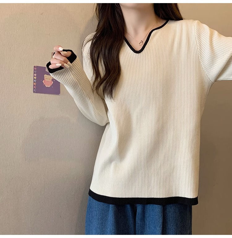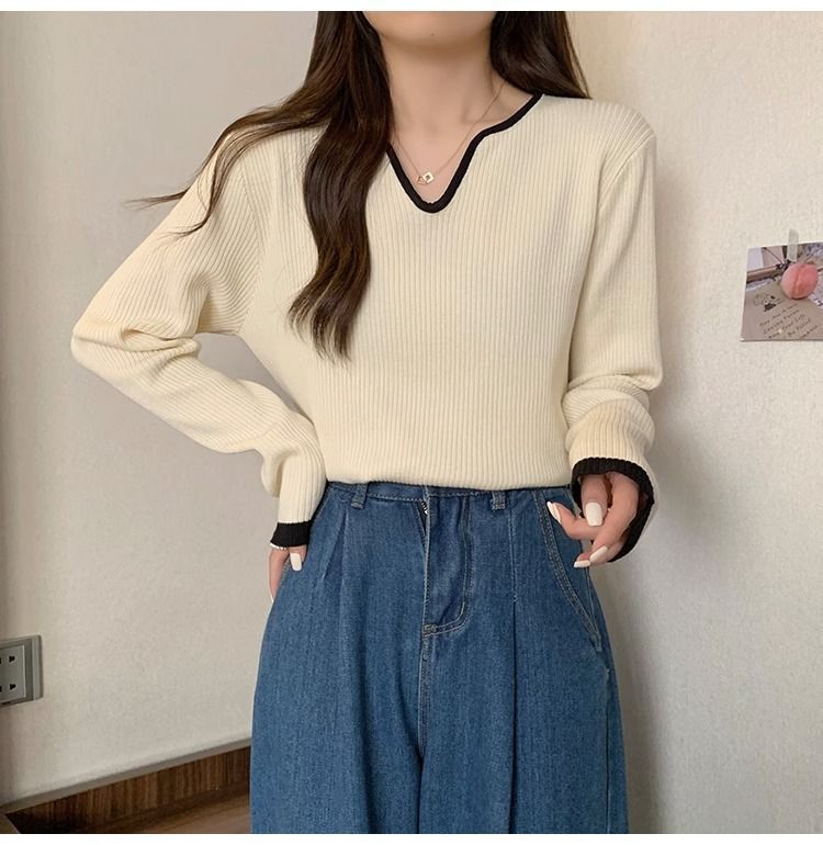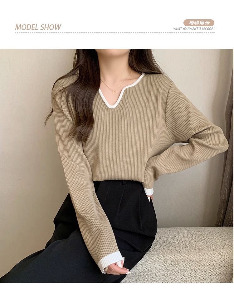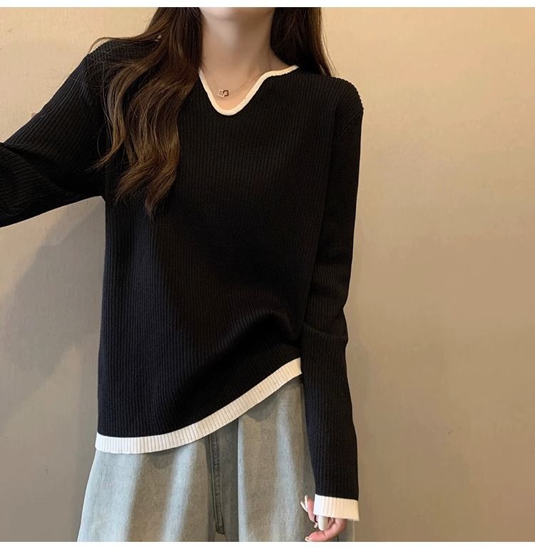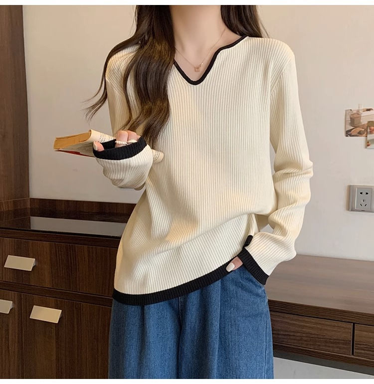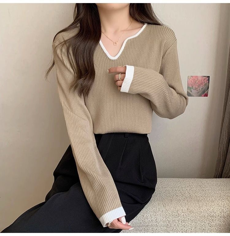 Женская футболка больших размеров с уникальным V-образным вырезом и длинными рукавами, новая коллекция весна-осень 2026, свободная, стройнящая, универсальная.