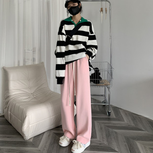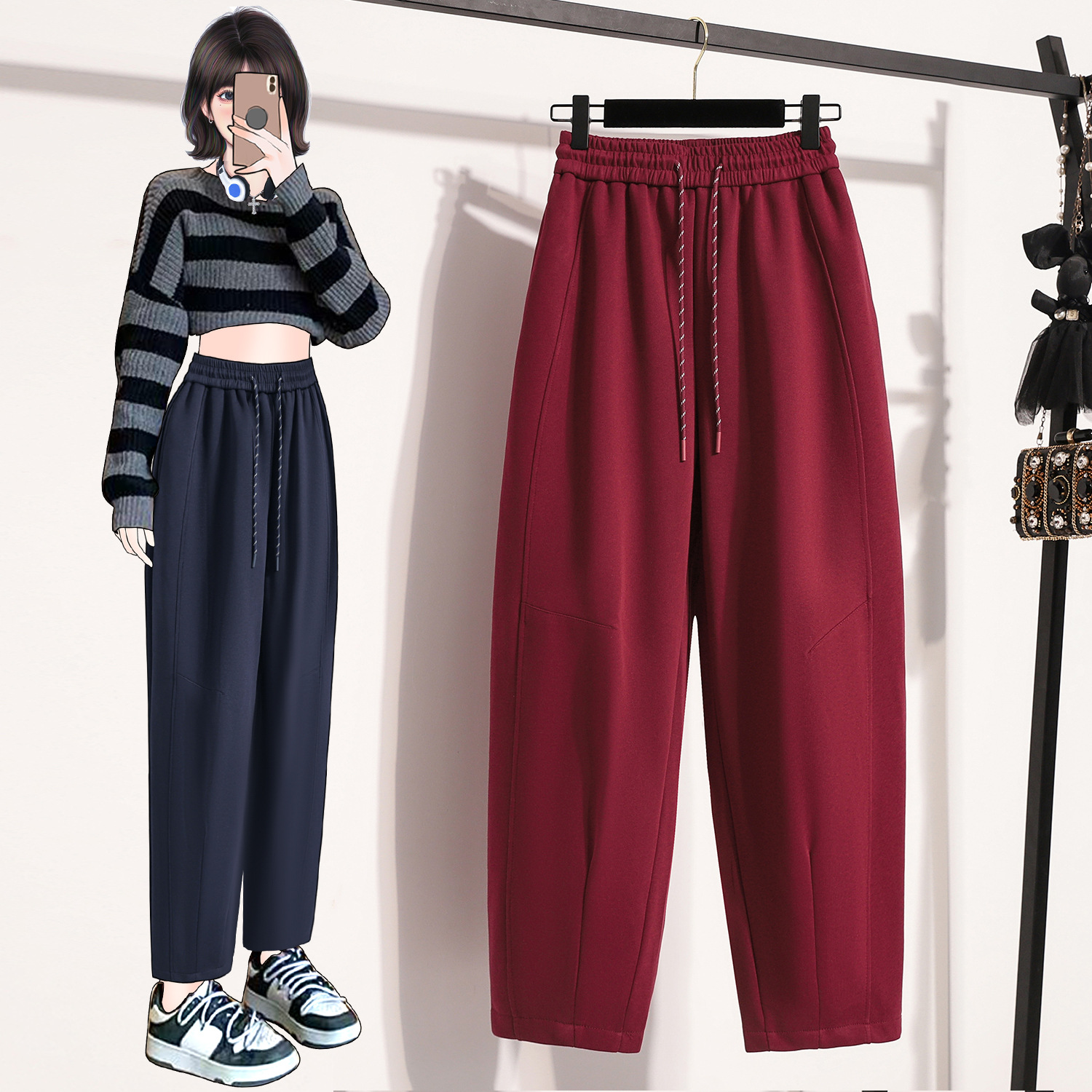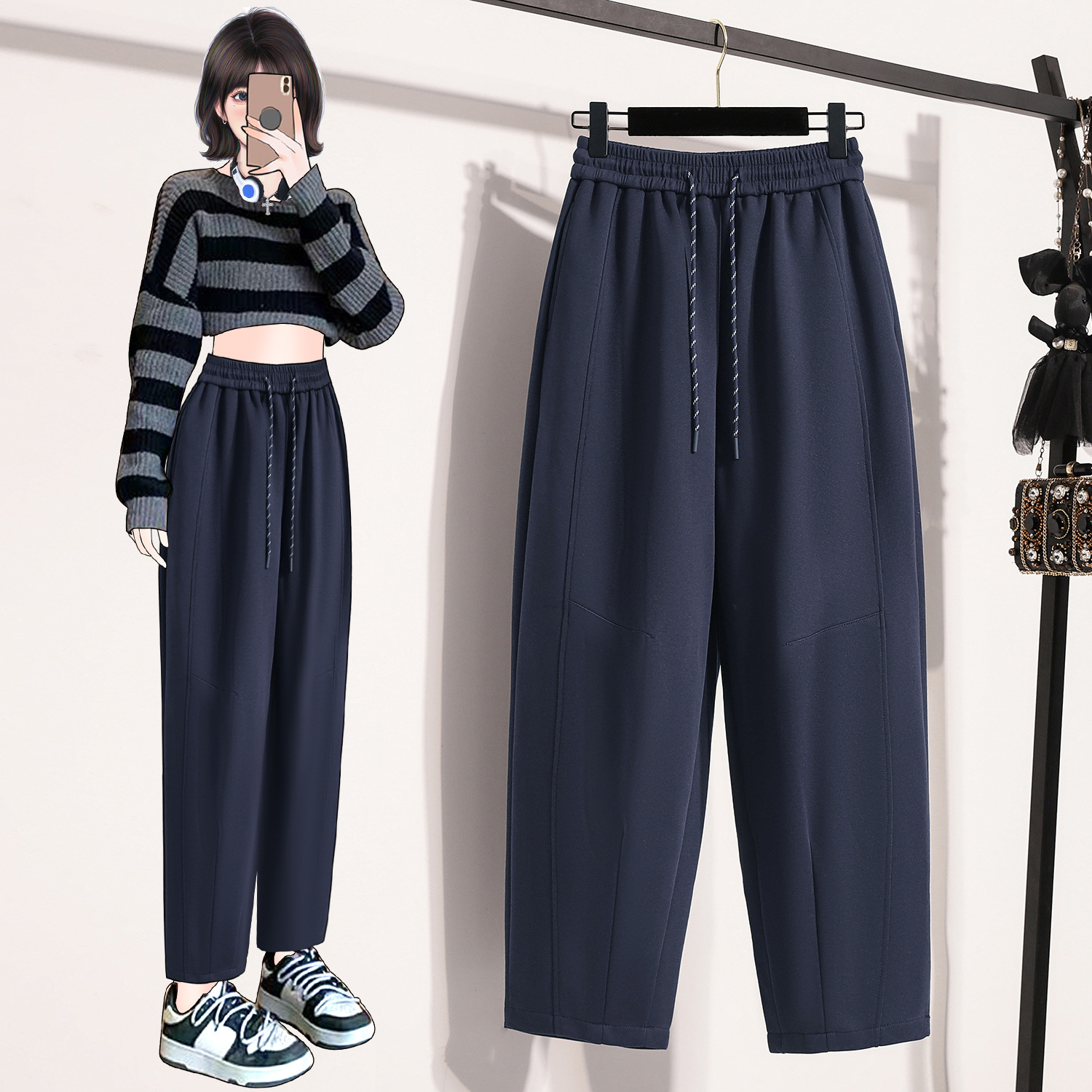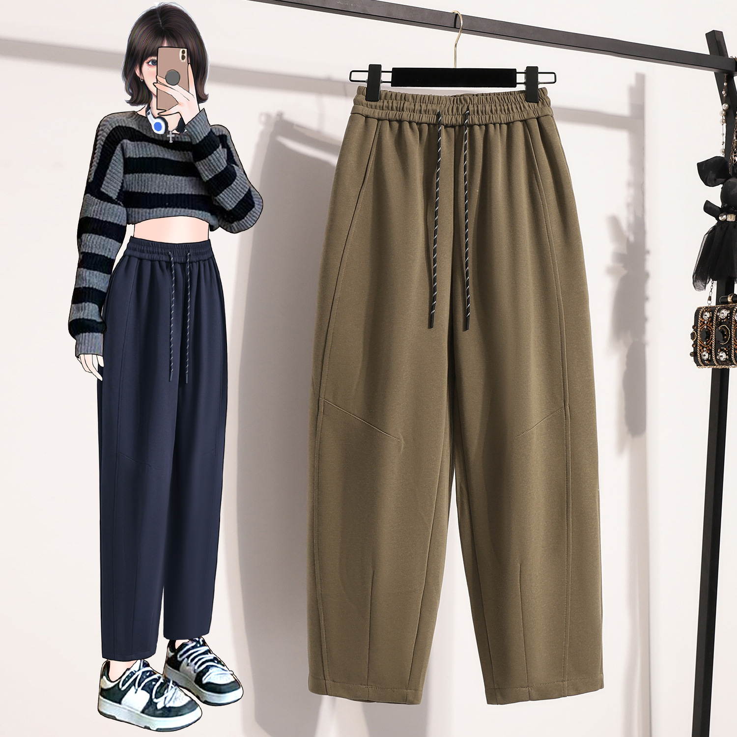 Широкие спортивные брюки в европейском стиле для женщин, новые весенне-осенние укороченные повседневные брюки-сабо, закрывающие бедра, свободные брюки для ленивых пап.