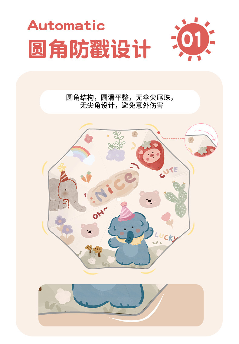 Безопасный закругленный антиотскок для детей, мальчиков и девочек, учащихся начальной школы, специальный солнечный и дождливый зонт, зонт двойного назначения, автоматическое складывание