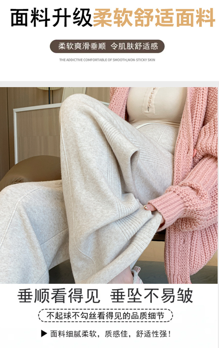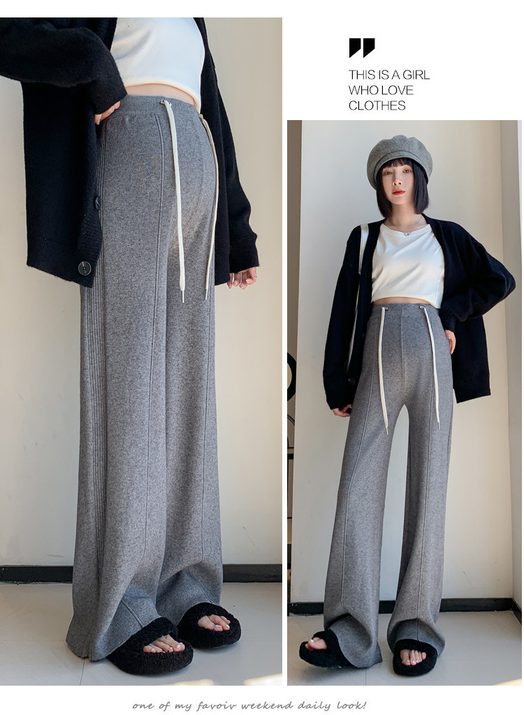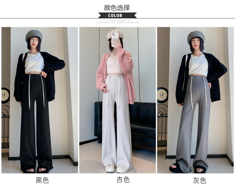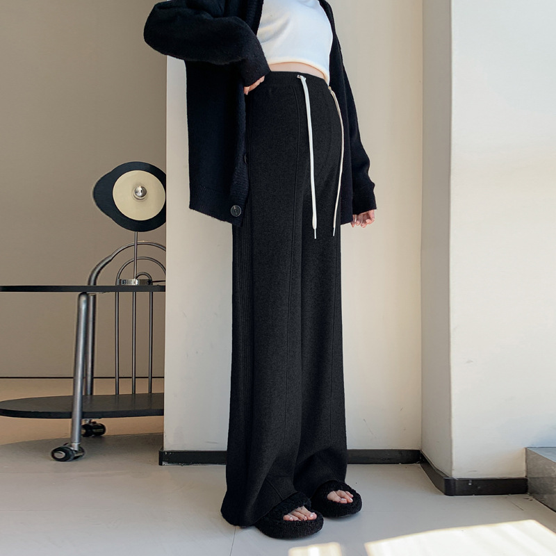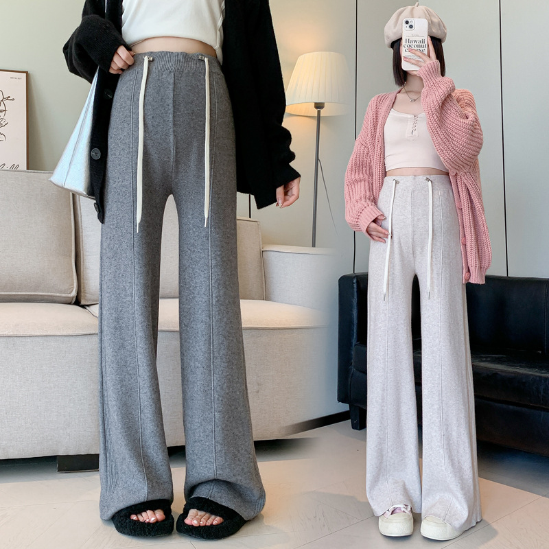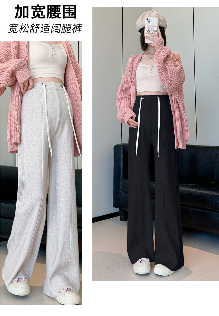 Беременные брюки могут носить прилив мама осенью и зимой новые трикотажные прямые широкие брюки повседневные тонкие штаны
