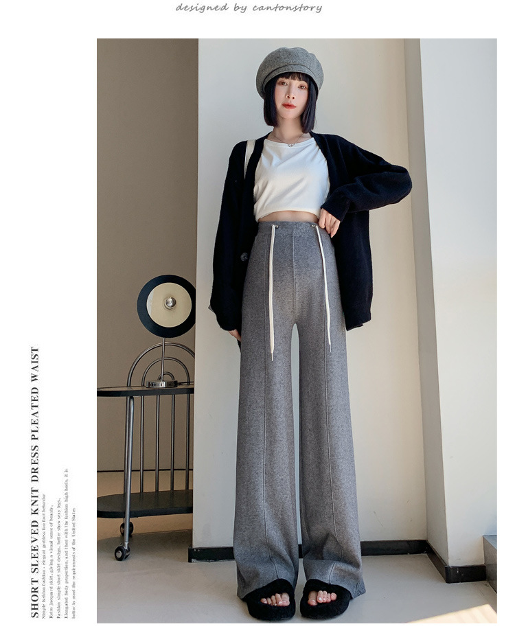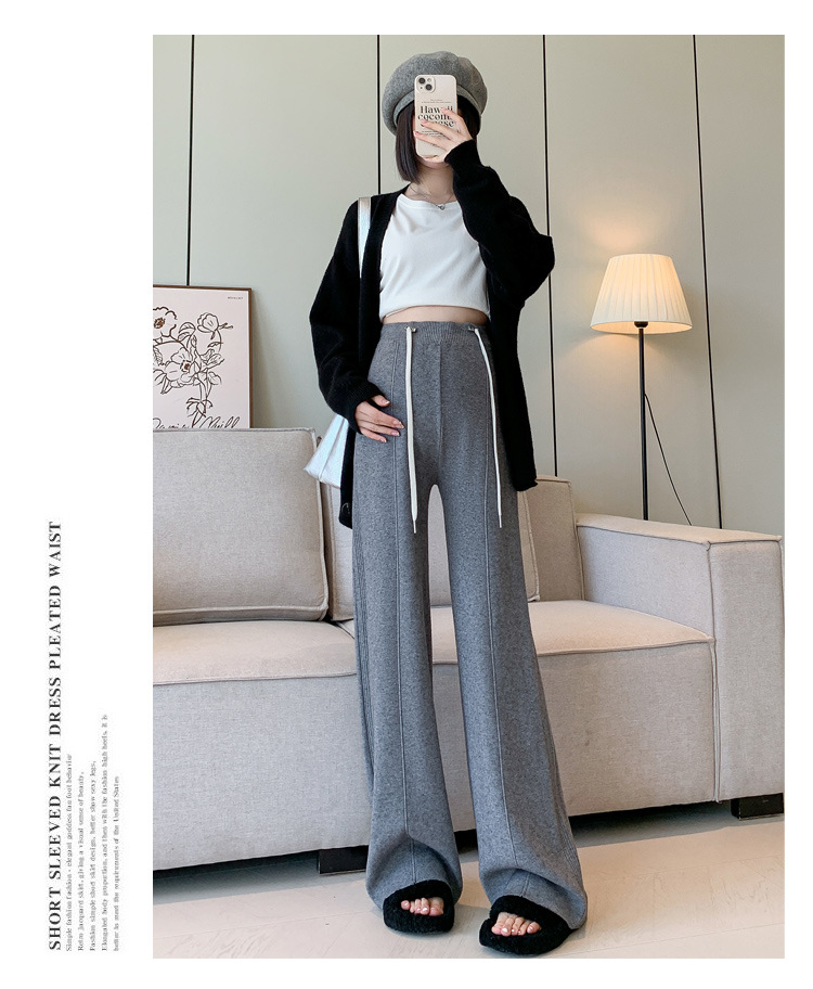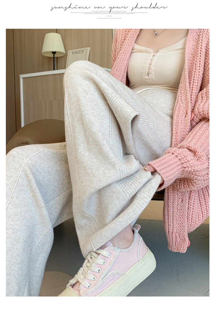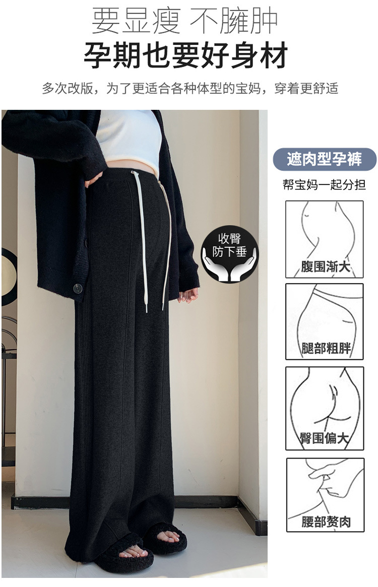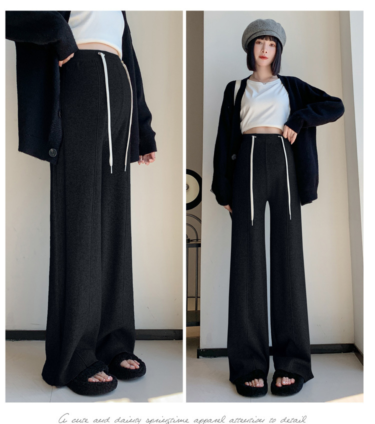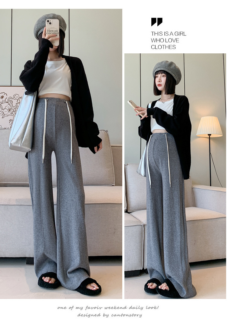 Беременные брюки могут носить прилив мама осенью и зимой новые трикотажные прямые широкие брюки повседневные тонкие штаны
