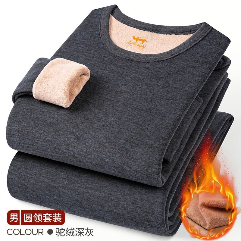 Верблюжий бархатный толстый набор термобелья для родителей Плюшевый бархатистый толстый, холодный средний и пожилой мужчина теплая одежда для женщин осень и зима