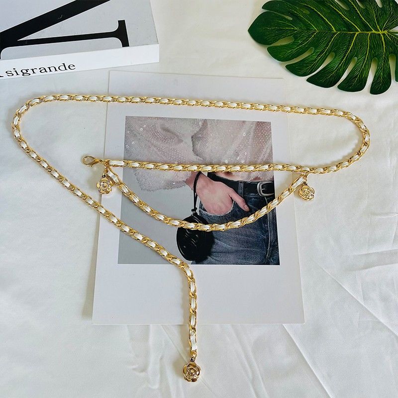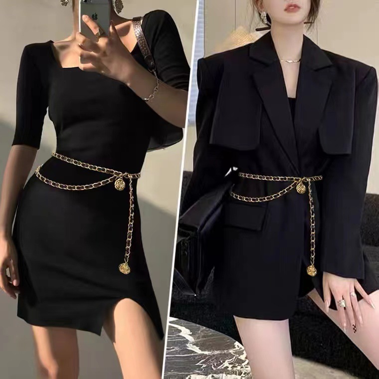 Цепочка на талию для женщин, пояс-цепочка для платьев, кожаный ремень, пояс для талии, тонкая цепочка для брюк, золотой, модный и универсальный.