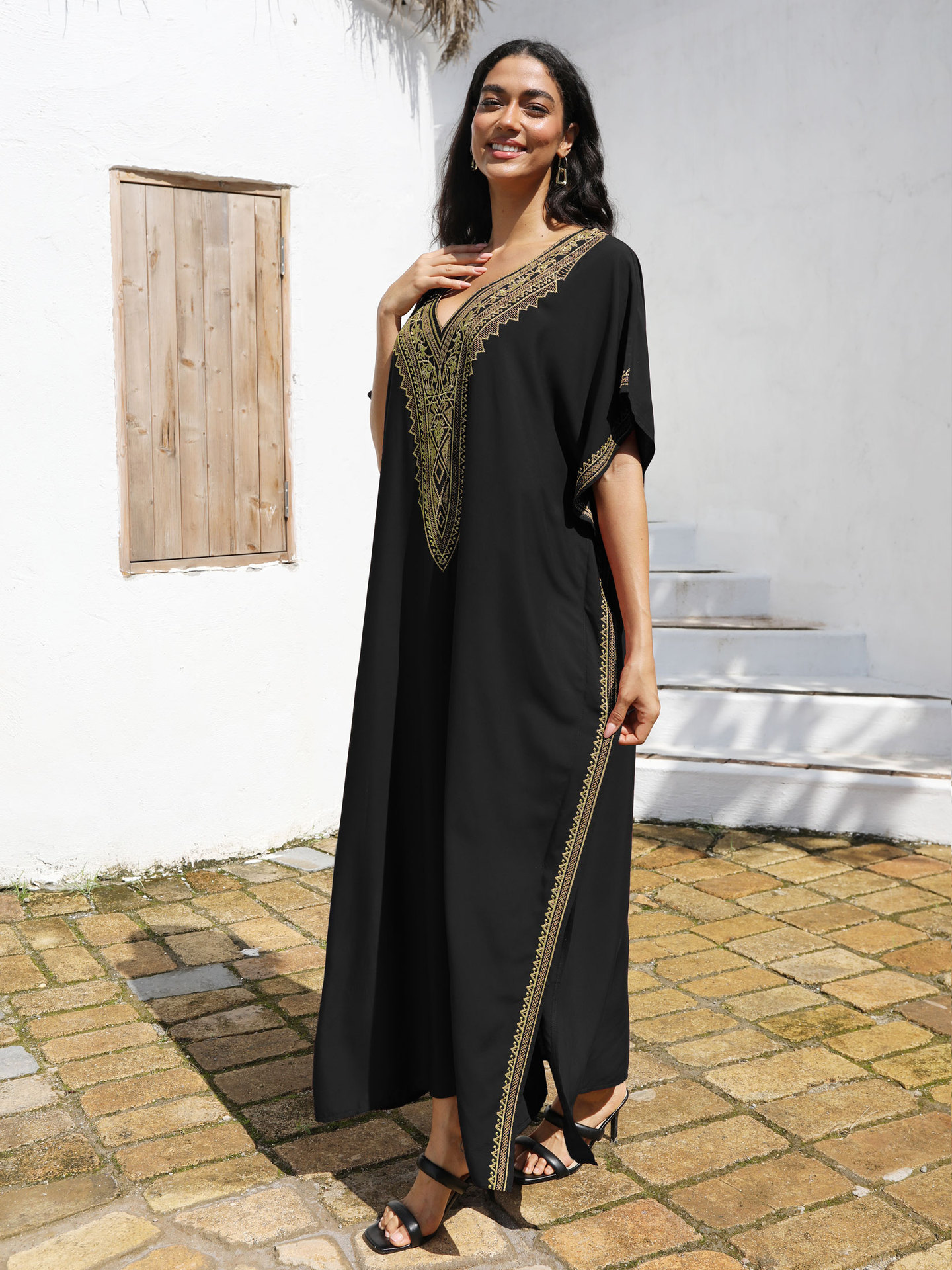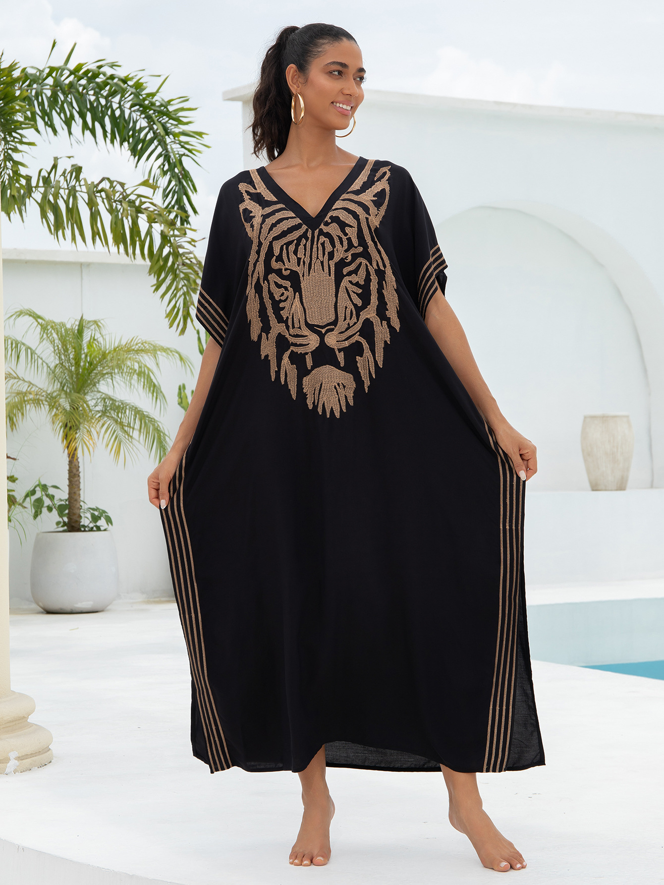 Пляжная блузка хлопчатобумажная золотая вышитая одежда для отдыха трансграничная Amazon L4068 L