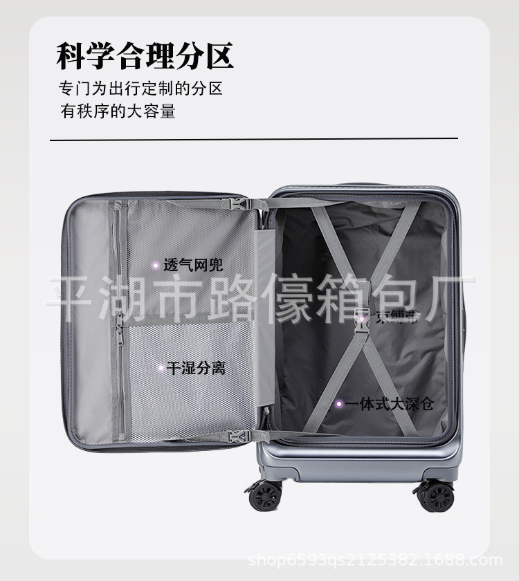 2024 новый передний открытый чемодан 20-дюймовый посадочный шасси 24-дюймовый антисталкный чемодан чемодан чемодан чемодан шифр чемодан чемодан