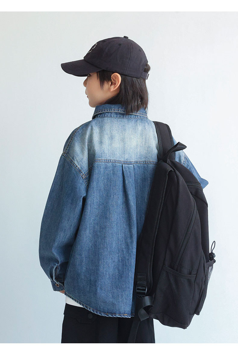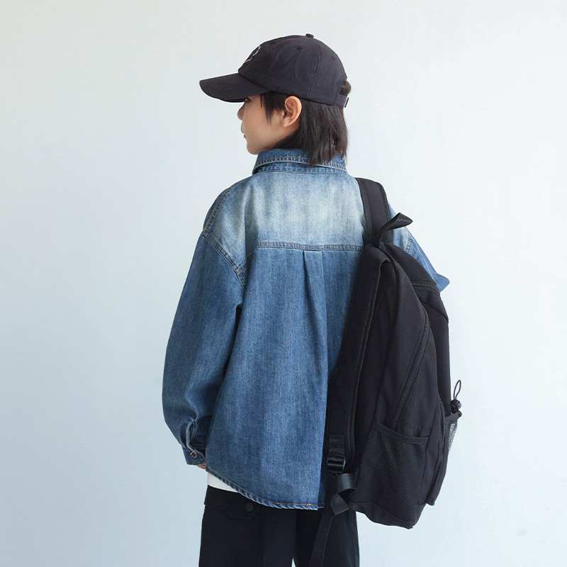 Рубашка для мальчиков 2024 осень новая корейская джинсовая рубашка детская дизайнерская печать с длинными рукавами