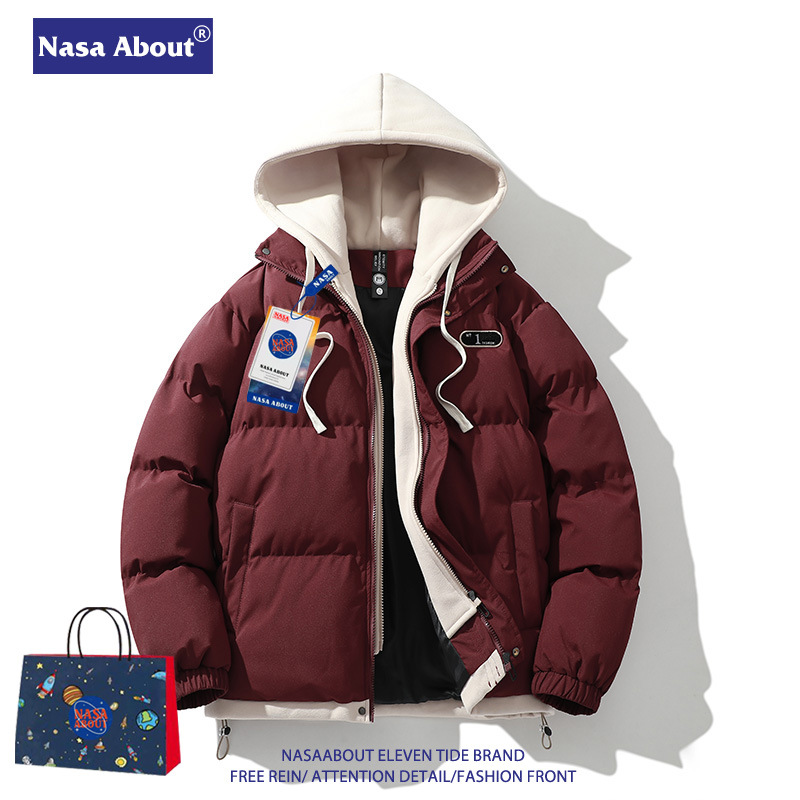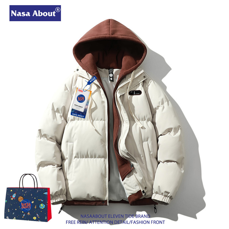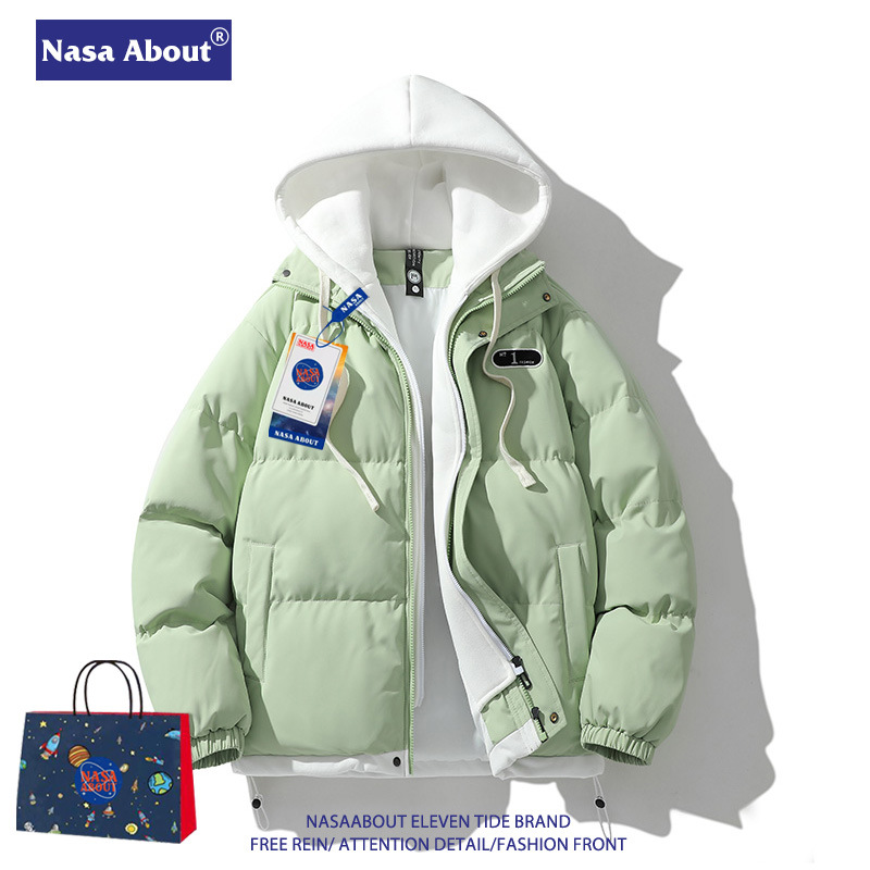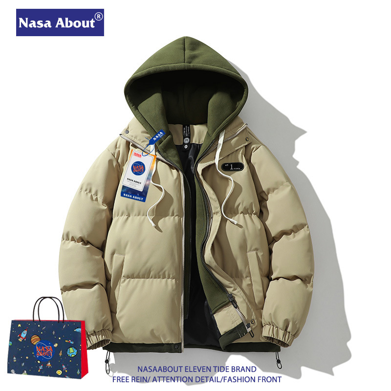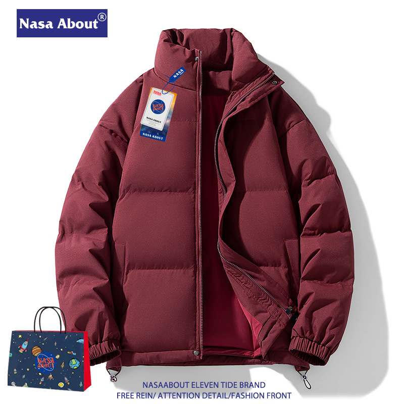 NASA Пуховая хлопковая куртка Мужская куртка 2025 Новая зимняя хлопковая куртка Утолщенная модная брендовая куртка с воротником-стойкой Пара Хлебная куртка Зимняя одежда