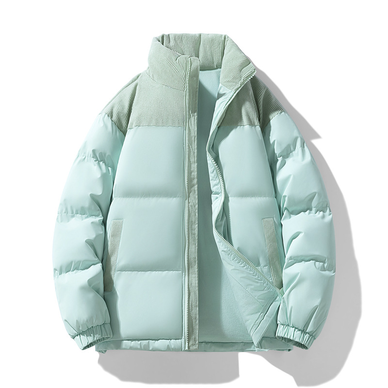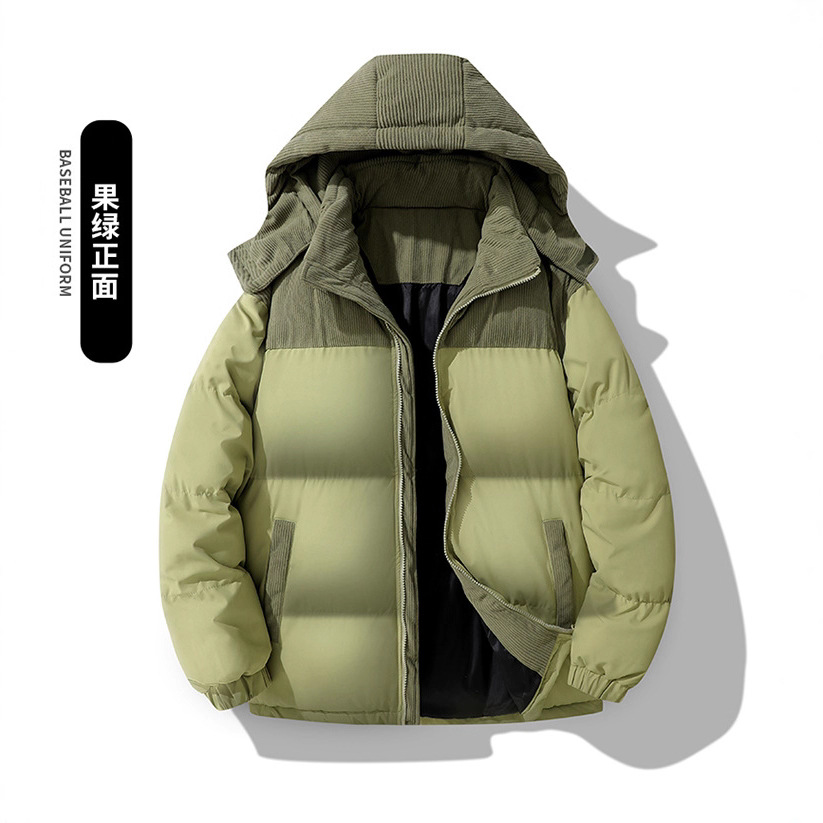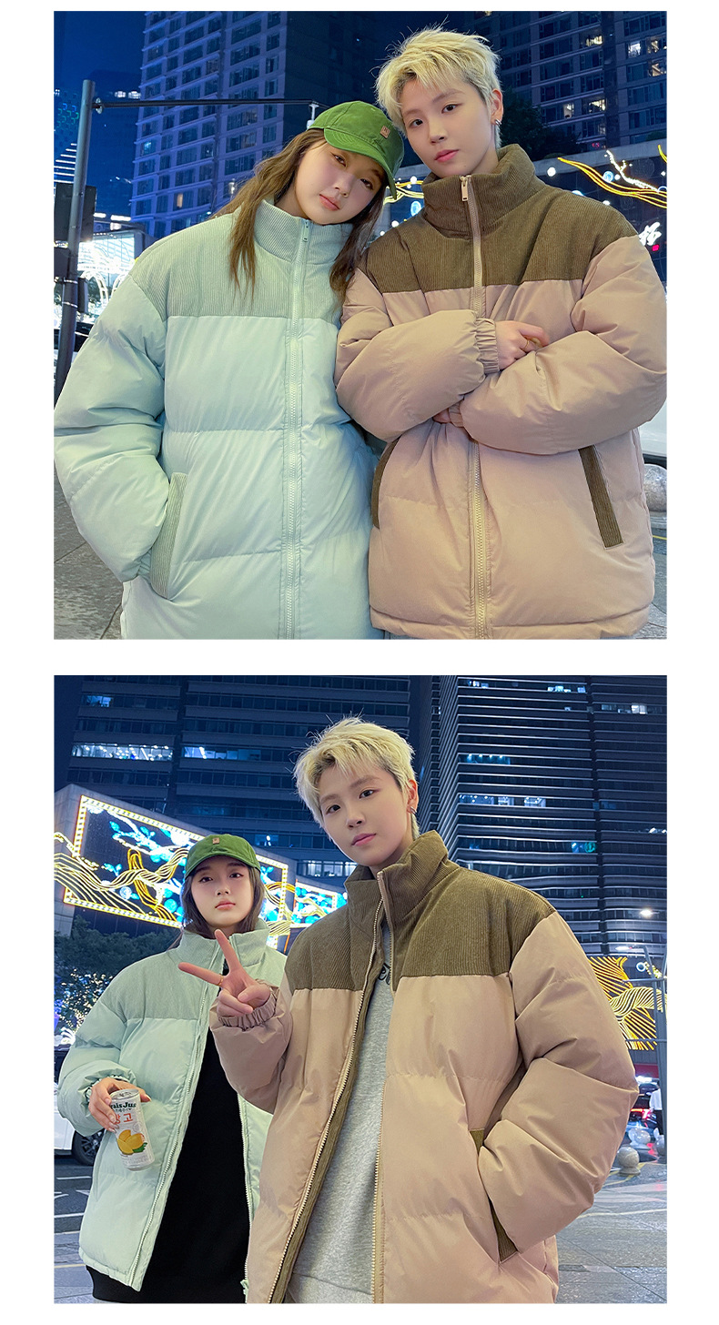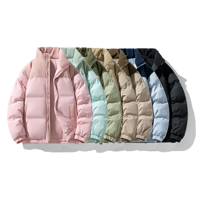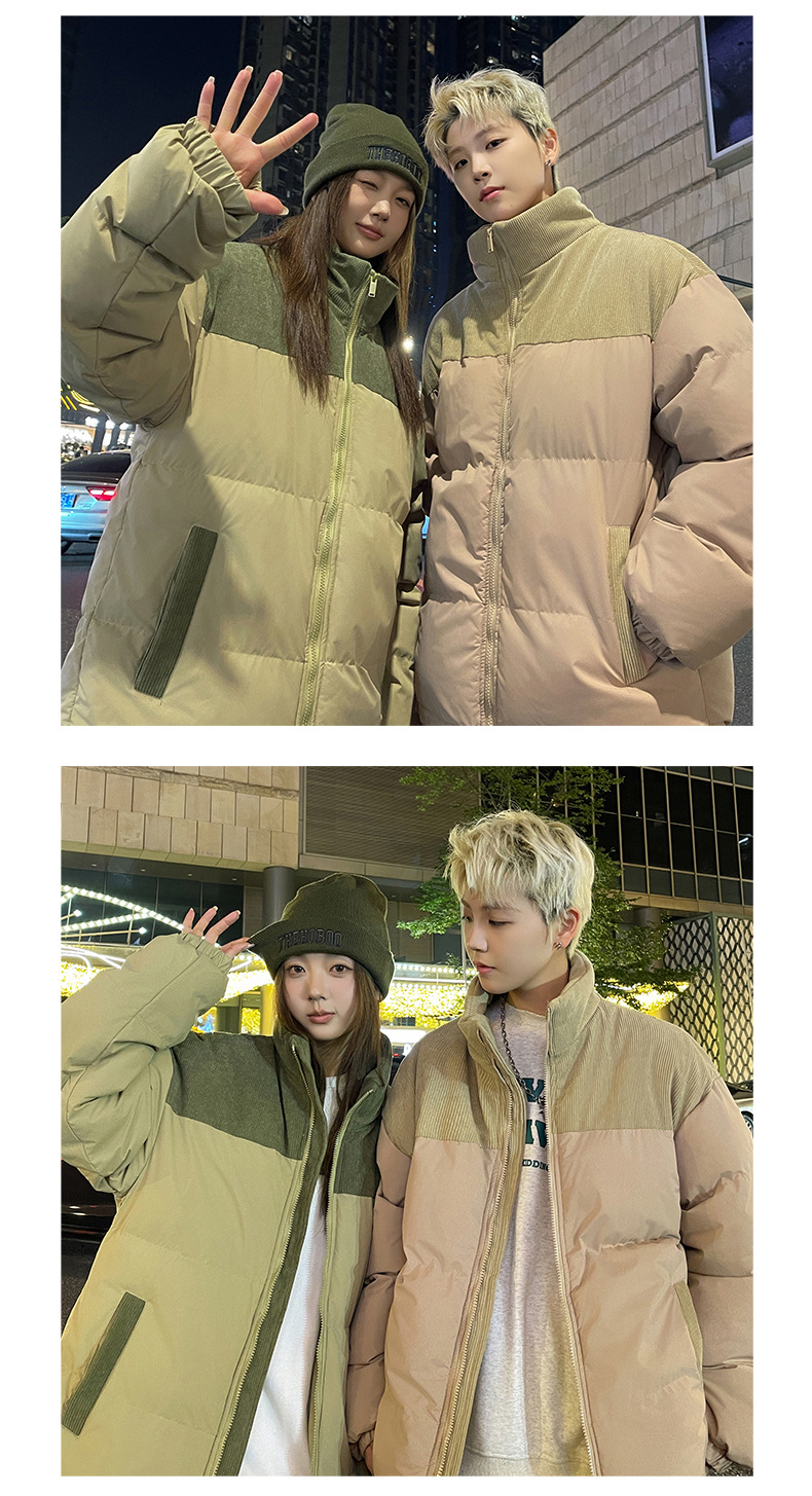 Модная куртка-пуховик унисекс из вельвета с цветовыми блоками и воротником-стойкой, осенне-зимняя мужская хлопковая одежда, трендовый корейский стиль
