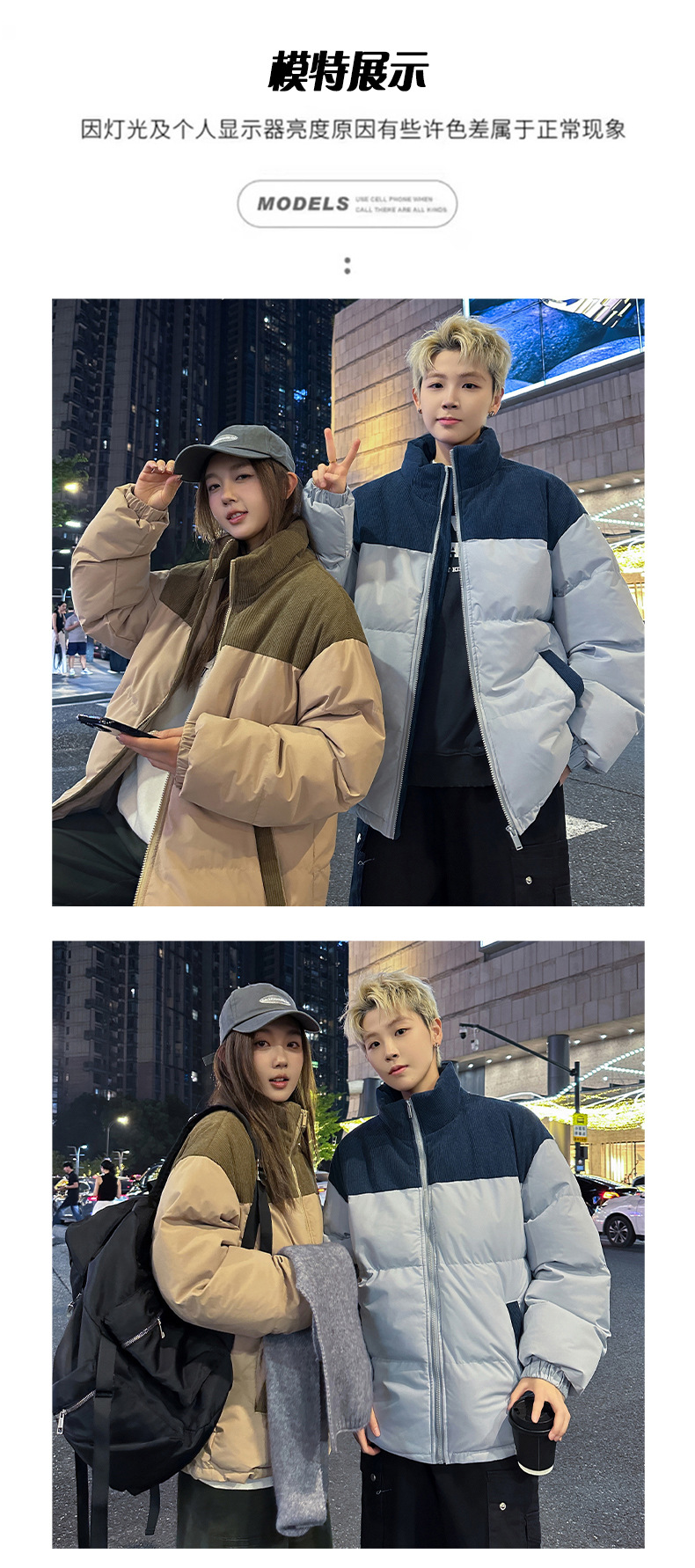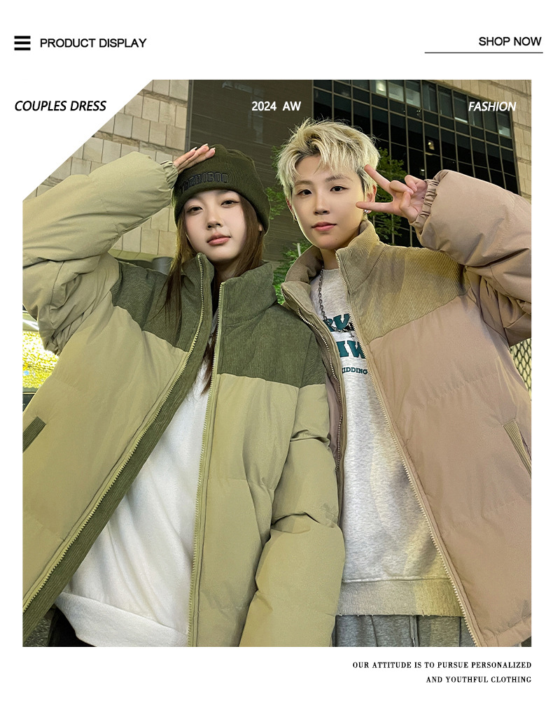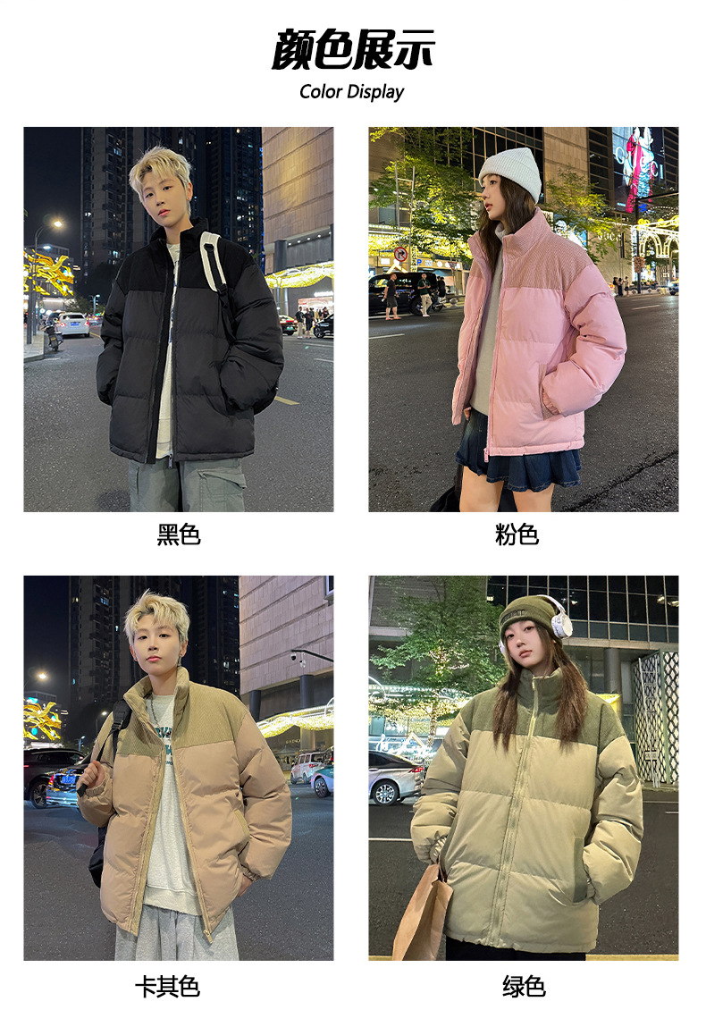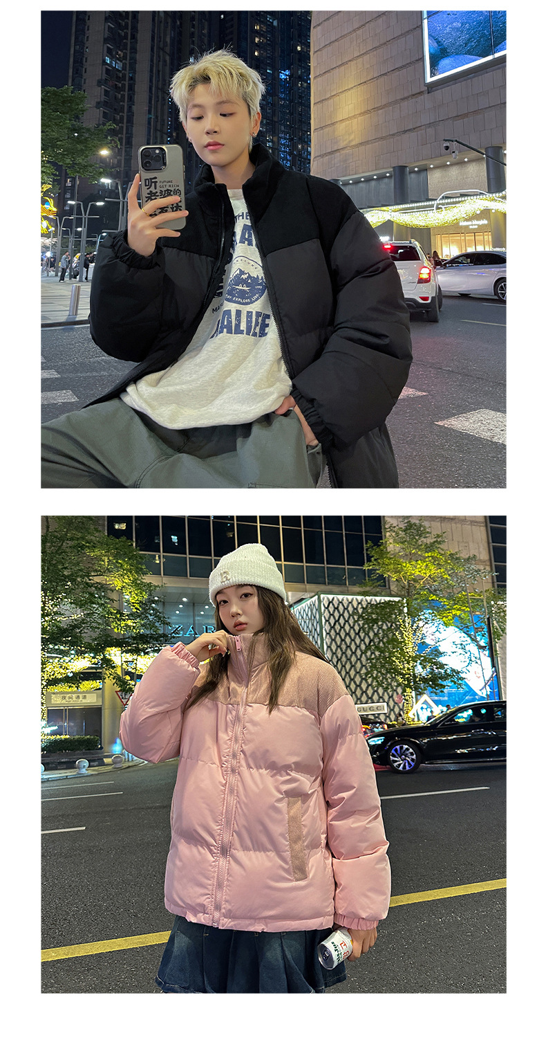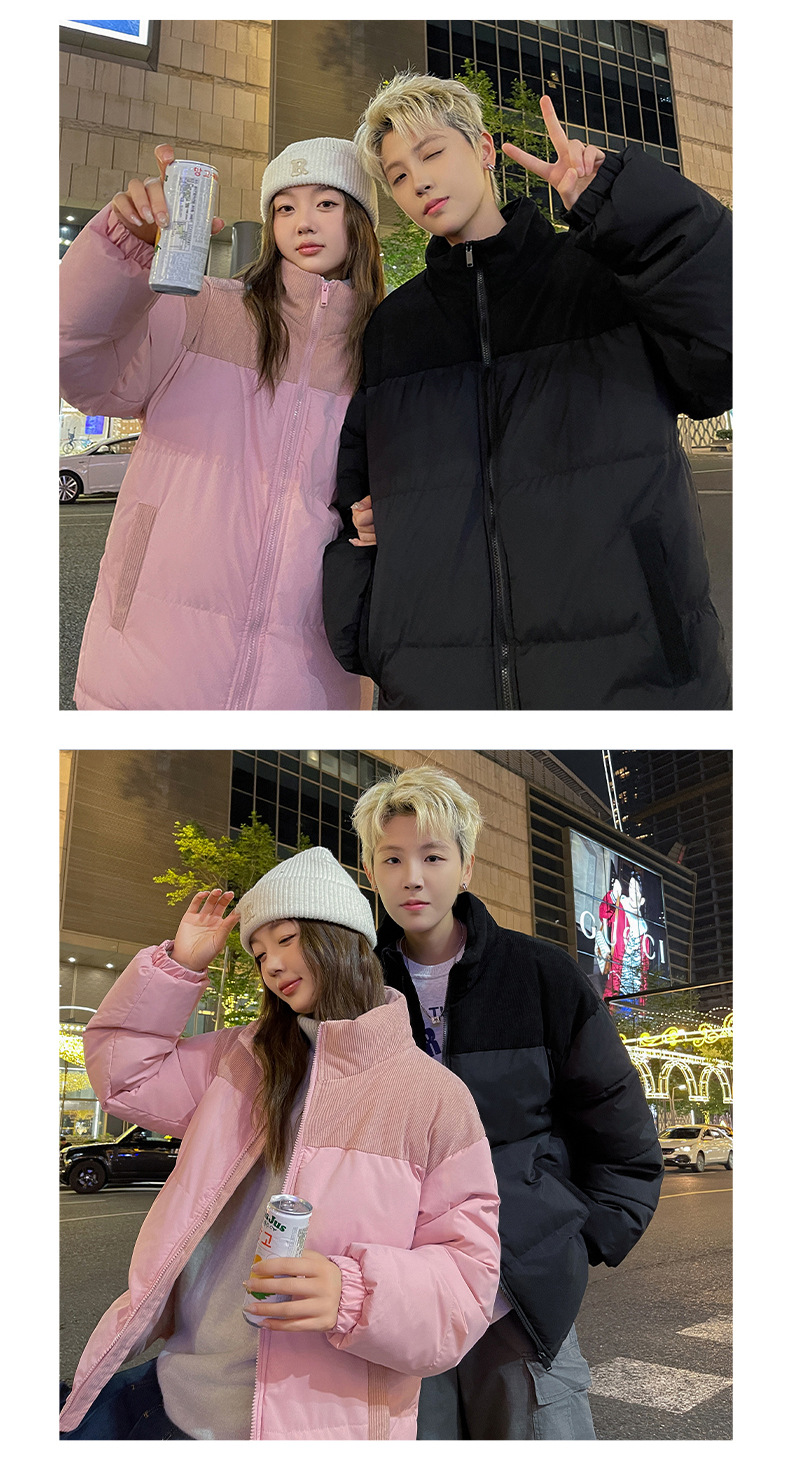 Модная куртка-пуховик унисекс из вельвета с цветовыми блоками и воротником-стойкой, осенне-зимняя мужская хлопковая одежда, трендовый корейский стиль