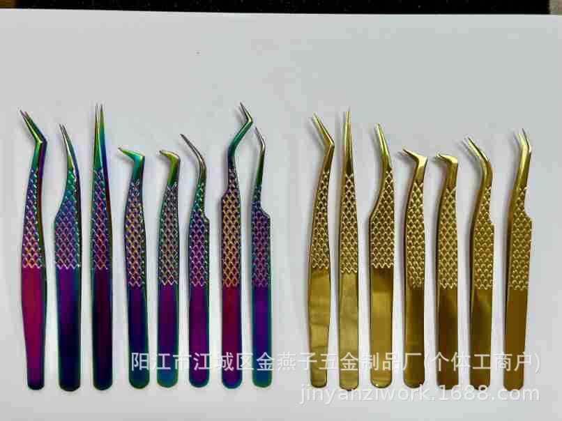Производитель пинцетов для наращивания накладных ресниц, высокоточный набор инструментов для ухода за ресницами, нержавеющая сталь с алмазным узором, для профессиональных мастеров по наращиванию ресниц