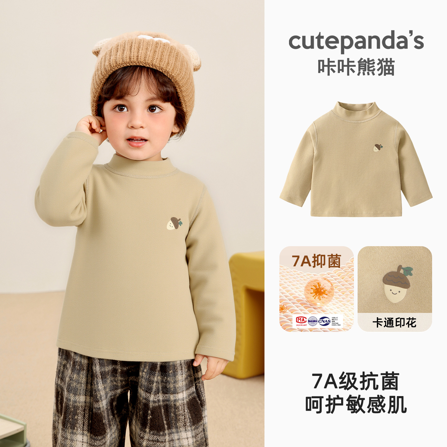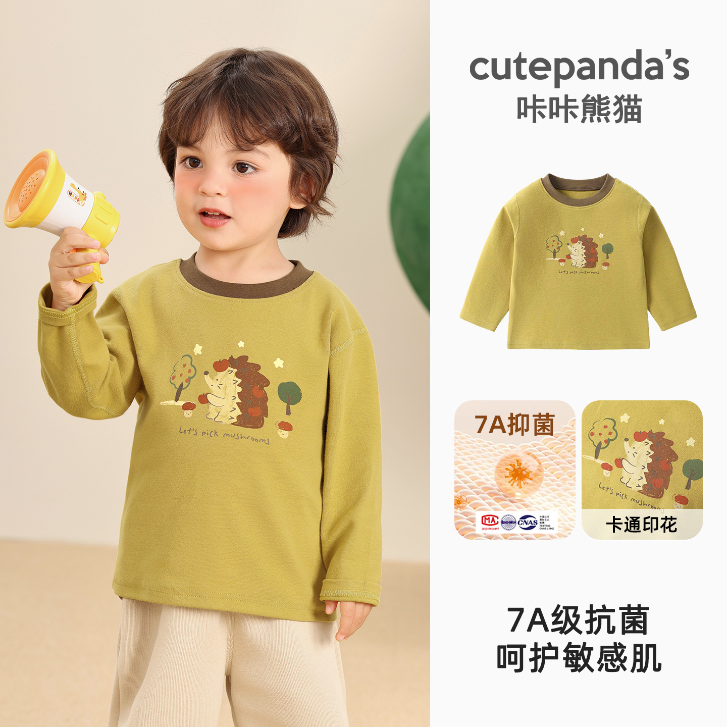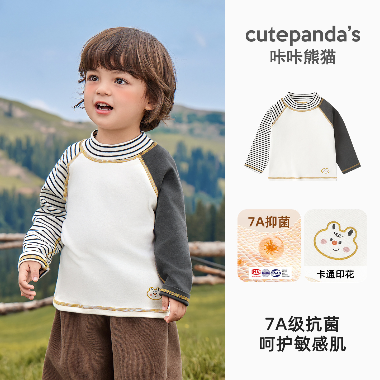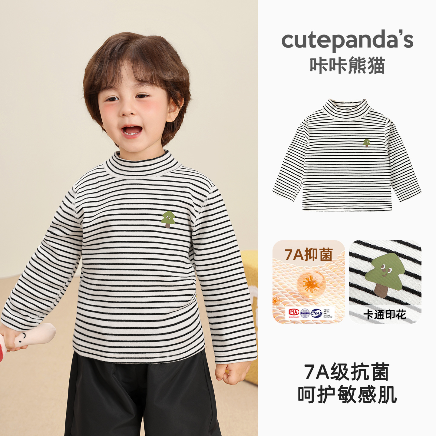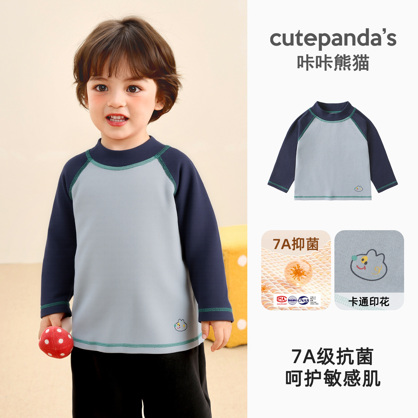 Kaka Panda Детская футболка с длинными рукавами для мальчиков с половинным воротником и нижняя рубашка для детей