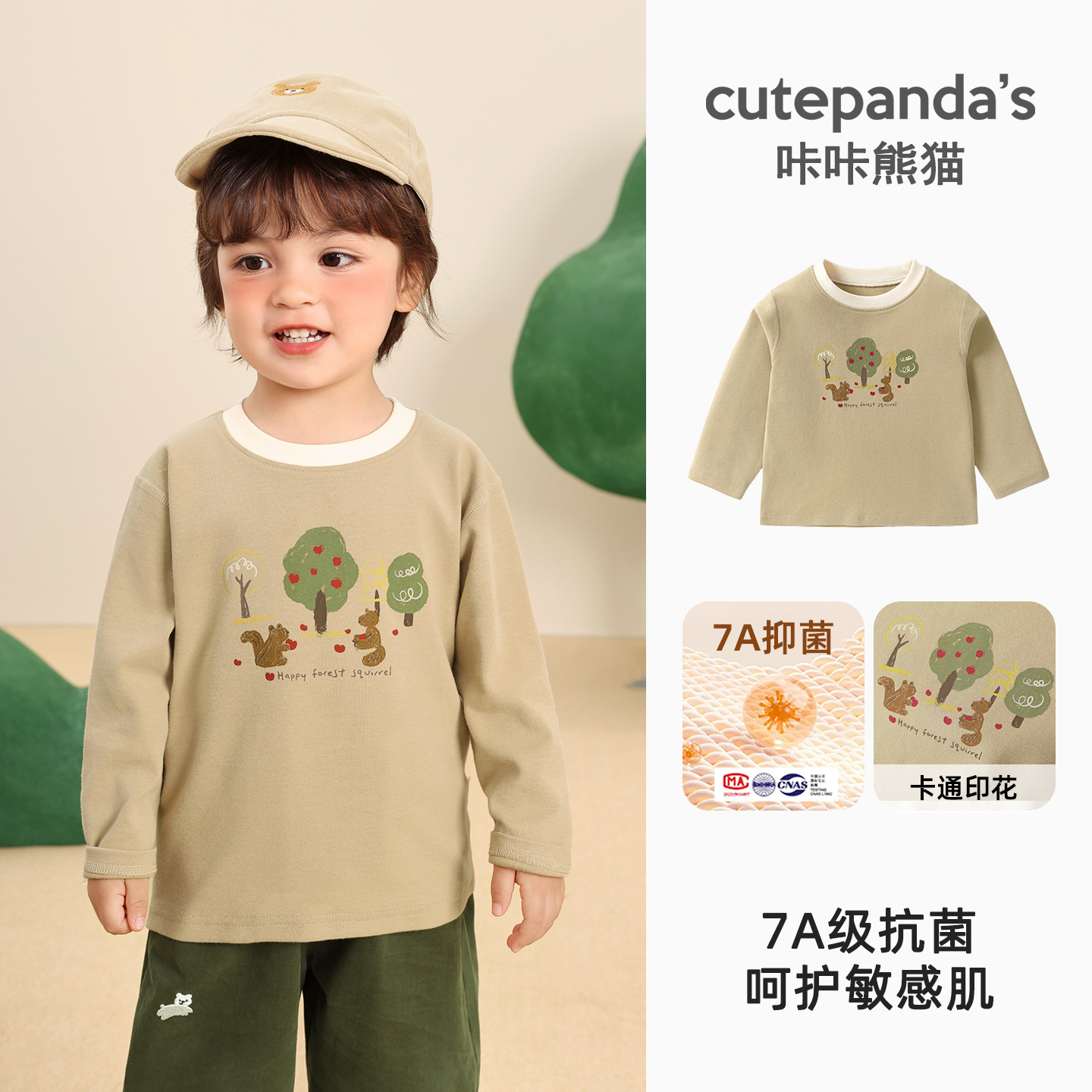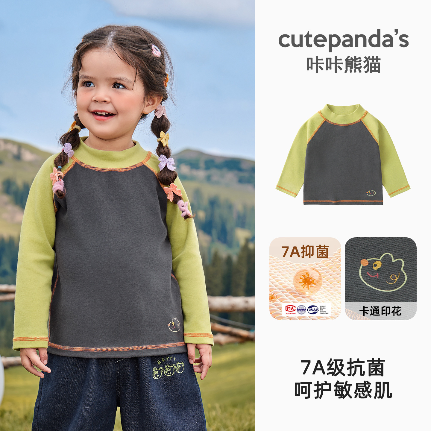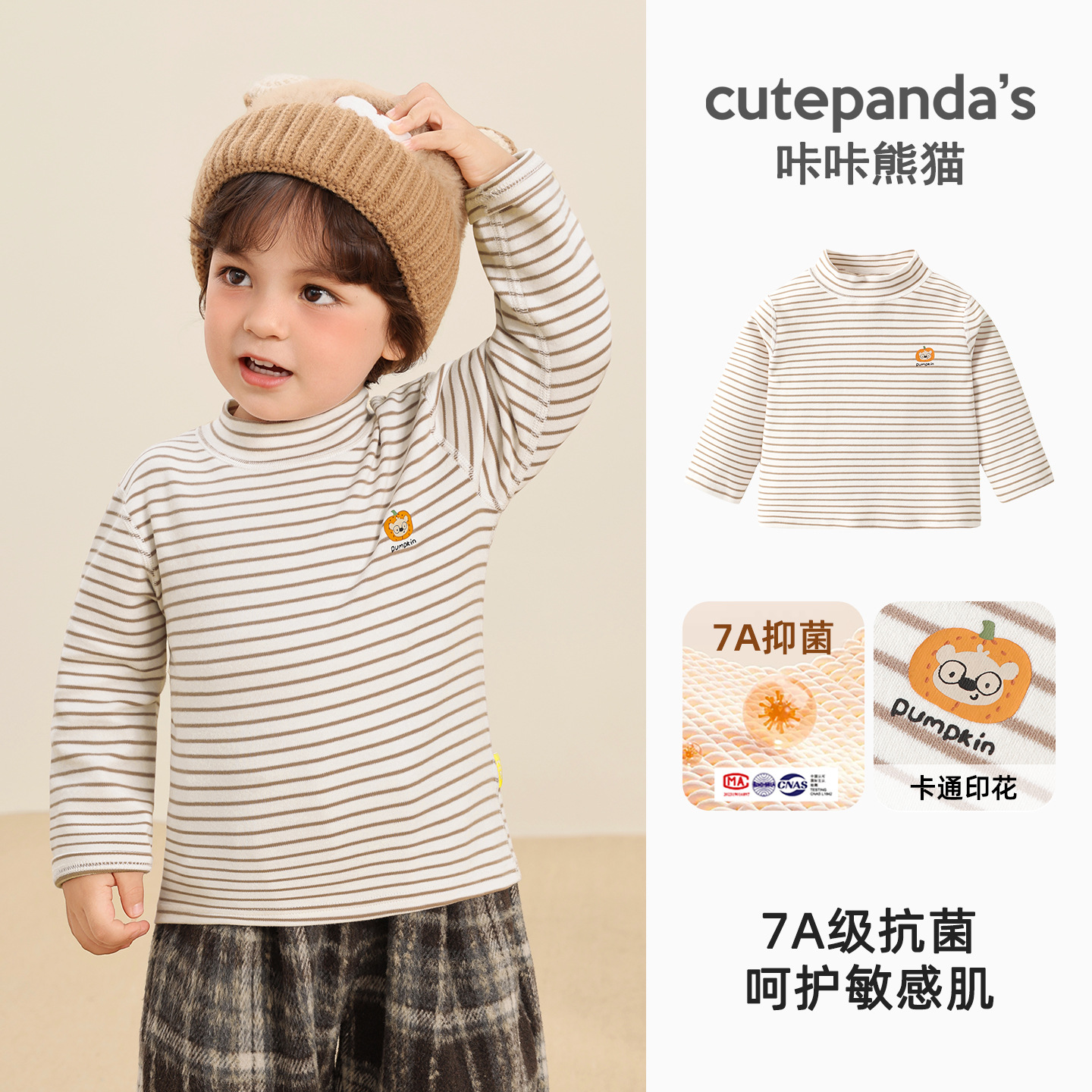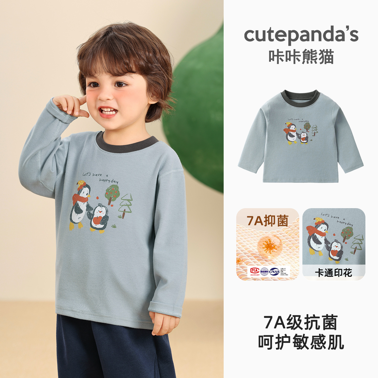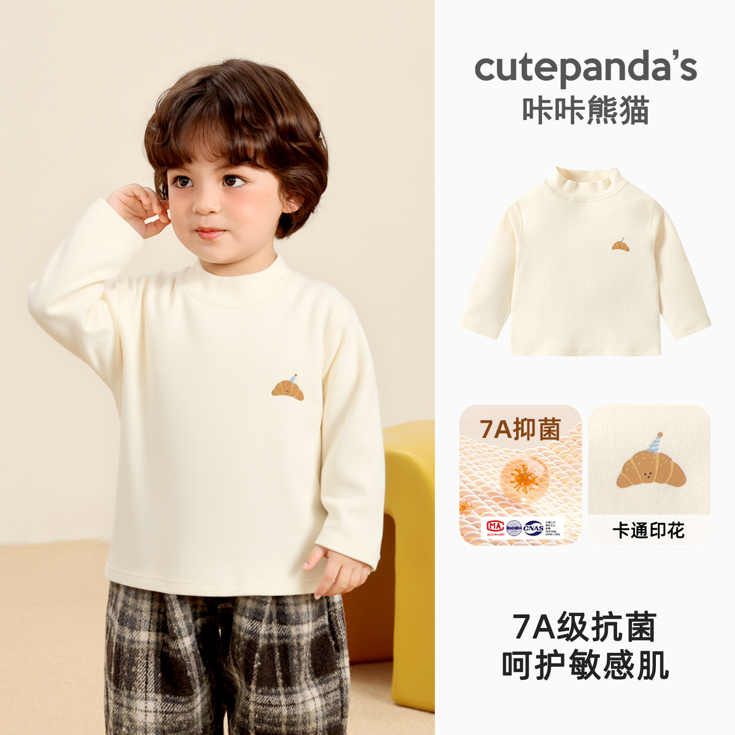 Kaka Panda Детская футболка с длинными рукавами для мальчиков с половинным воротником и нижняя рубашка для детей