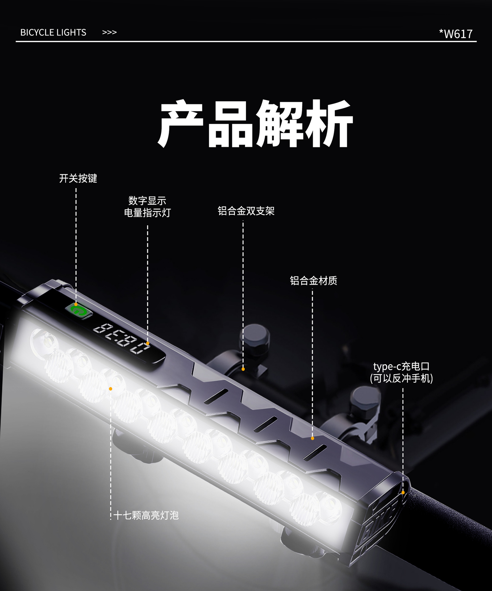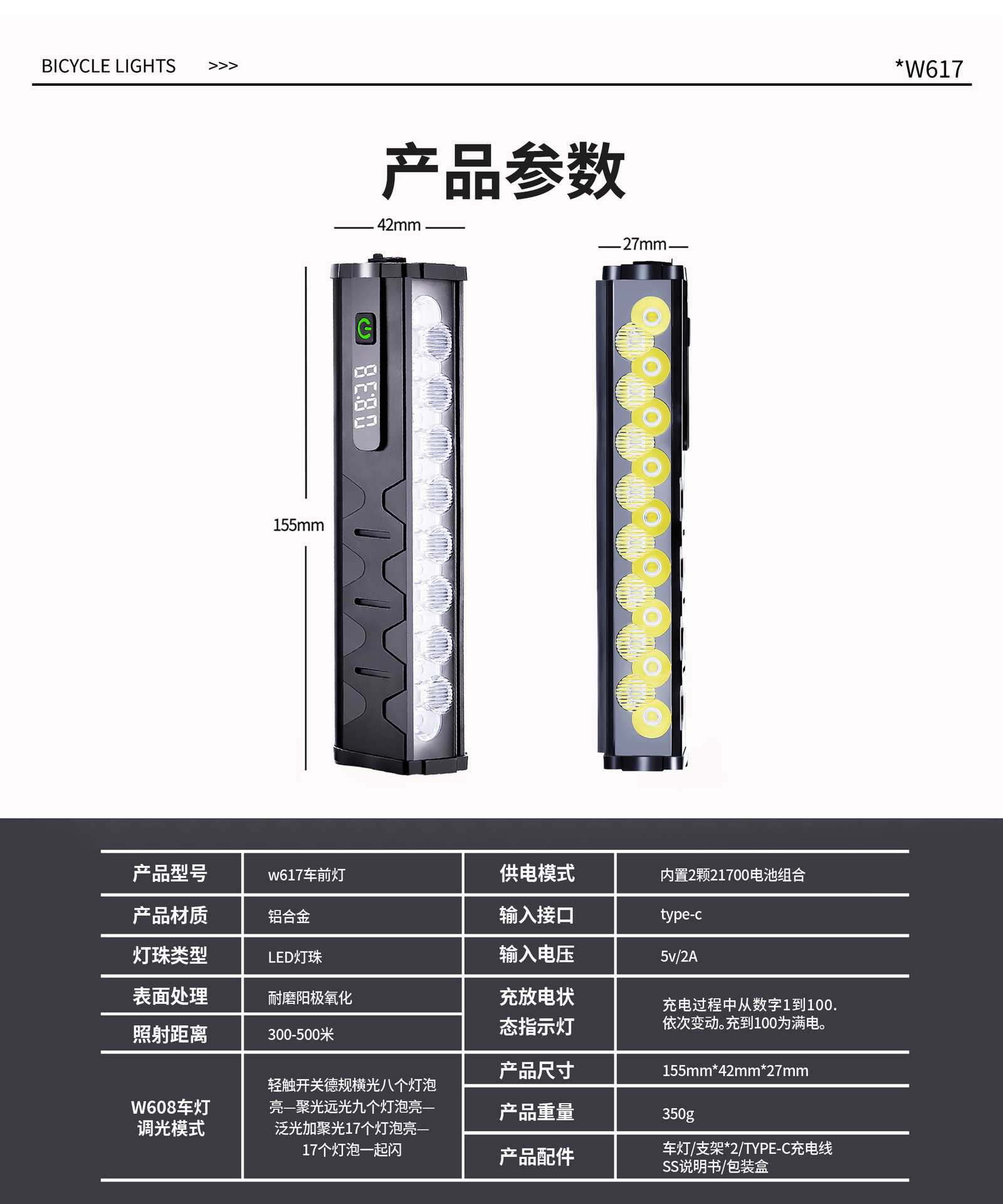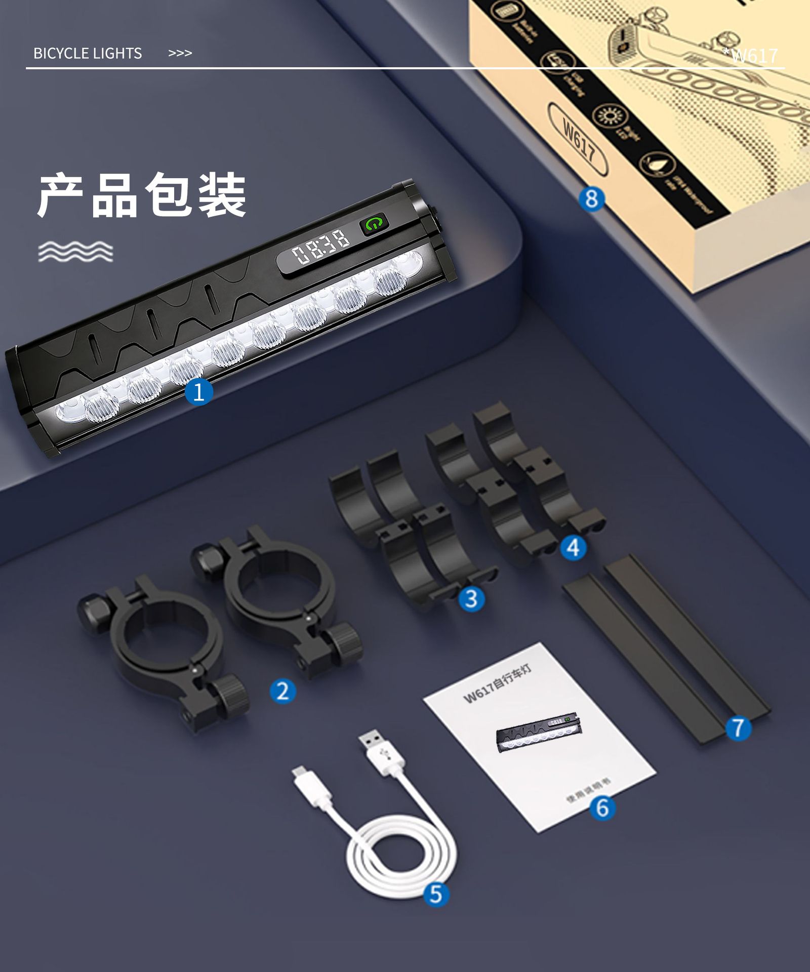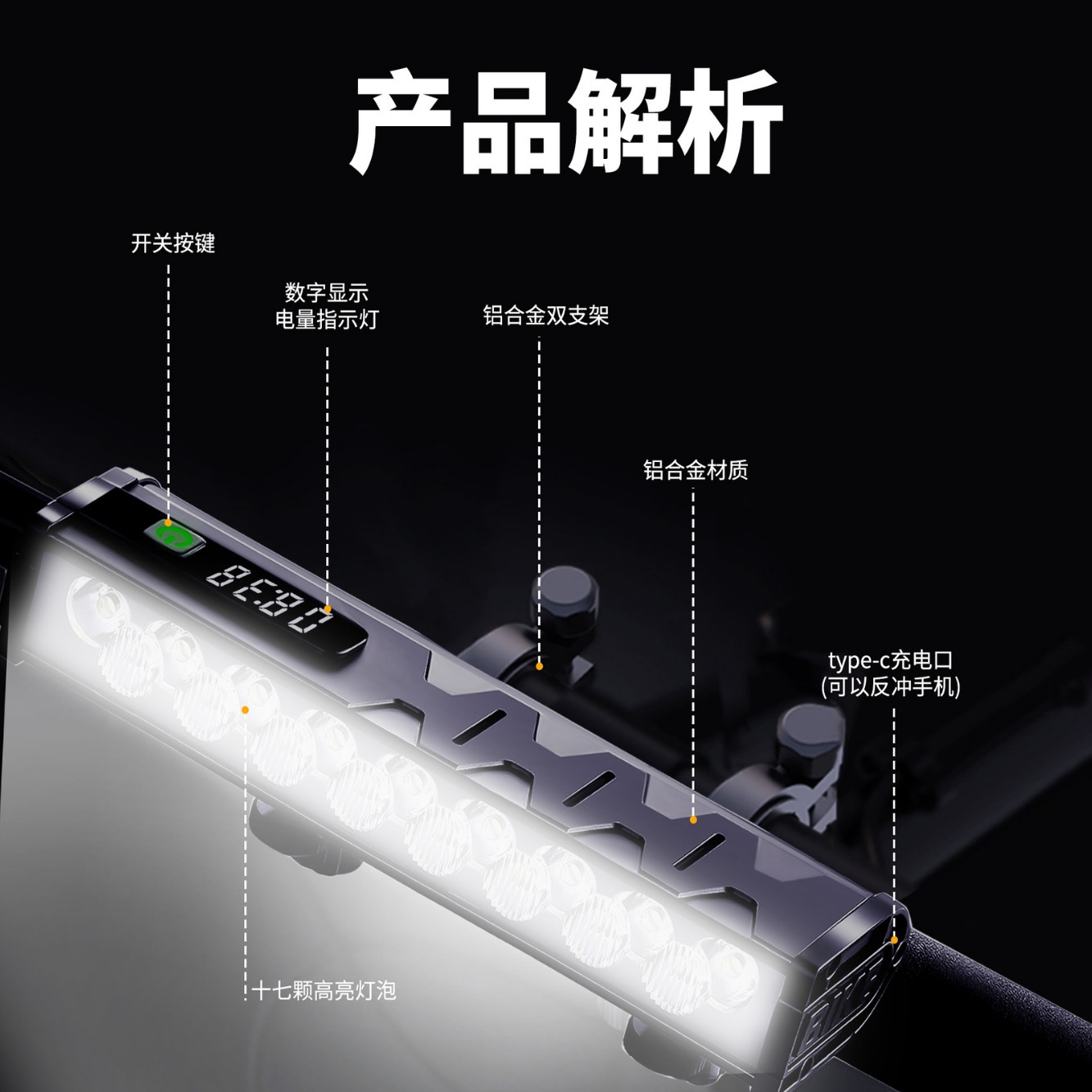 产品配件:车灯/支架*2/TYPE-C充电线/SS说明书/包装盒