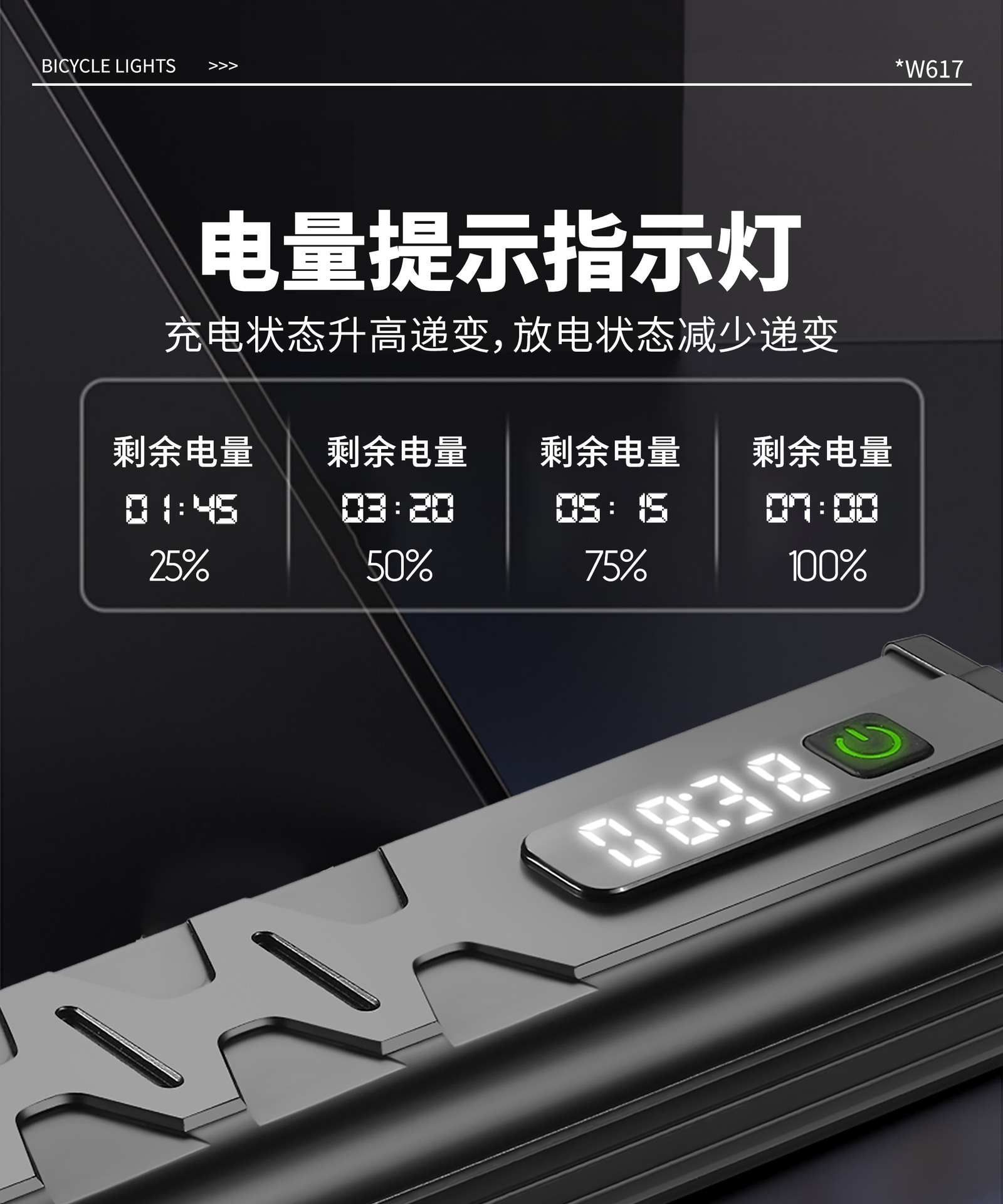 充放电状态指示灯:充电过程中从数字1到100,依次变动。充到100为满电。