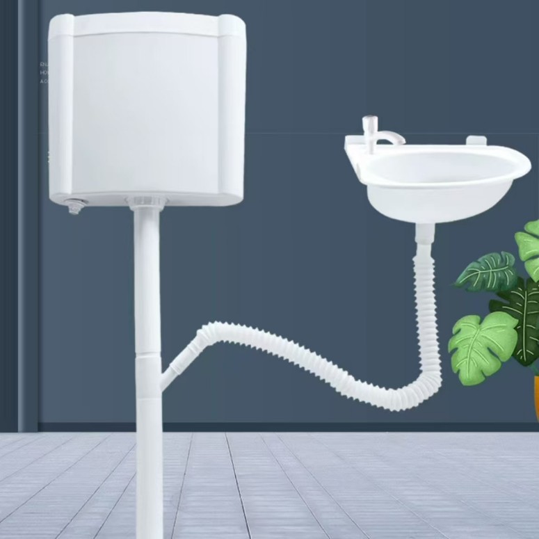 резервуар для воды; угловой умывальник; футболка; канализационная труба; кран; Резервуар для воды + тройник + угловой бак + смеситель + канализационная труба