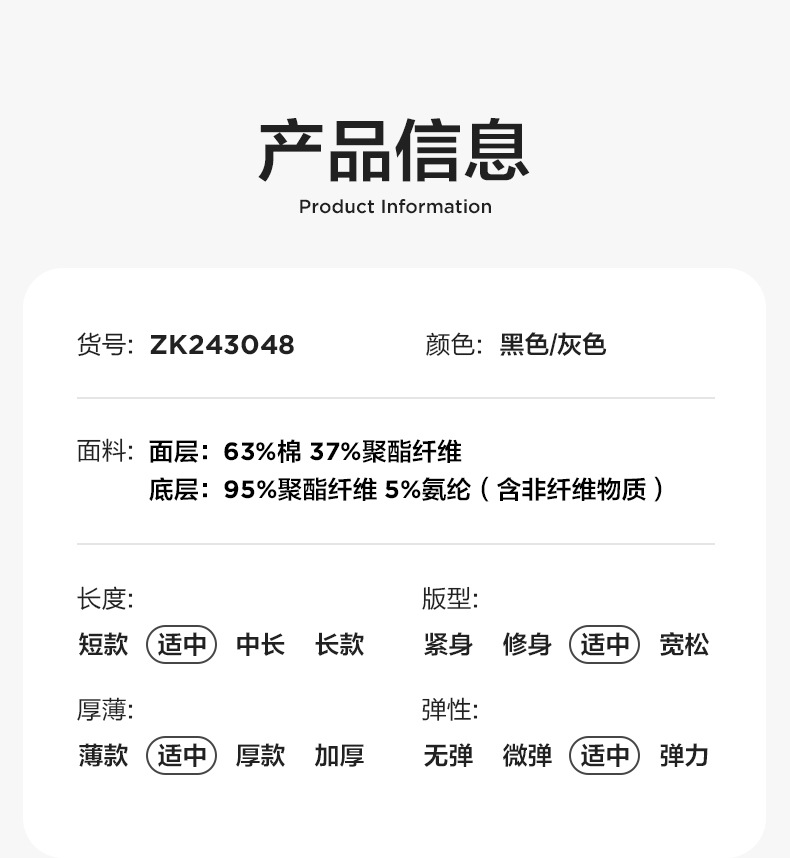 Поверхностный слой ткани: 63% хлопок, 37% полиэфирное волокно. Нижний слой ткани: 95% полиэфирное волокно, 5% спандекс (включая нетканые материалы).