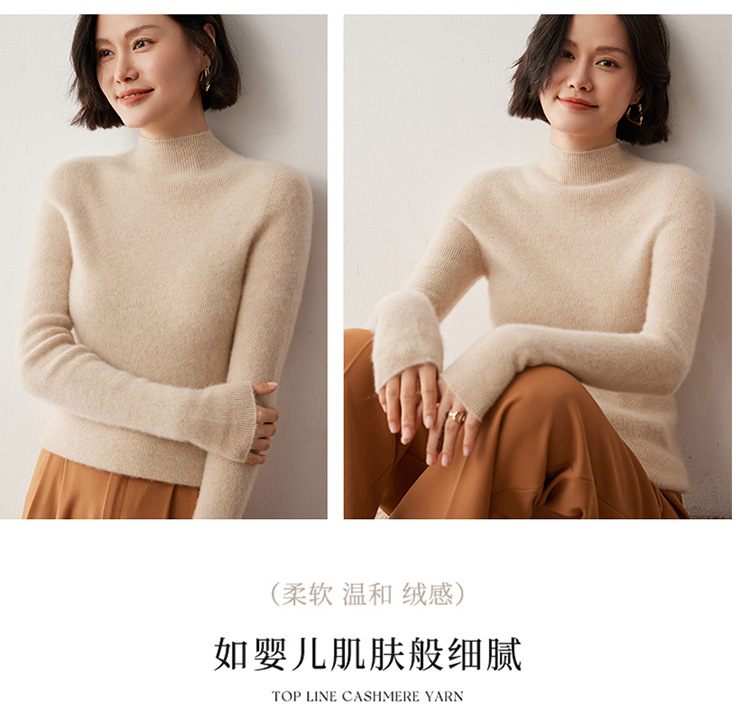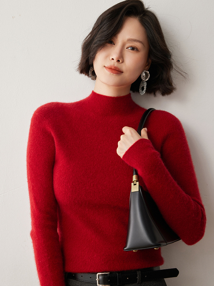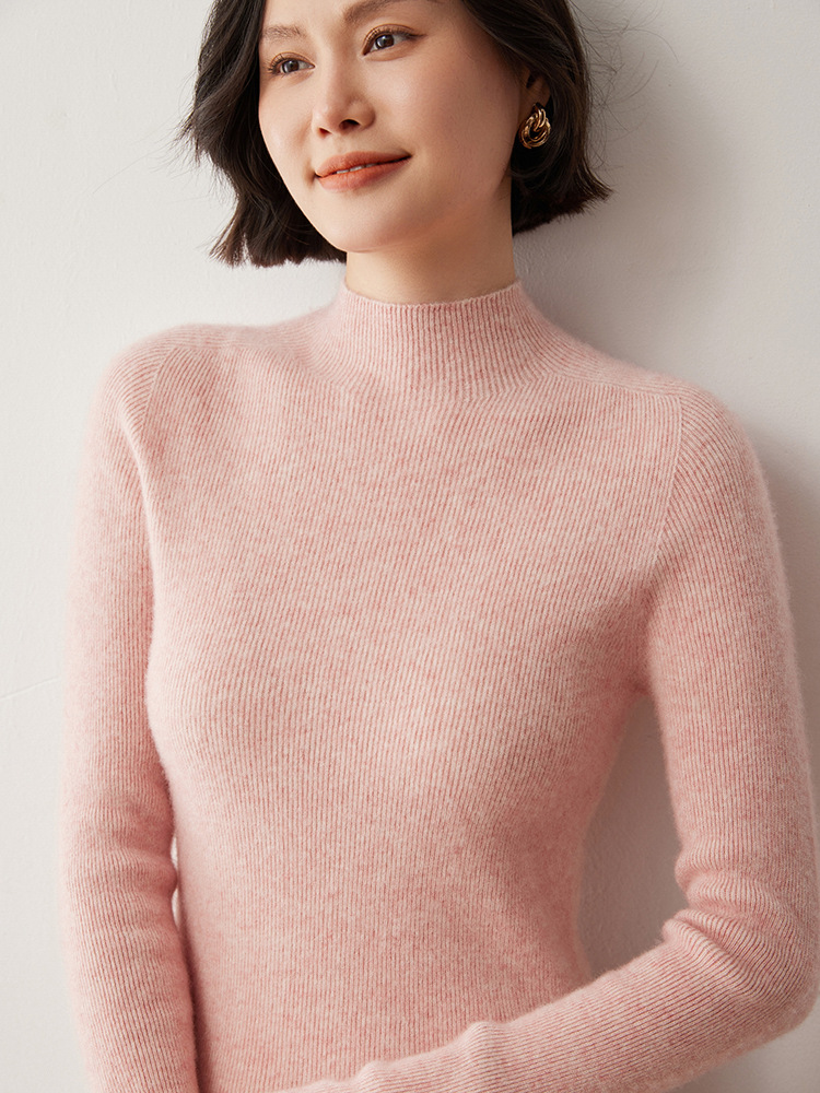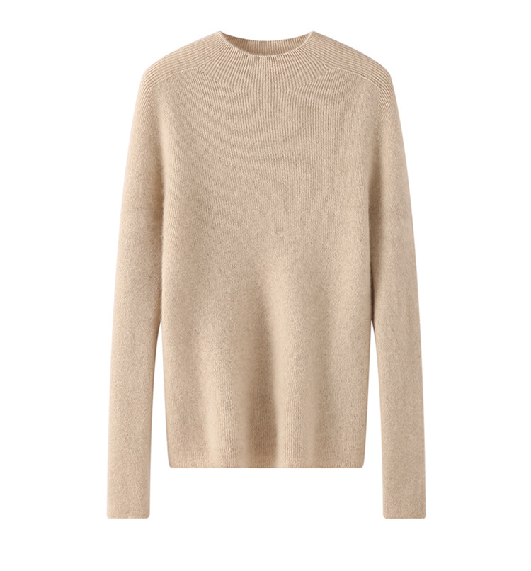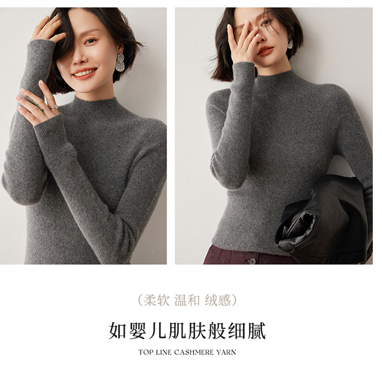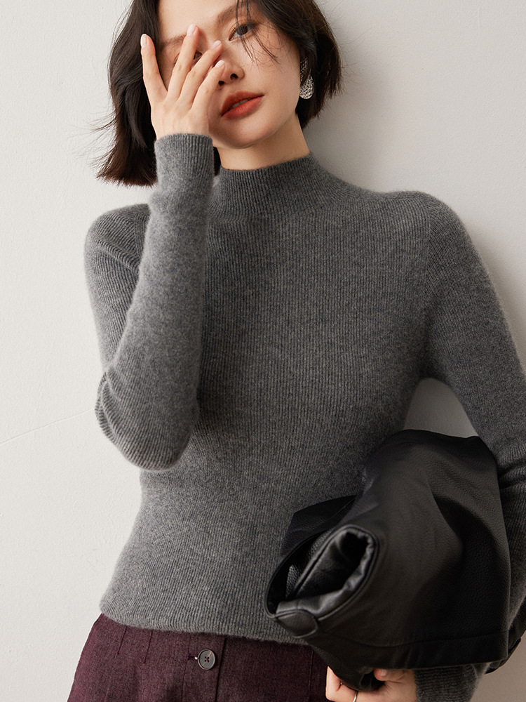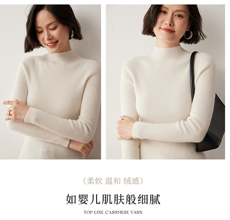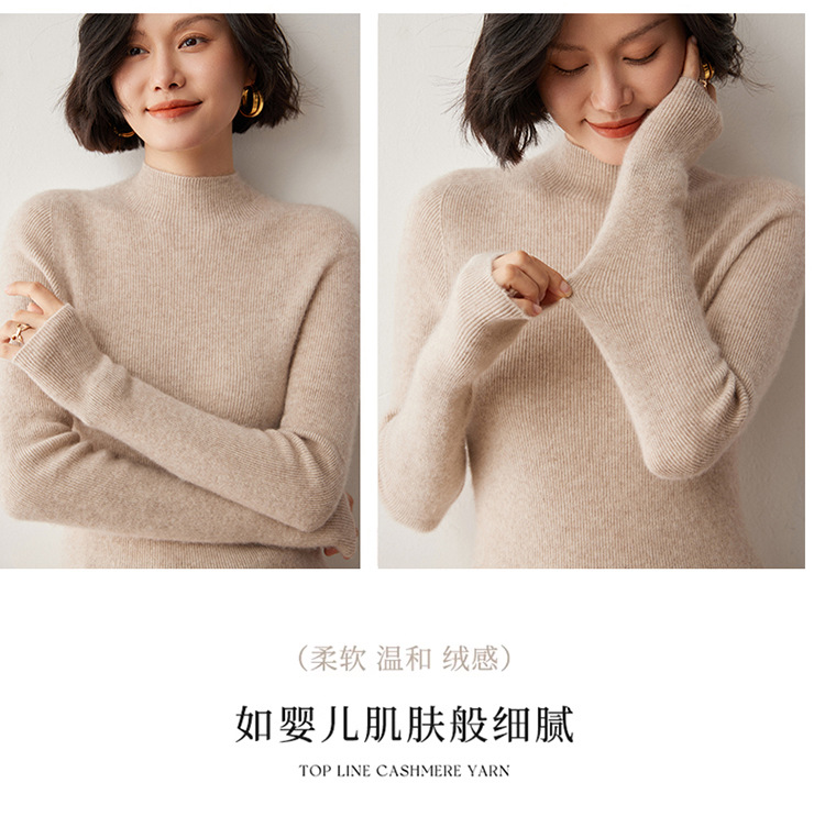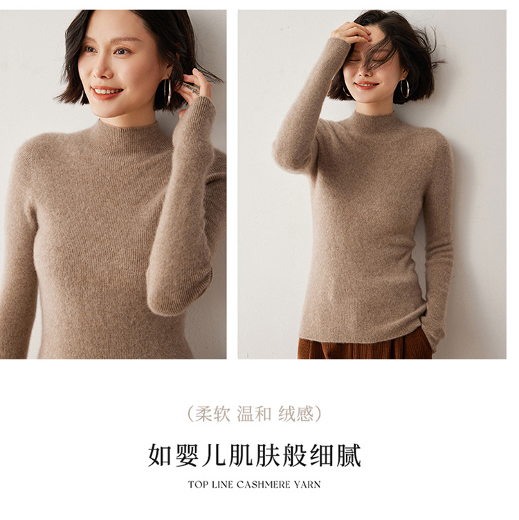 Женский свитер из утолщенной шерсти с воротником-стойкой, новинка осени-зимы 2025, приталенный, однослойный кашемировый трикотажный базовый свитер для женщин.