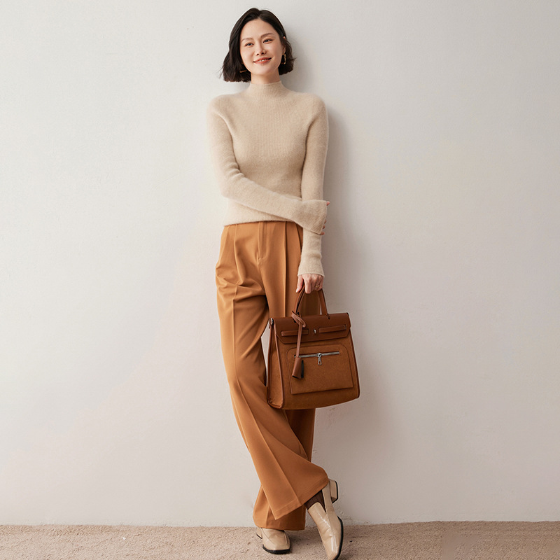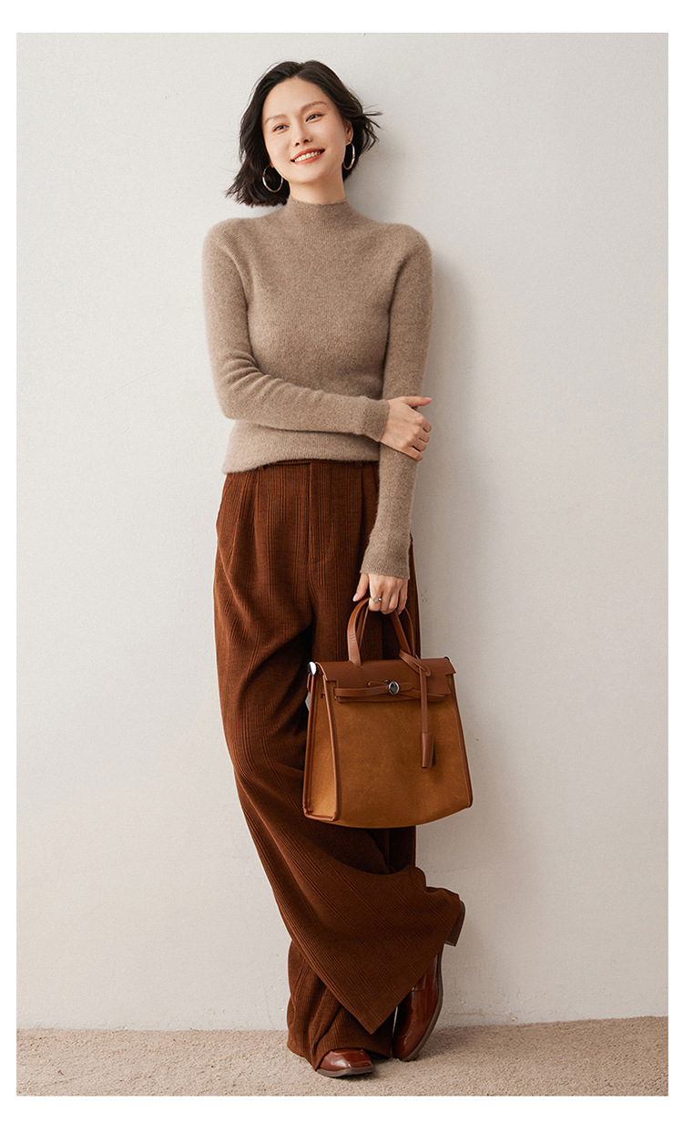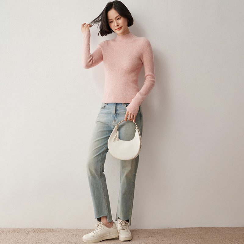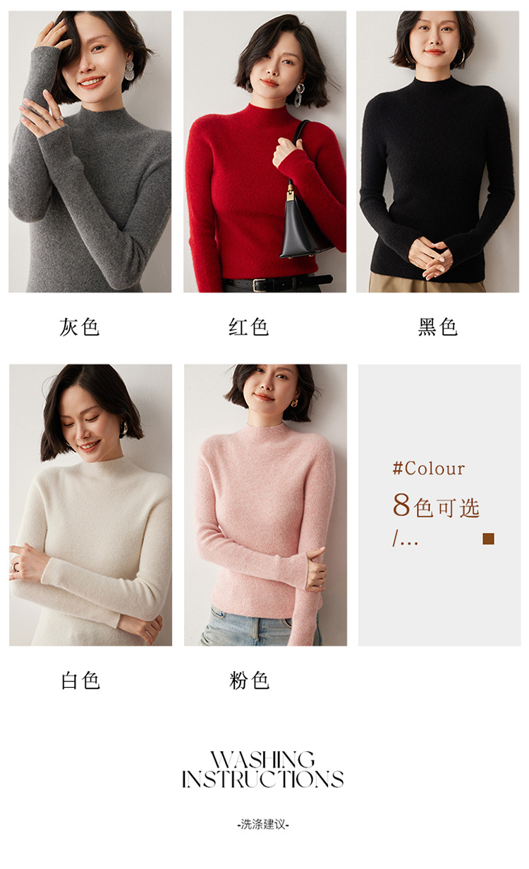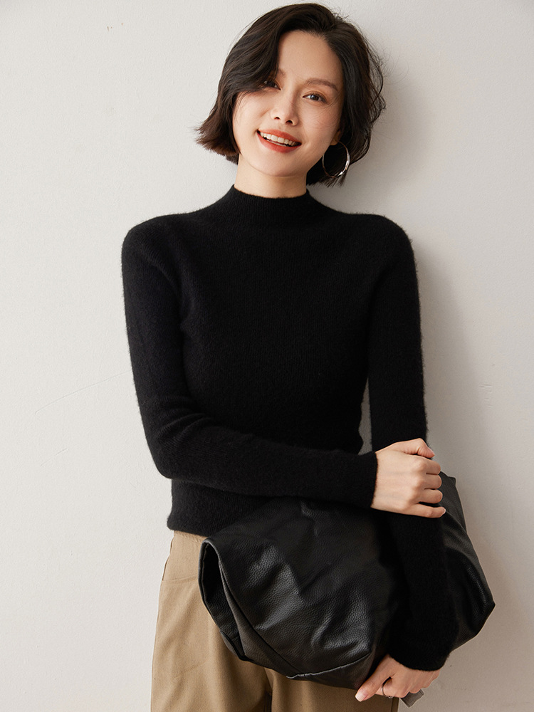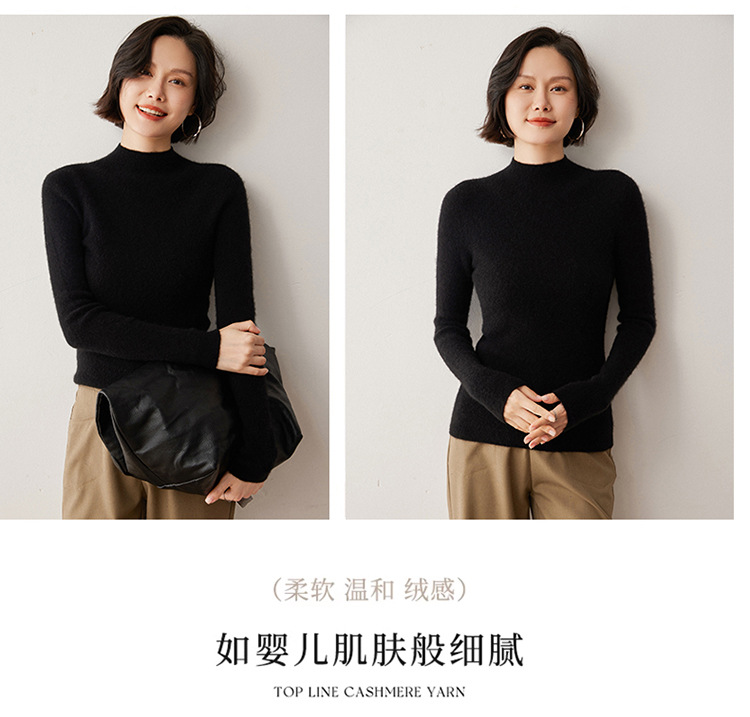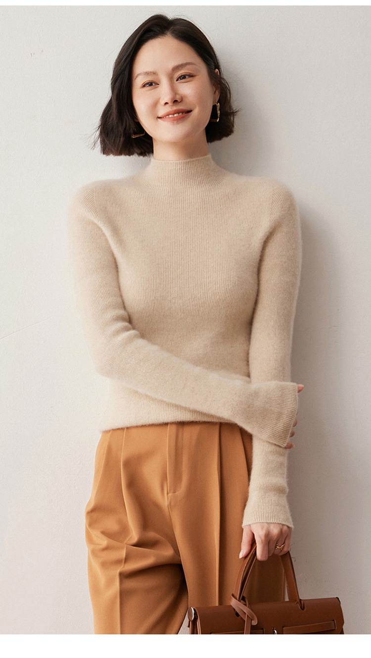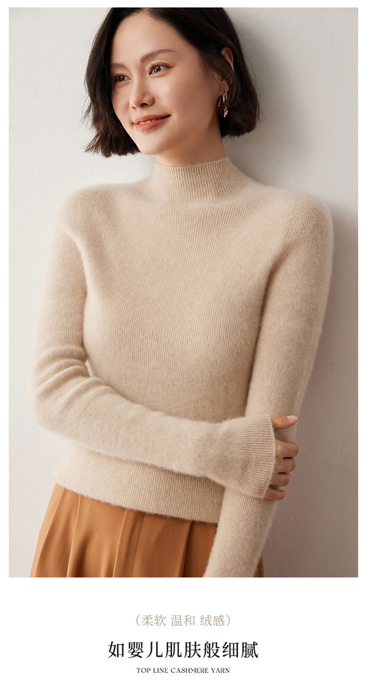 Женский свитер из утолщенной шерсти с воротником-стойкой, новинка осени-зимы 2025, приталенный, однослойный кашемировый трикотажный базовый свитер для женщин.