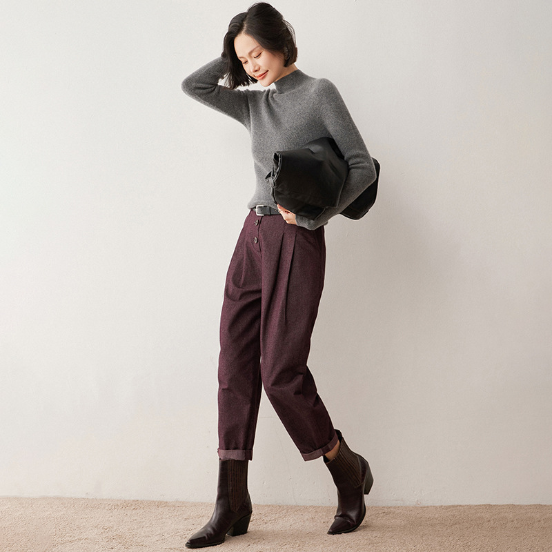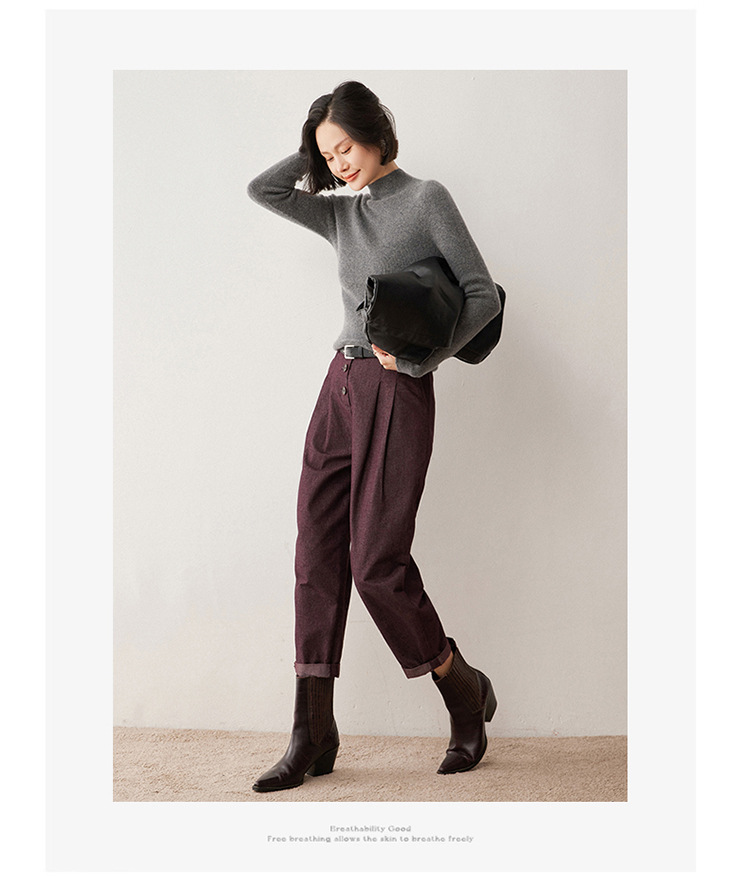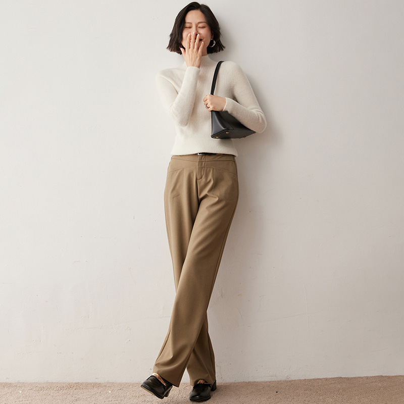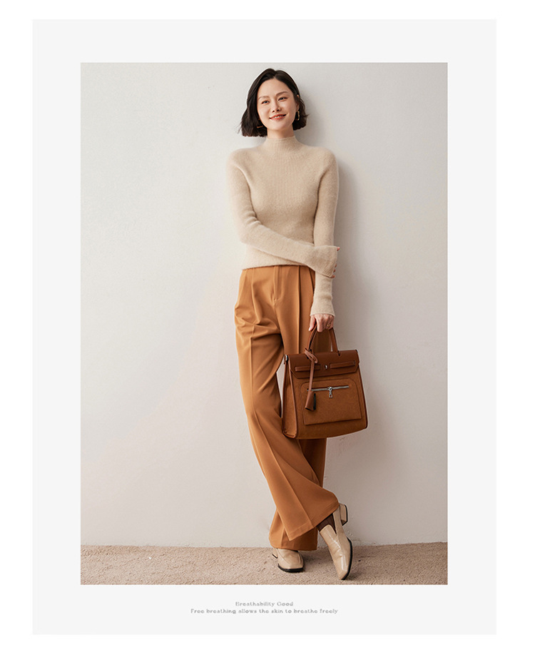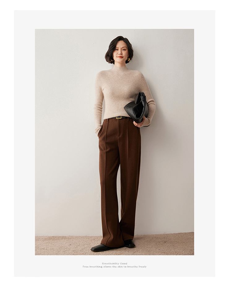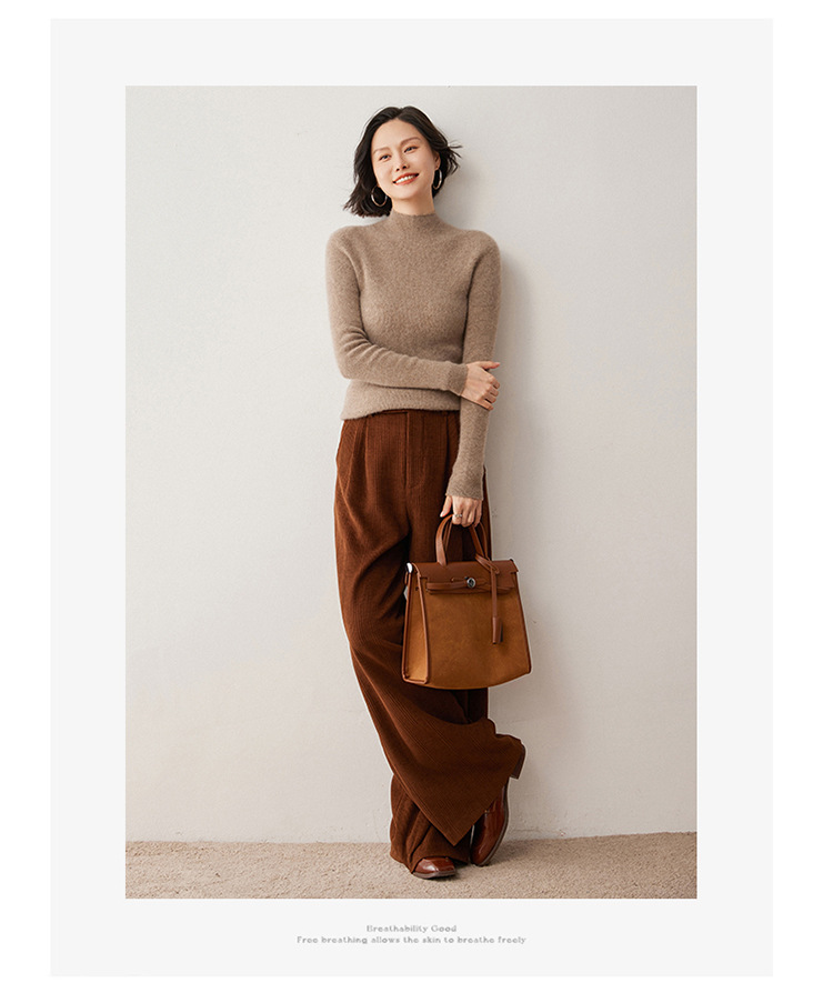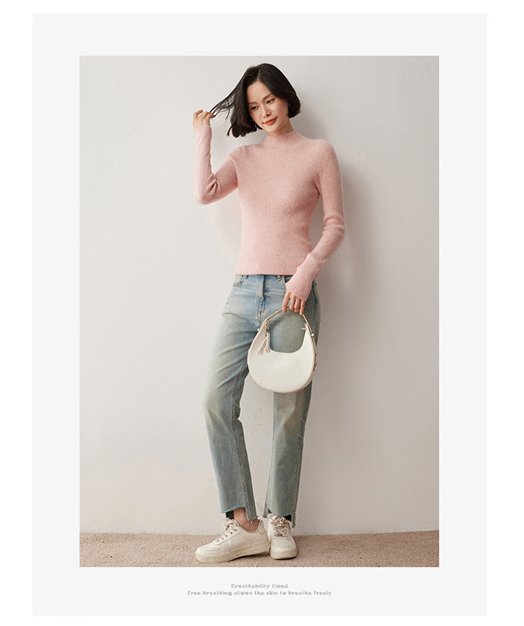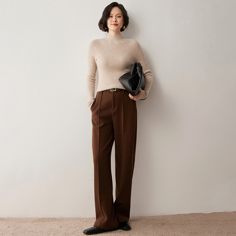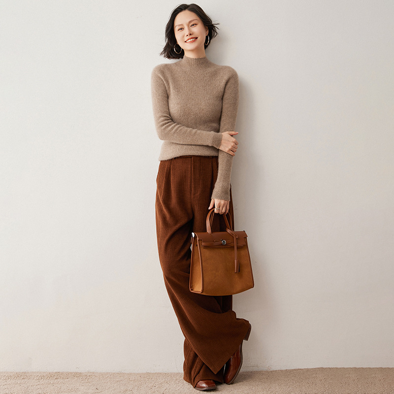 Женский свитер из утолщенной шерсти с воротником-стойкой, новинка осени-зимы 2025, приталенный, однослойный кашемировый трикотажный базовый свитер для женщин.
