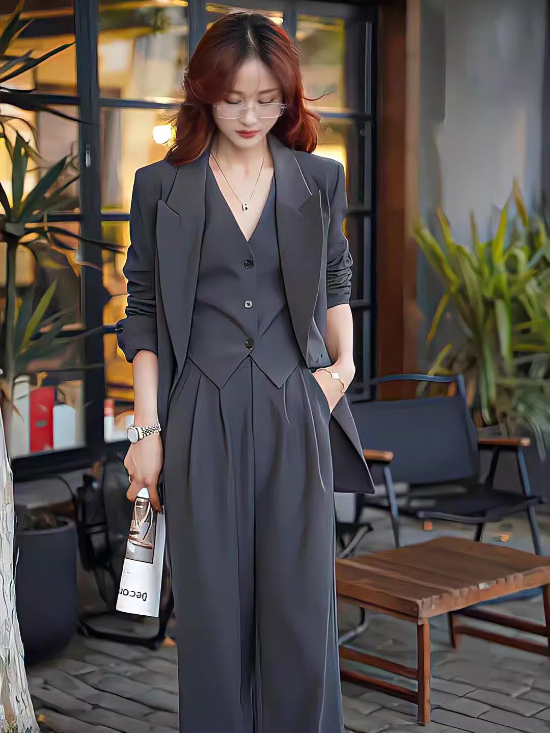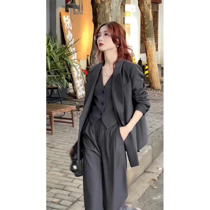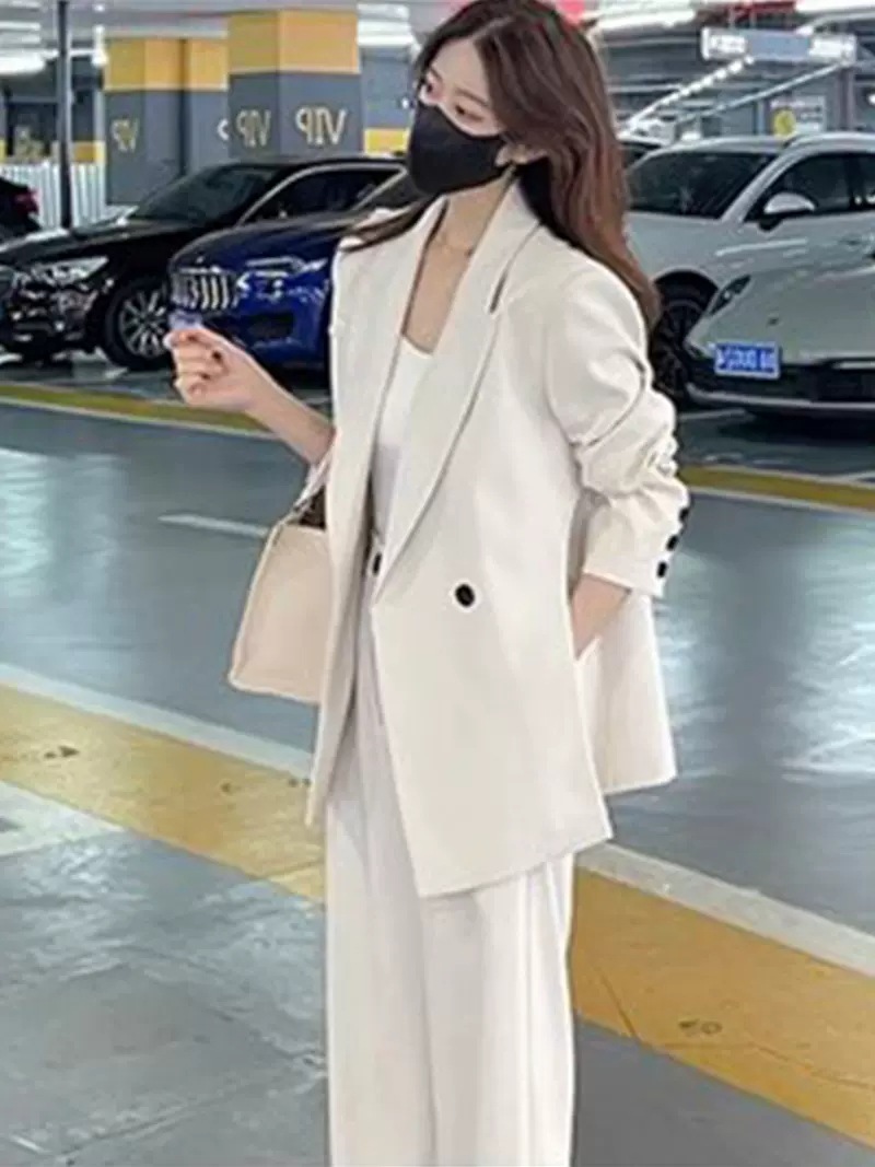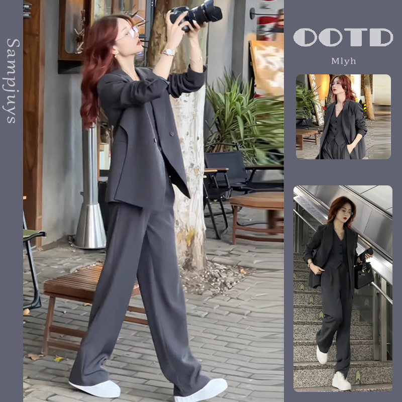 [Спот] Женская весна и осень большого размера новый слегка толстый мм набор маленький костюм узкий набор широкие брюки из двух частей 239