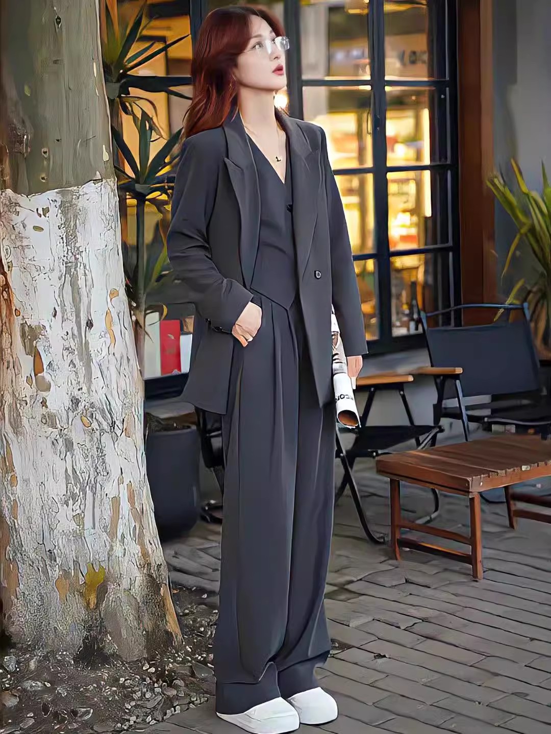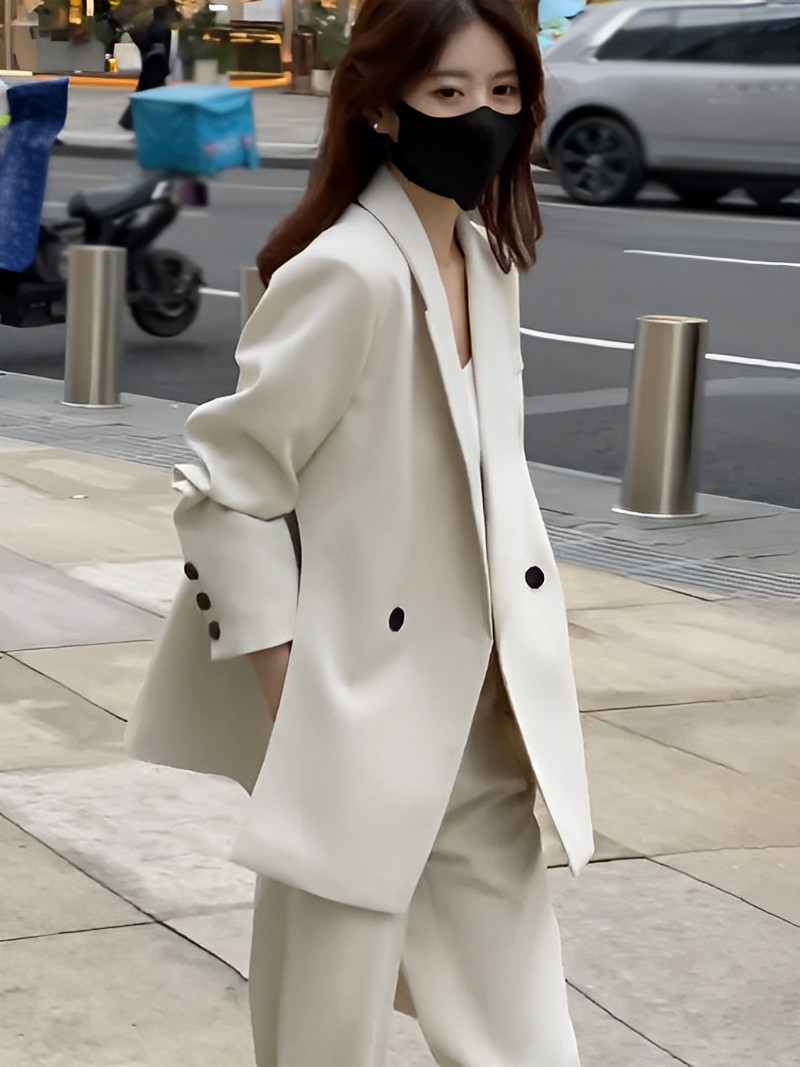 [Серый] Комплект из двух предметов; Комплект из двух предметов кремового цвета; одинарный костюм серый; Однотонный костюм кремового цвета; Серые одинарные брюки; Белые брюки