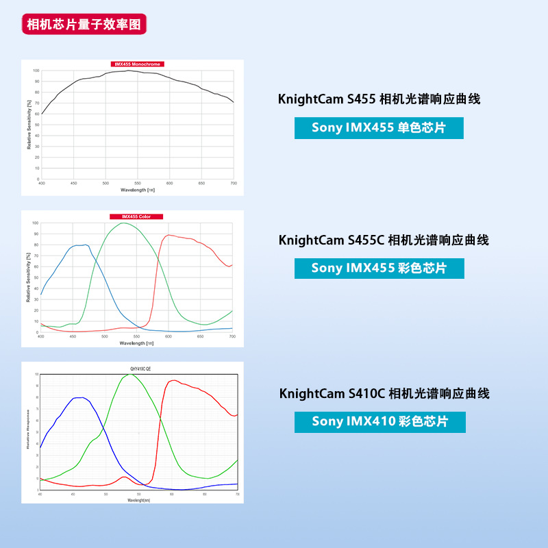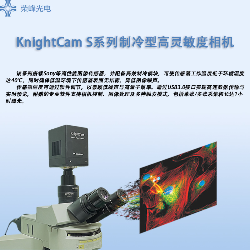 KnightCam S455C 制冷型背照式sCMOS科学级相机搭载了Sony等高性能图像传感器,针对传感器固有的热噪声,专门设计了高效制冷模块使得相机传感器的工作温度比环境温度低达 40 度针对低温结雾现象,设计了防结雾结构,确保传感器表面在低温情况下不会结雾。这一独有技术大大降低了图像噪声,保证了图像质量的获取。