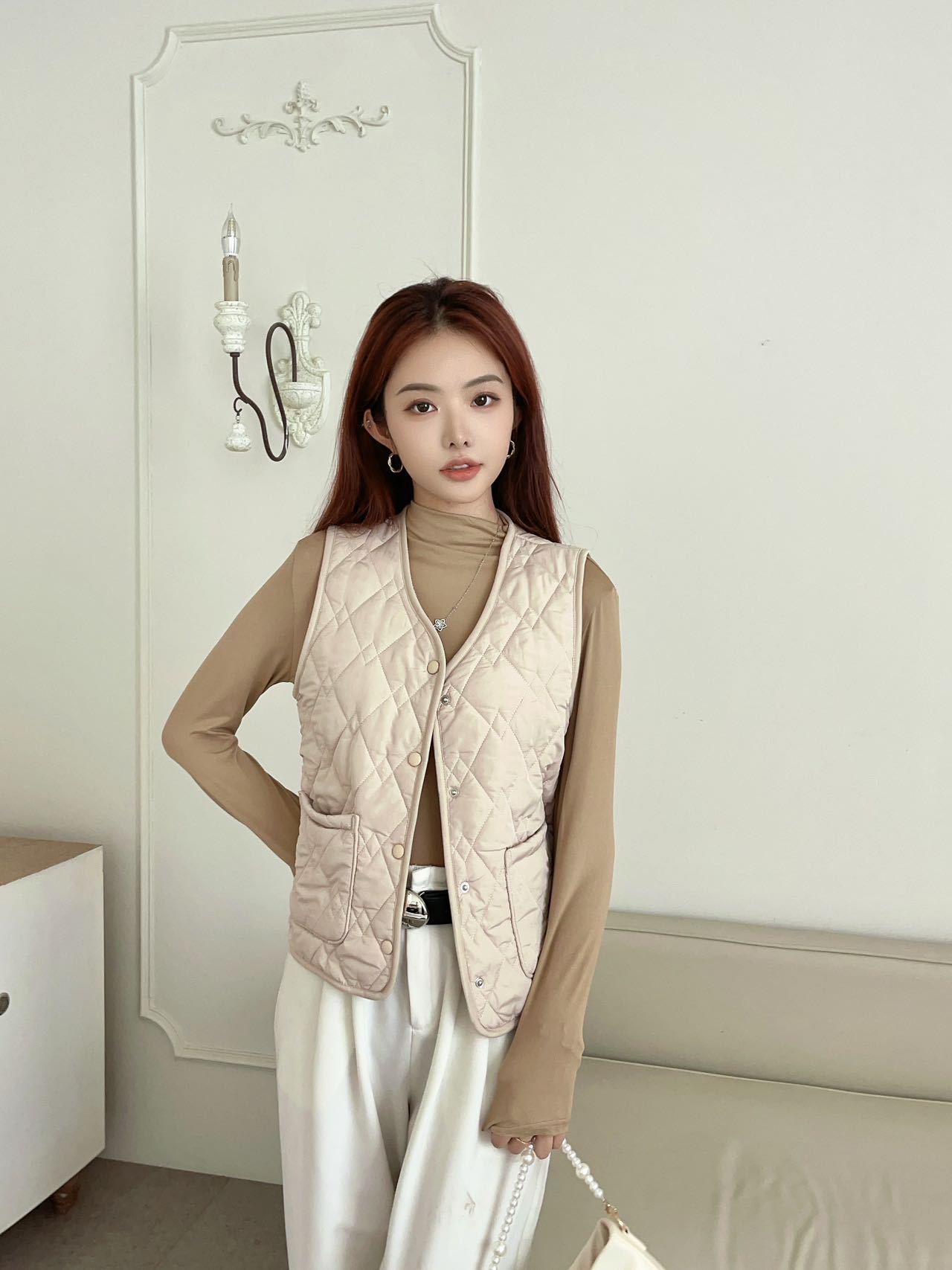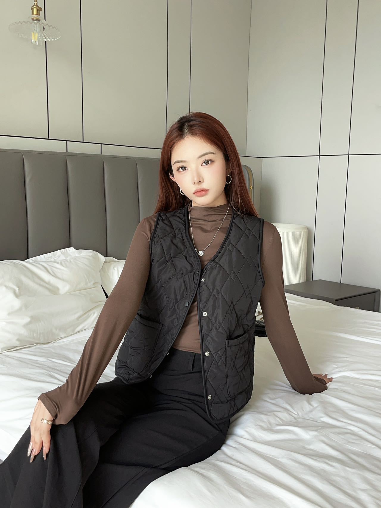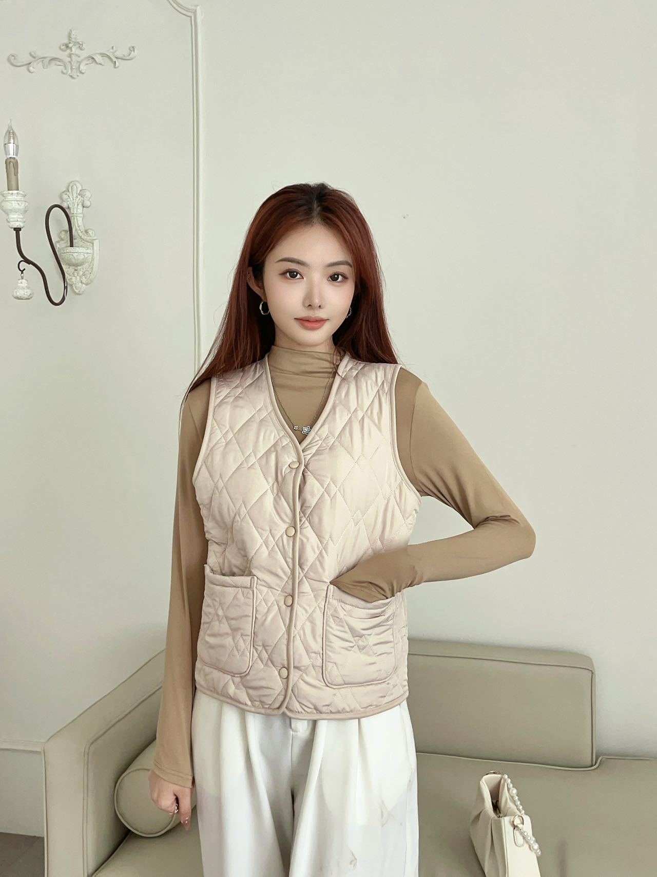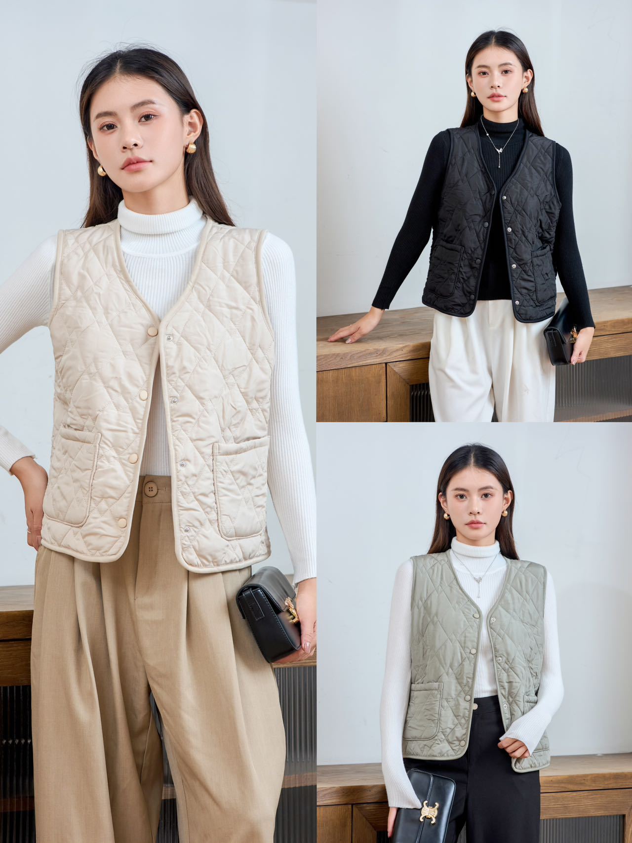 Геометрический стеганый легкий V-образный воротник женский жилет осень-зима