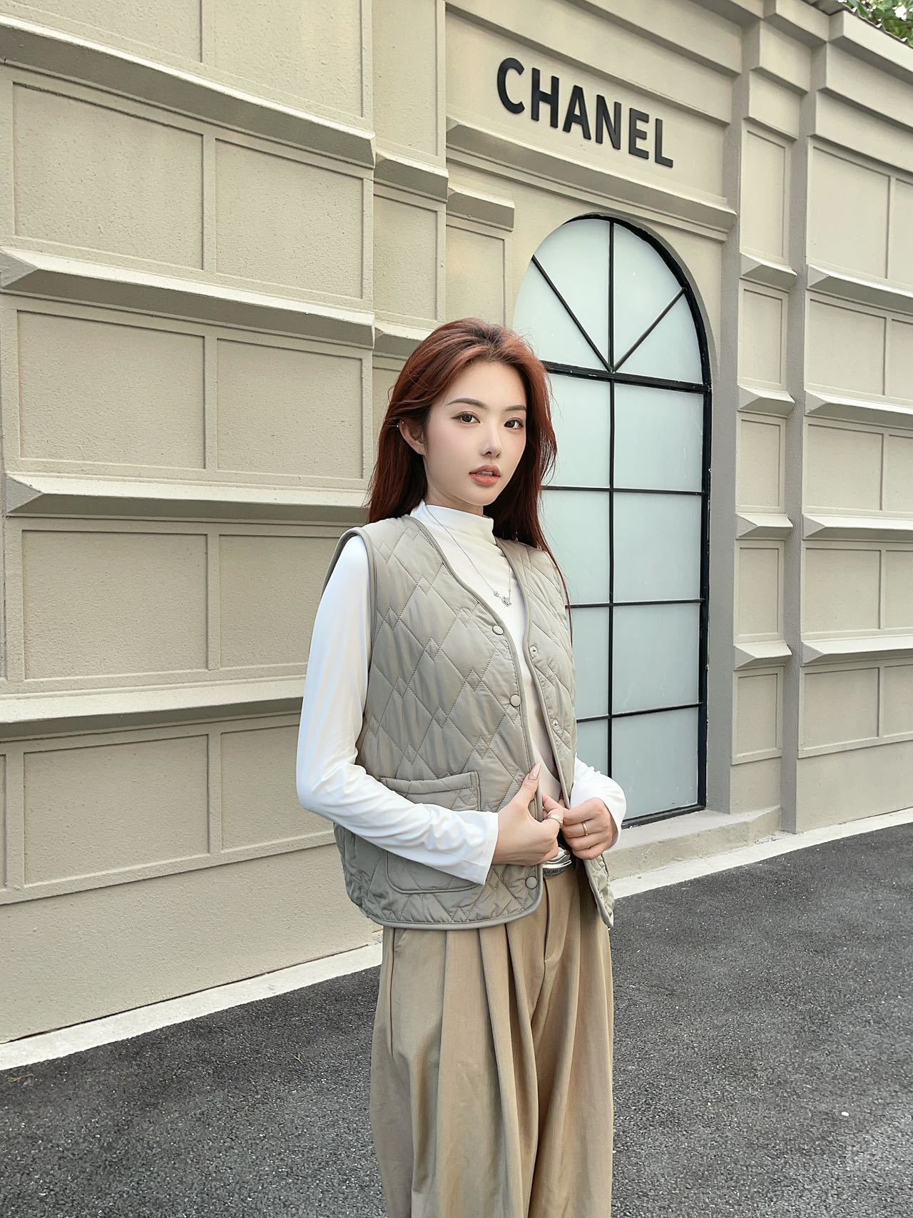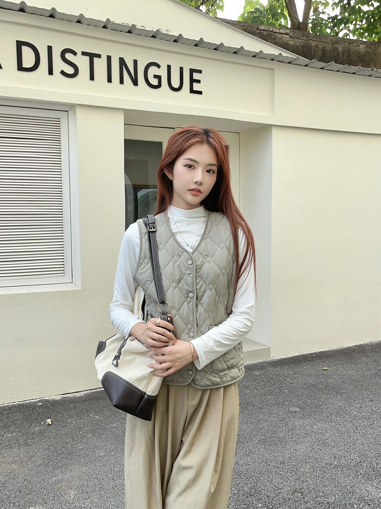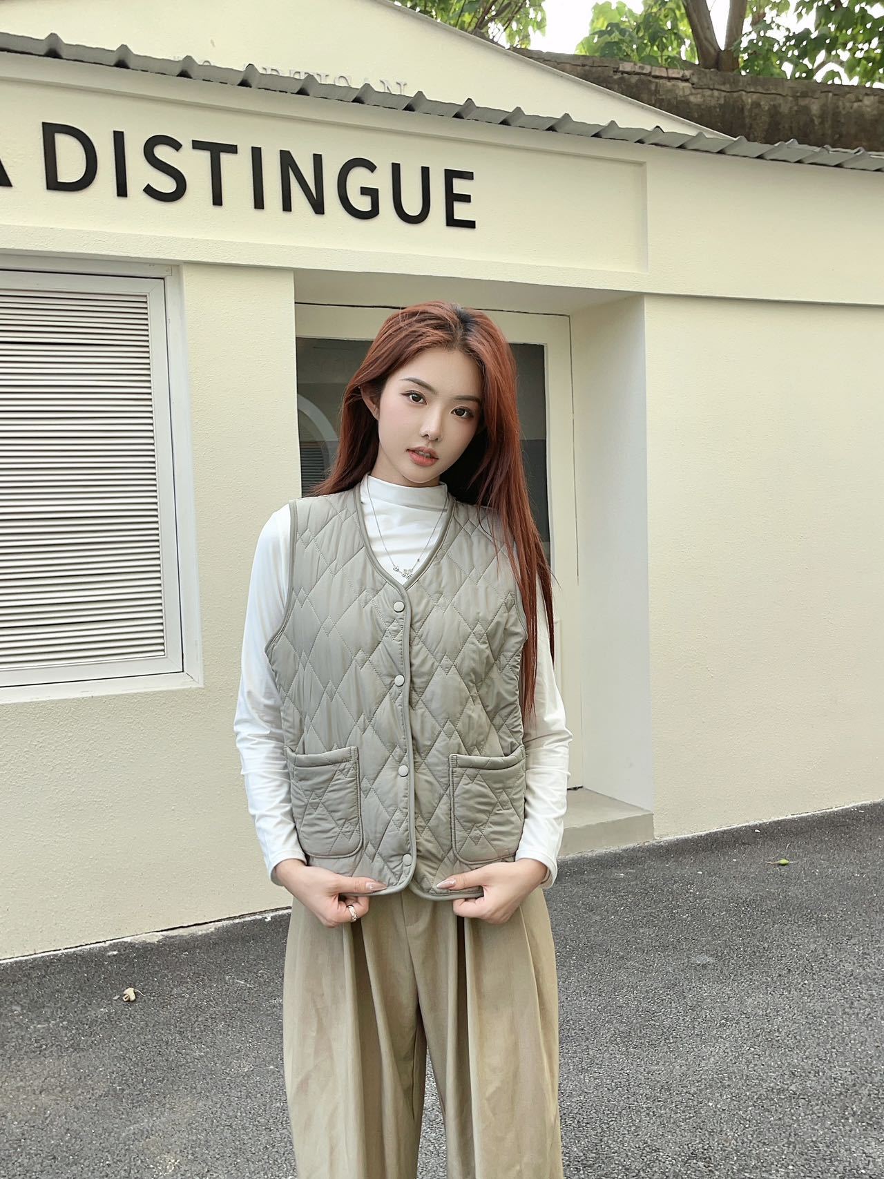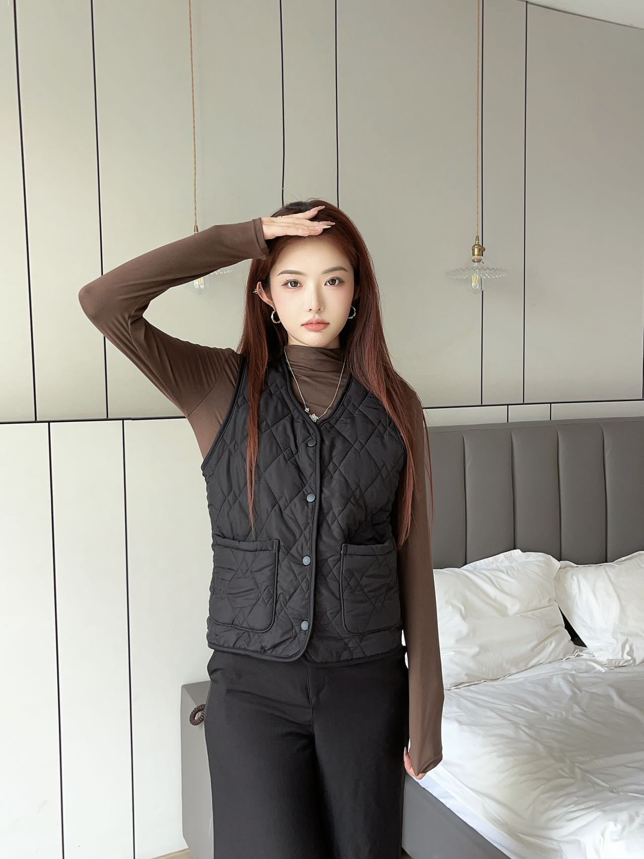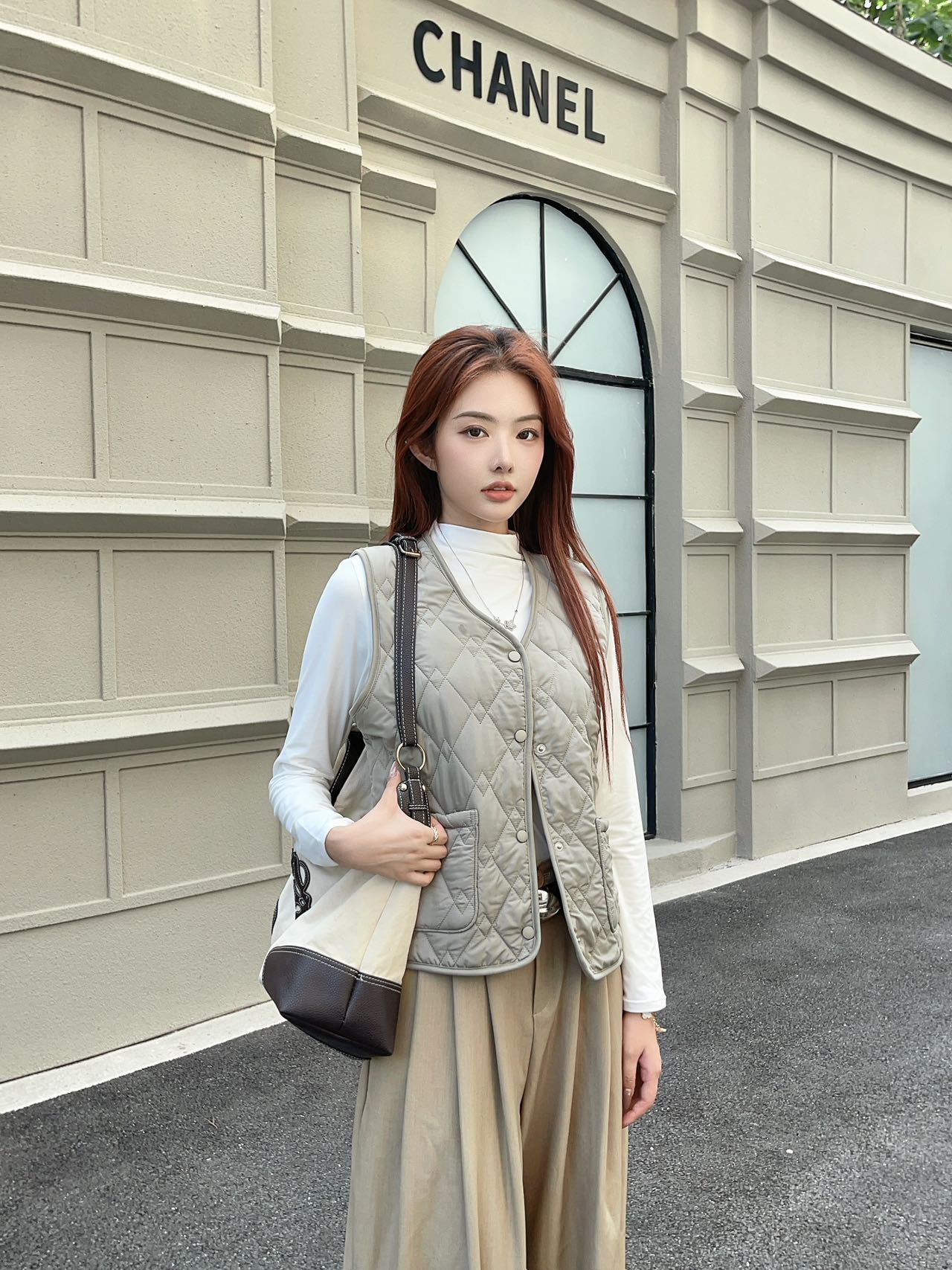Геометрический стеганый легкий V-образный воротник женский жилет осень-зима