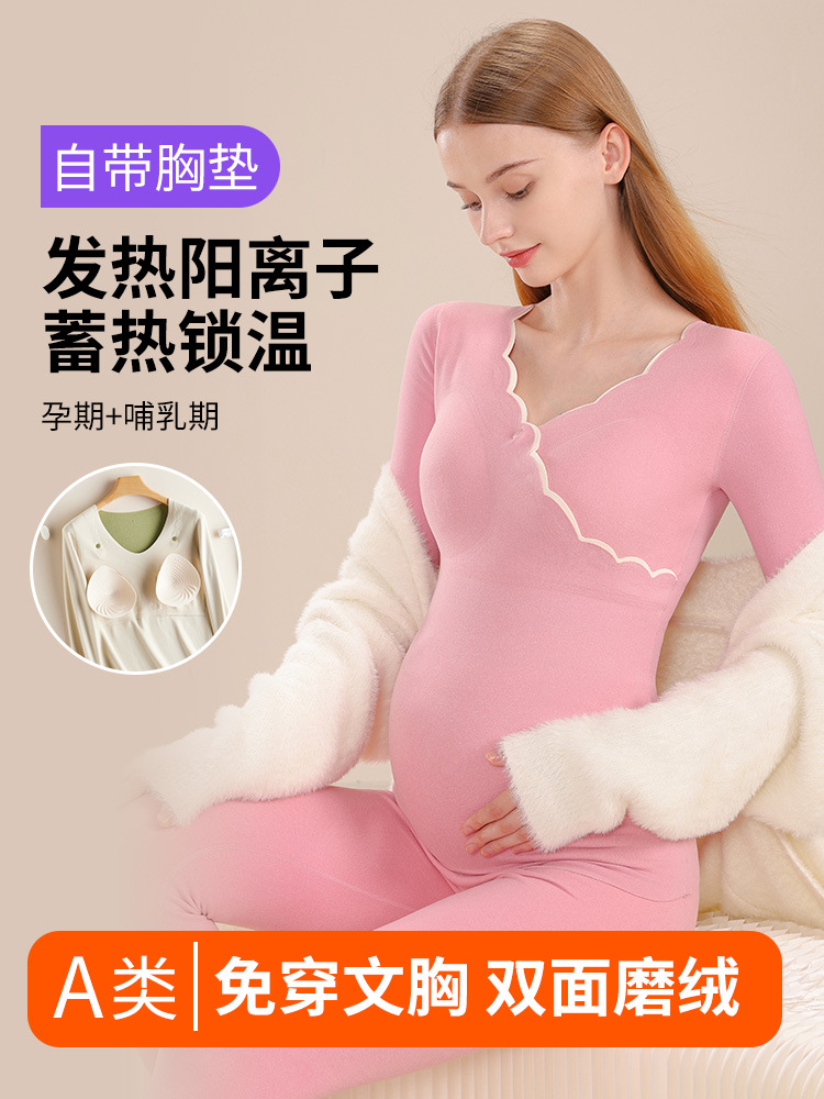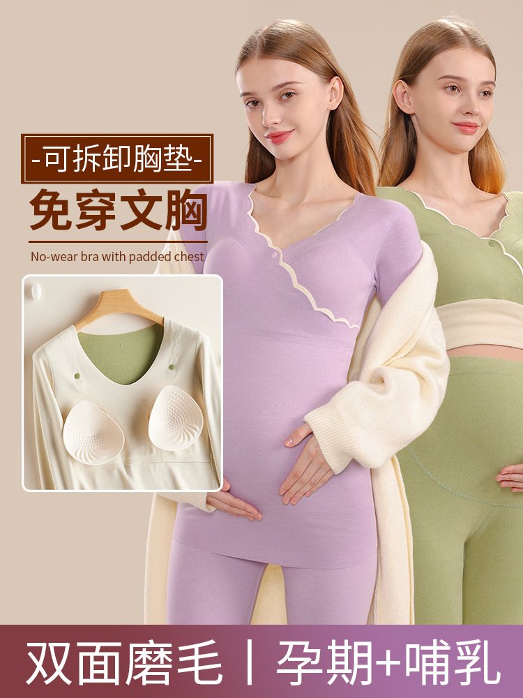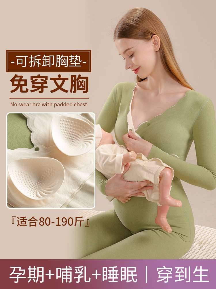 Осенняя одежда для беременных без бюстгальтера для кормящих пижамы послеродовые роды одежда осеннее и зимнее шерстное термобелье