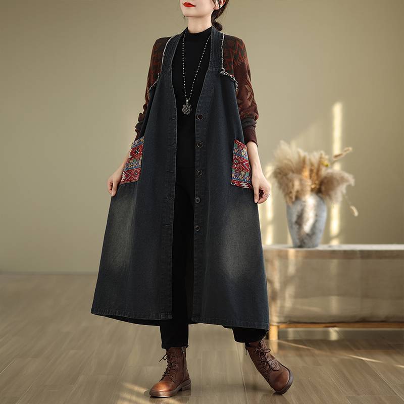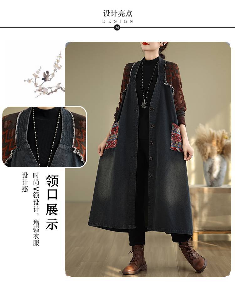 Этническая ретро вязаная шерстяная спилка джинсовая свободная большая кроя