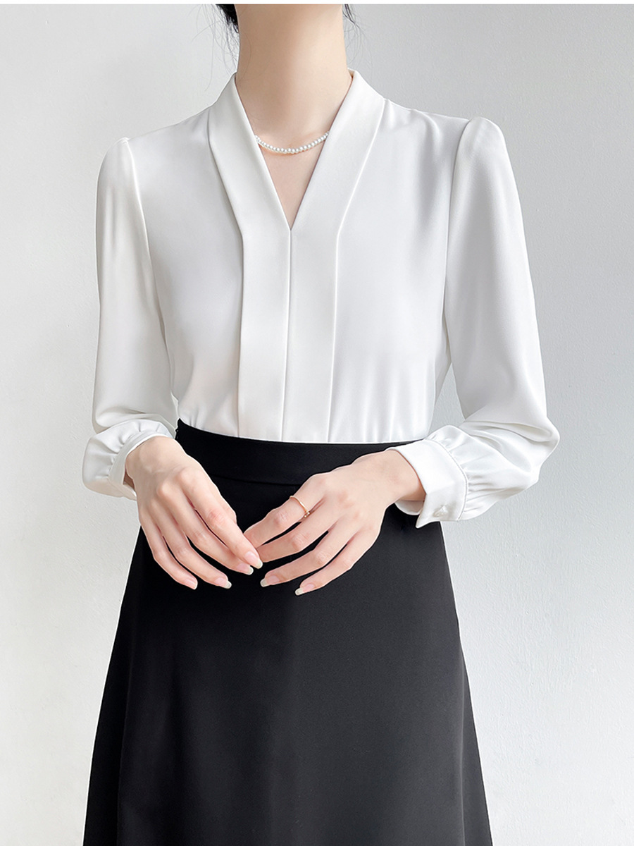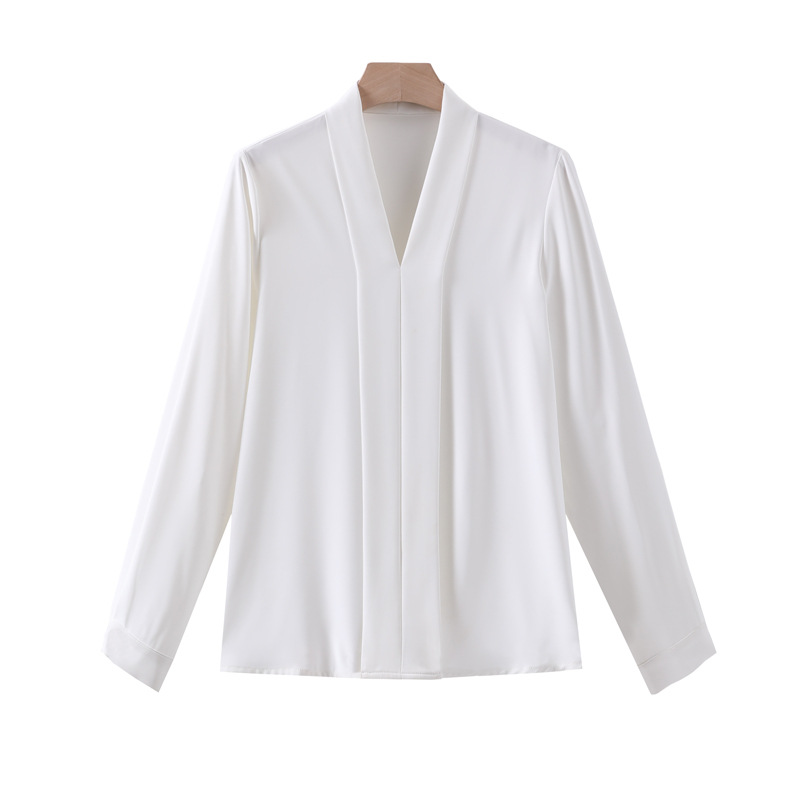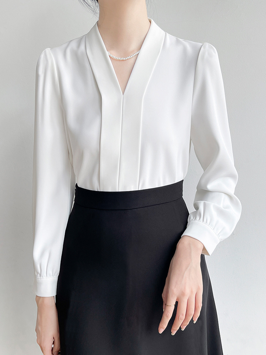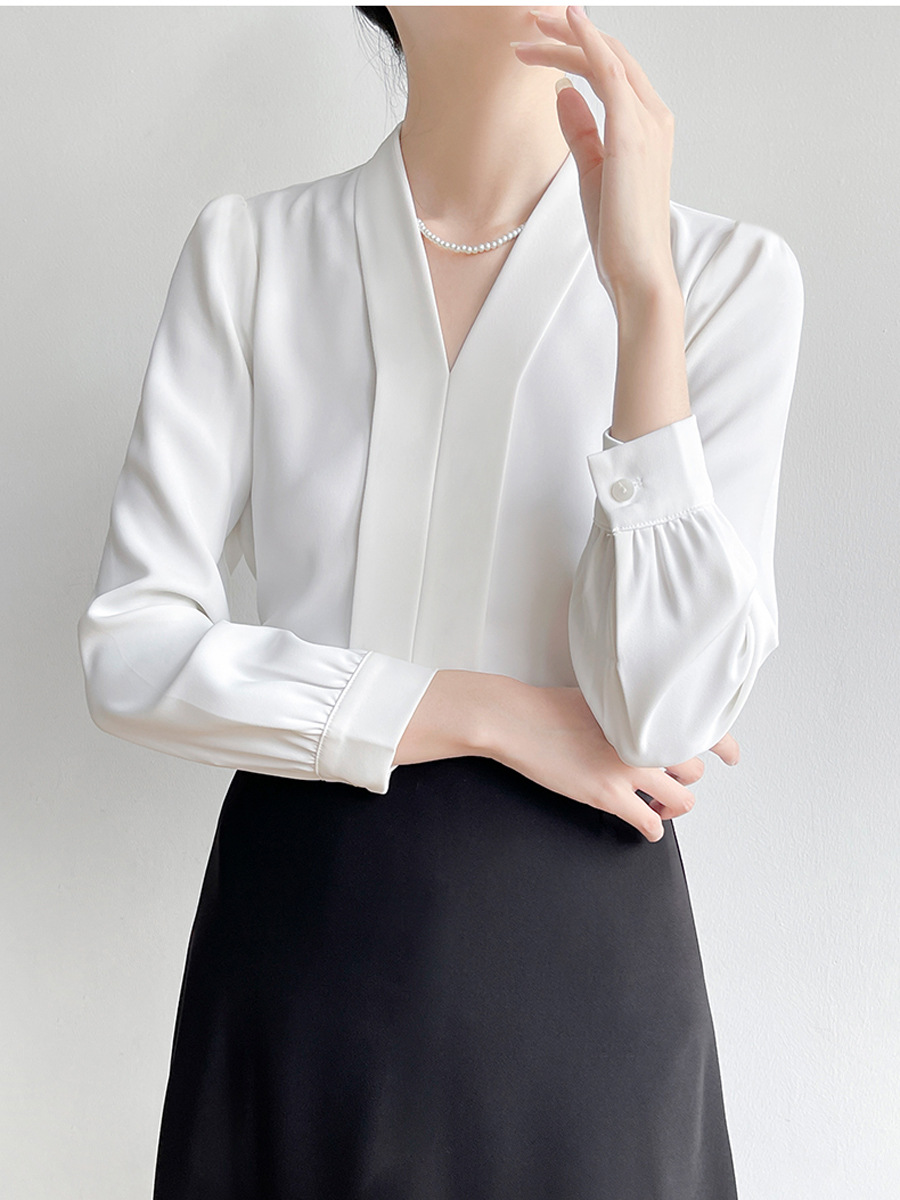 Женская блузка CS160 больших размеров для профессиональных собеседований, с длинным рукавом, из шифона, с глубоким V-образным вырезом, для полных женщин