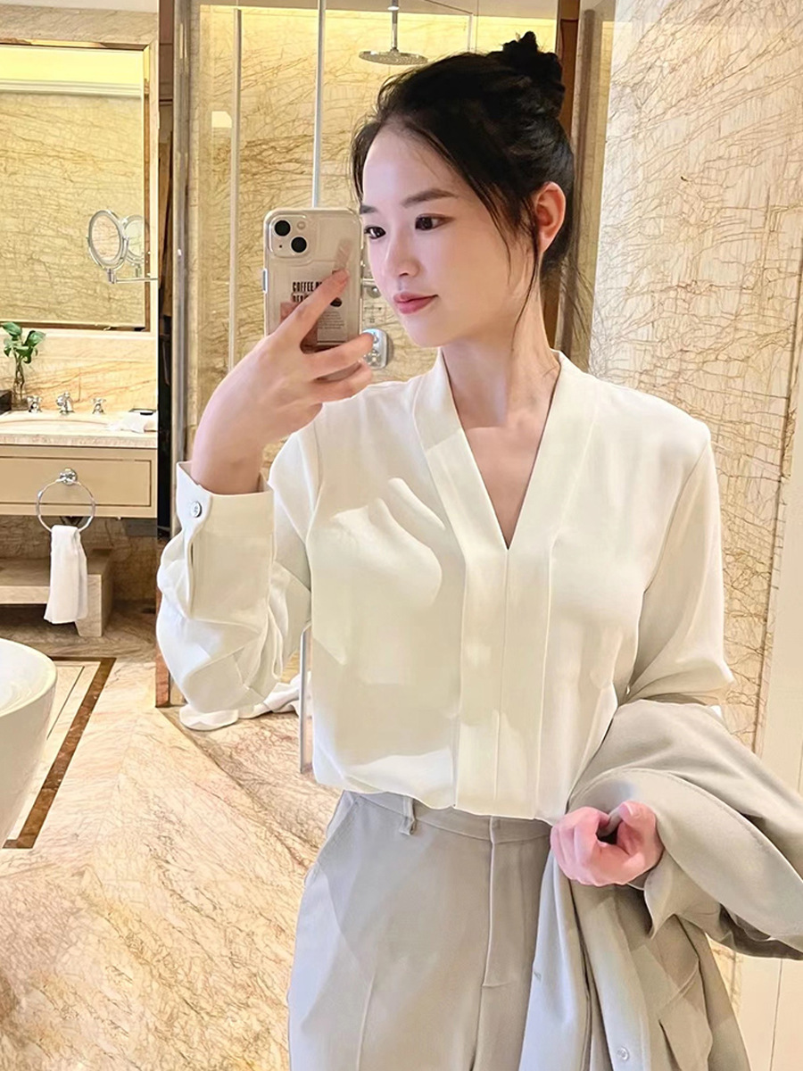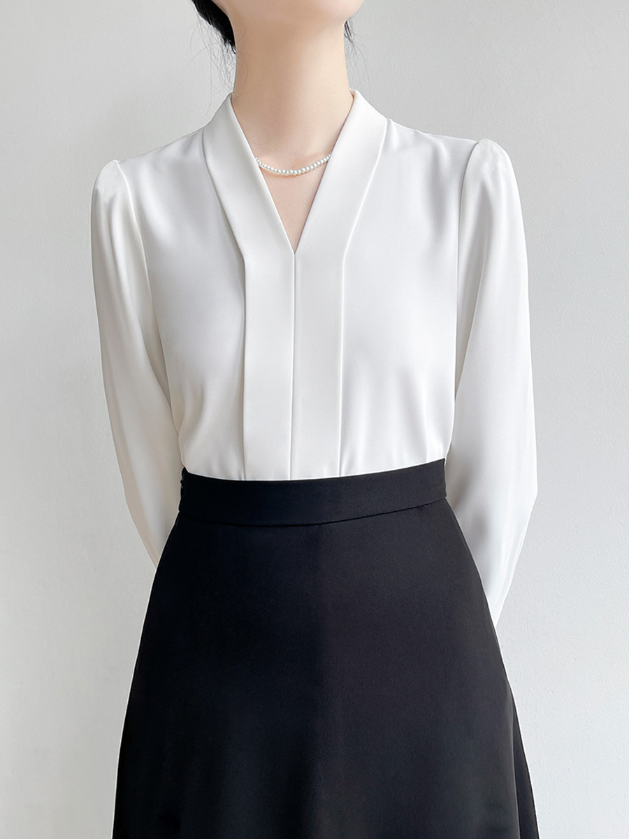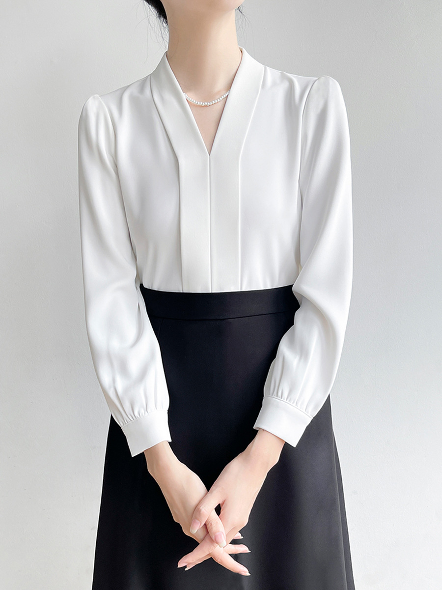 Женская блузка CS160 больших размеров для профессиональных собеседований, с длинным рукавом, из шифона, с глубоким V-образным вырезом, для полных женщин