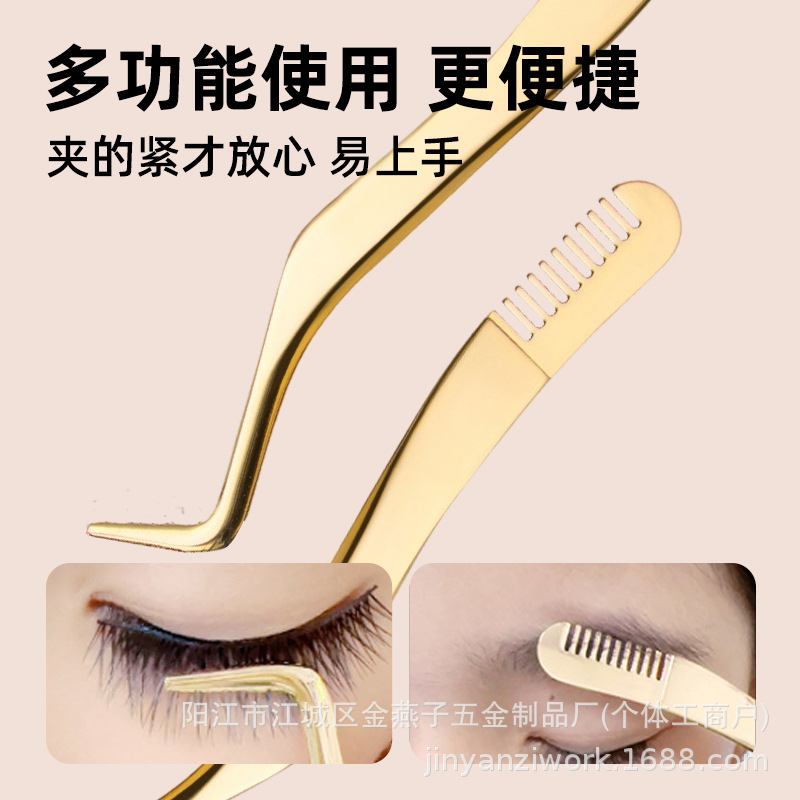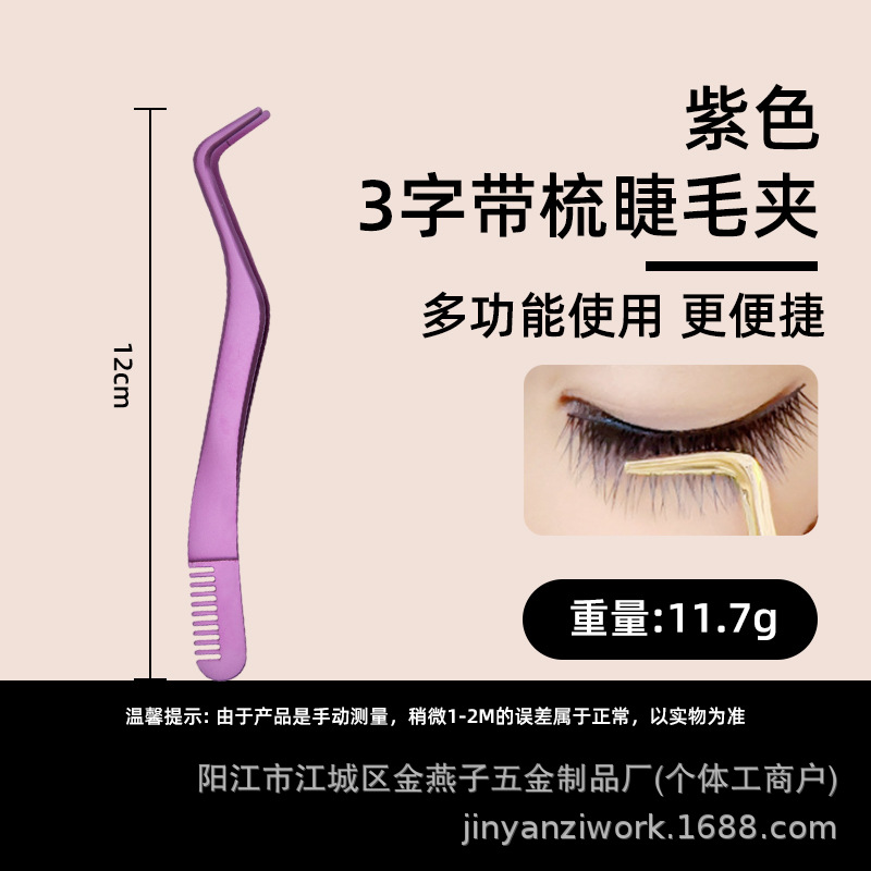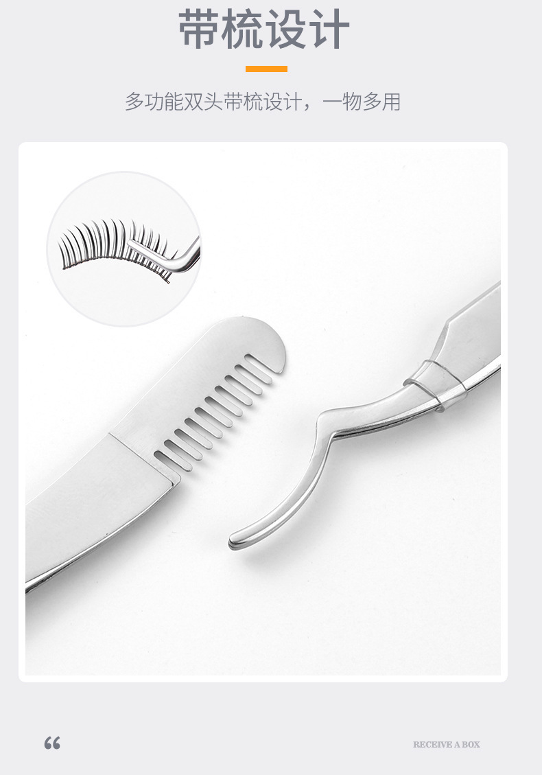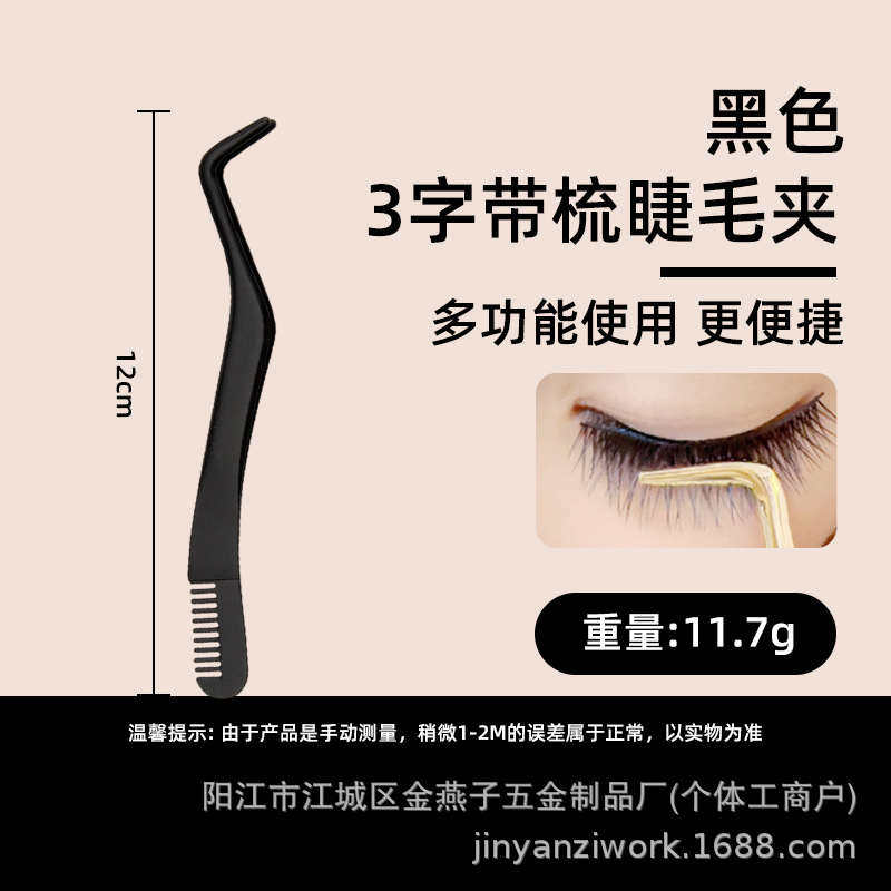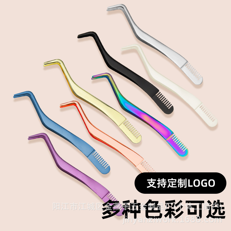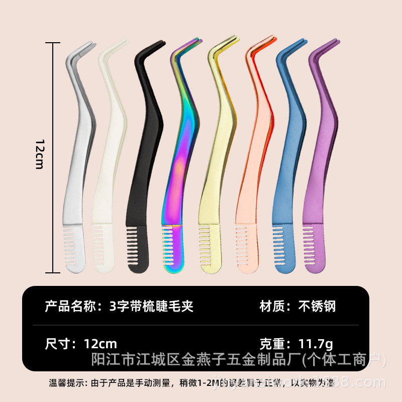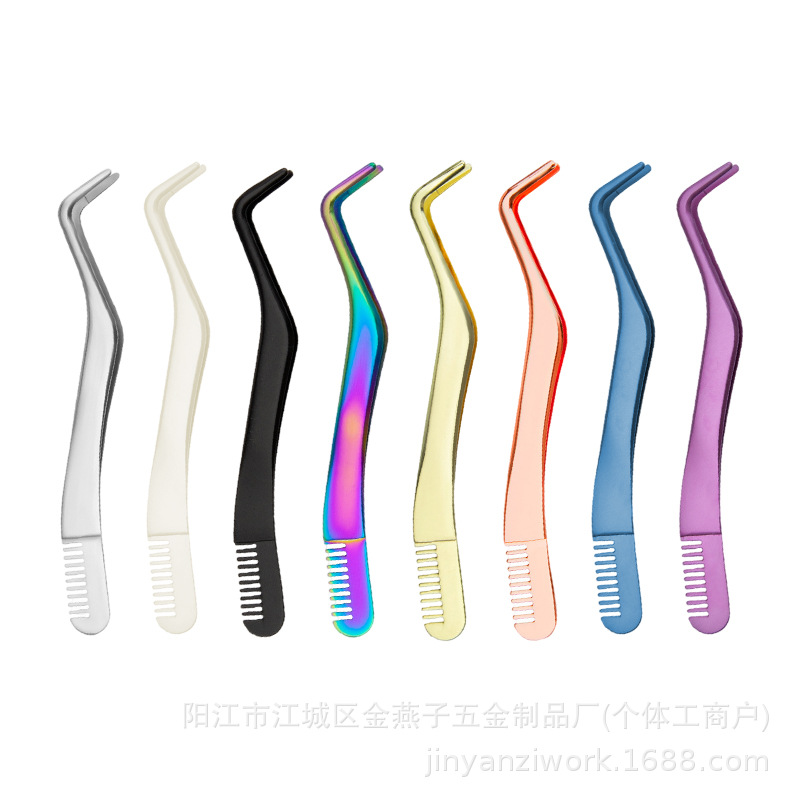 Пинцет-аппликатор для наращивания ресниц из нержавеющей стали с расческой, в наличии на складе