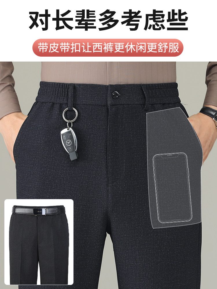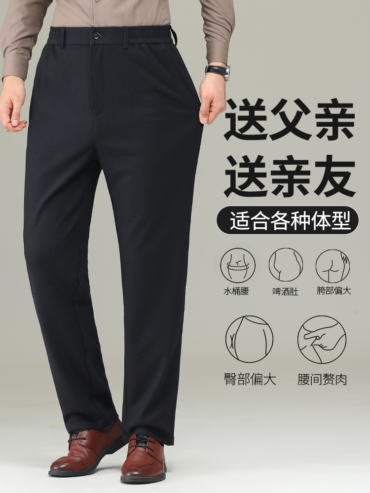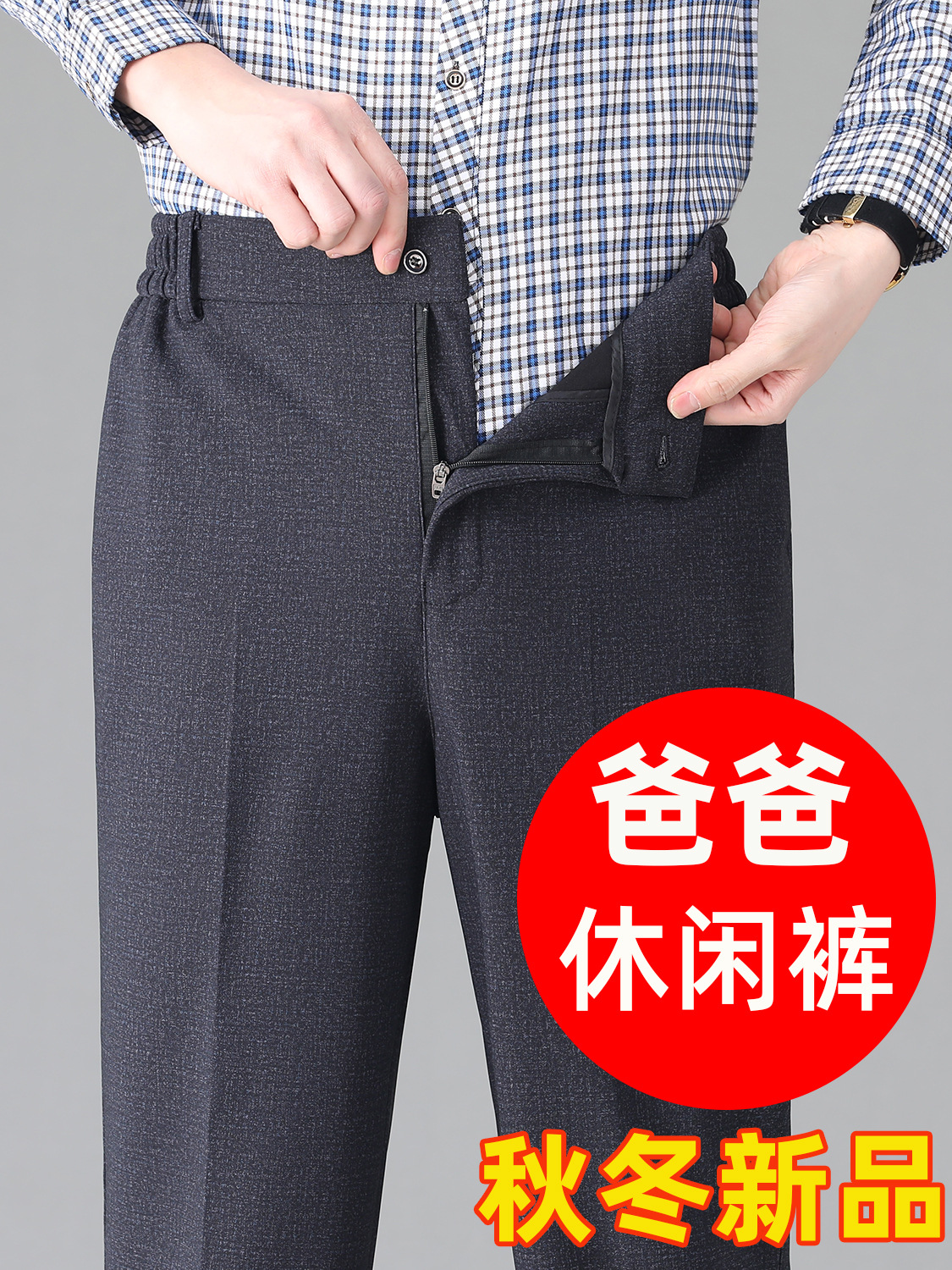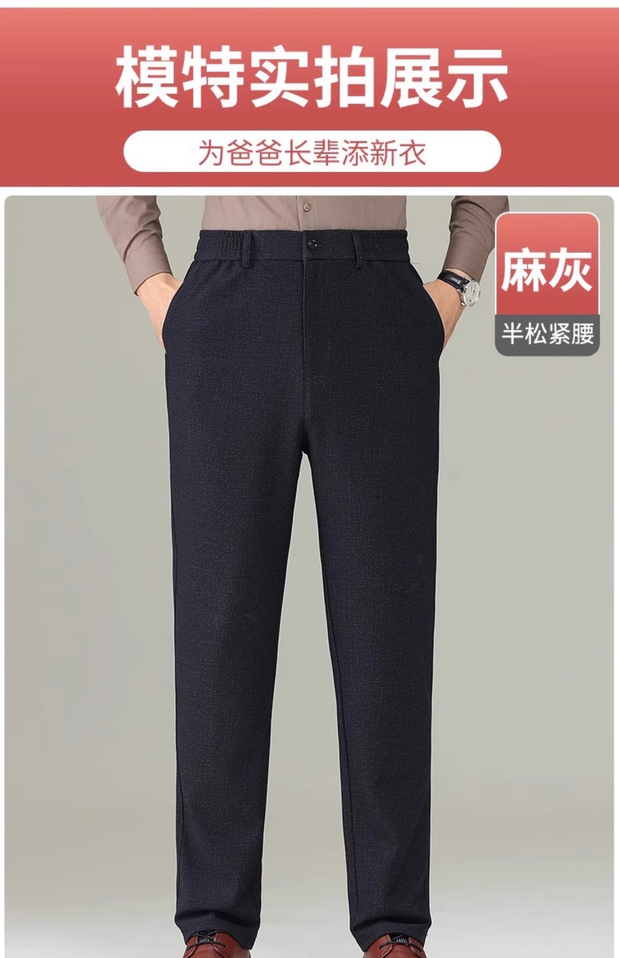 Брюки для пап на весну и осень, повседневные брюки для мужчин среднего и старшего возраста, свободные классические брюки, мужские брюки нового фасона 2024 года, с высокой талией и драпировкой.