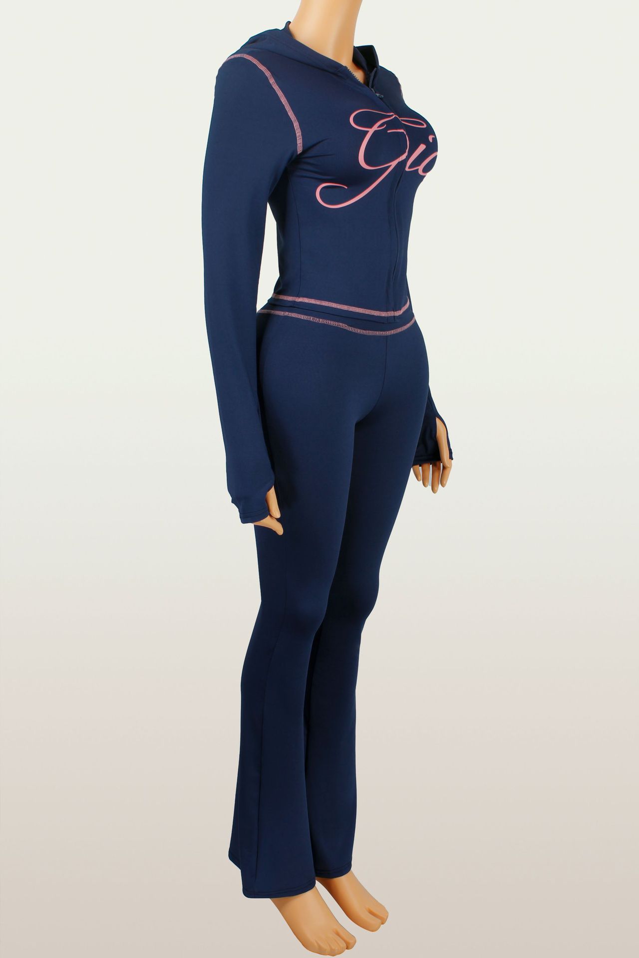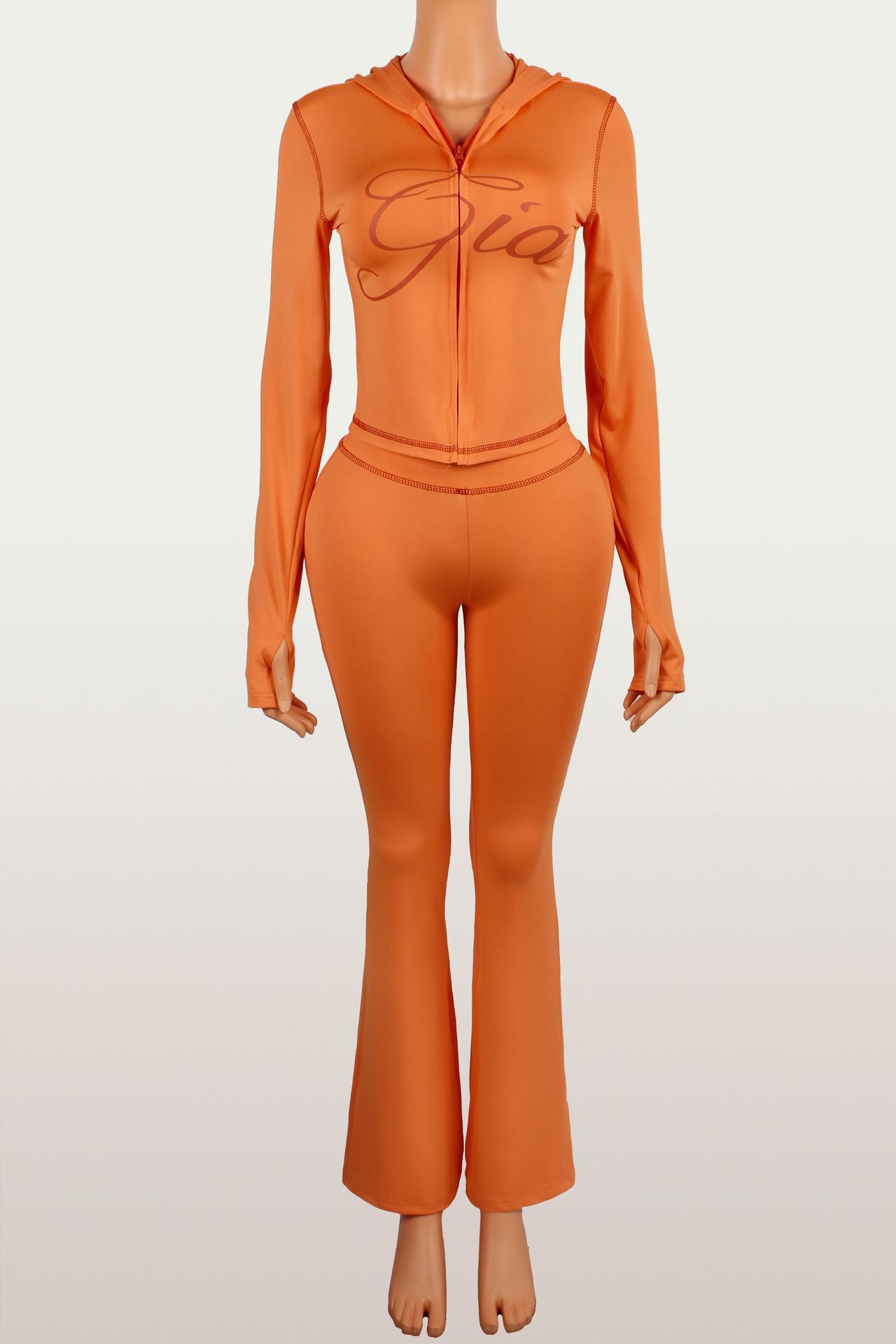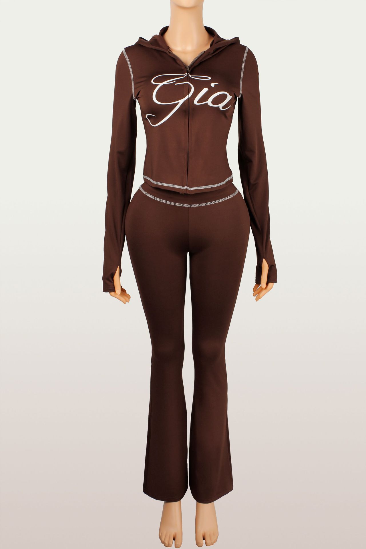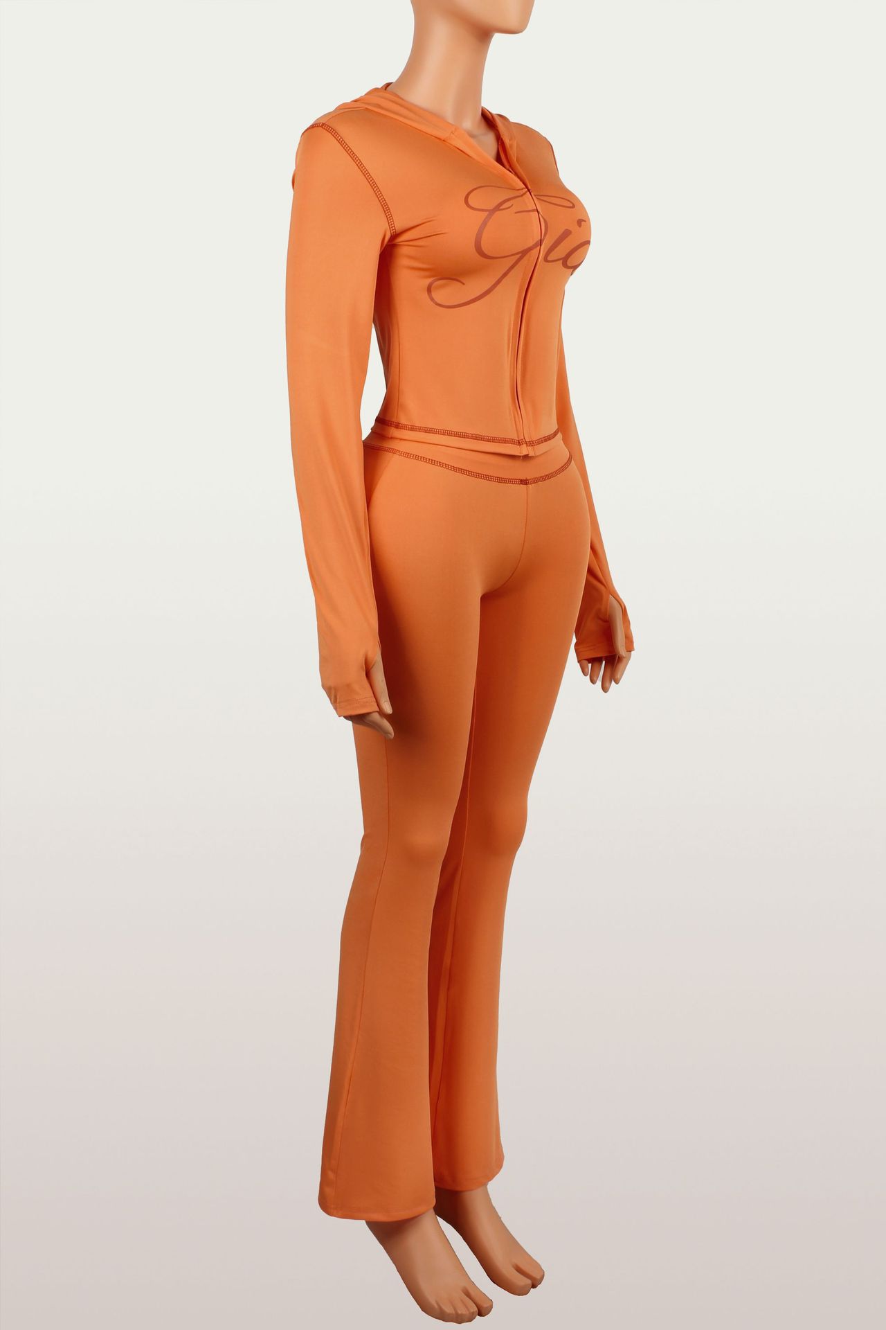 Комплект из укороченной куртки на молнии с капюшоном и брюк в спортивном стиле с принтом, в европейском и американском стиле, приталенный крой, модный дизайн INS.